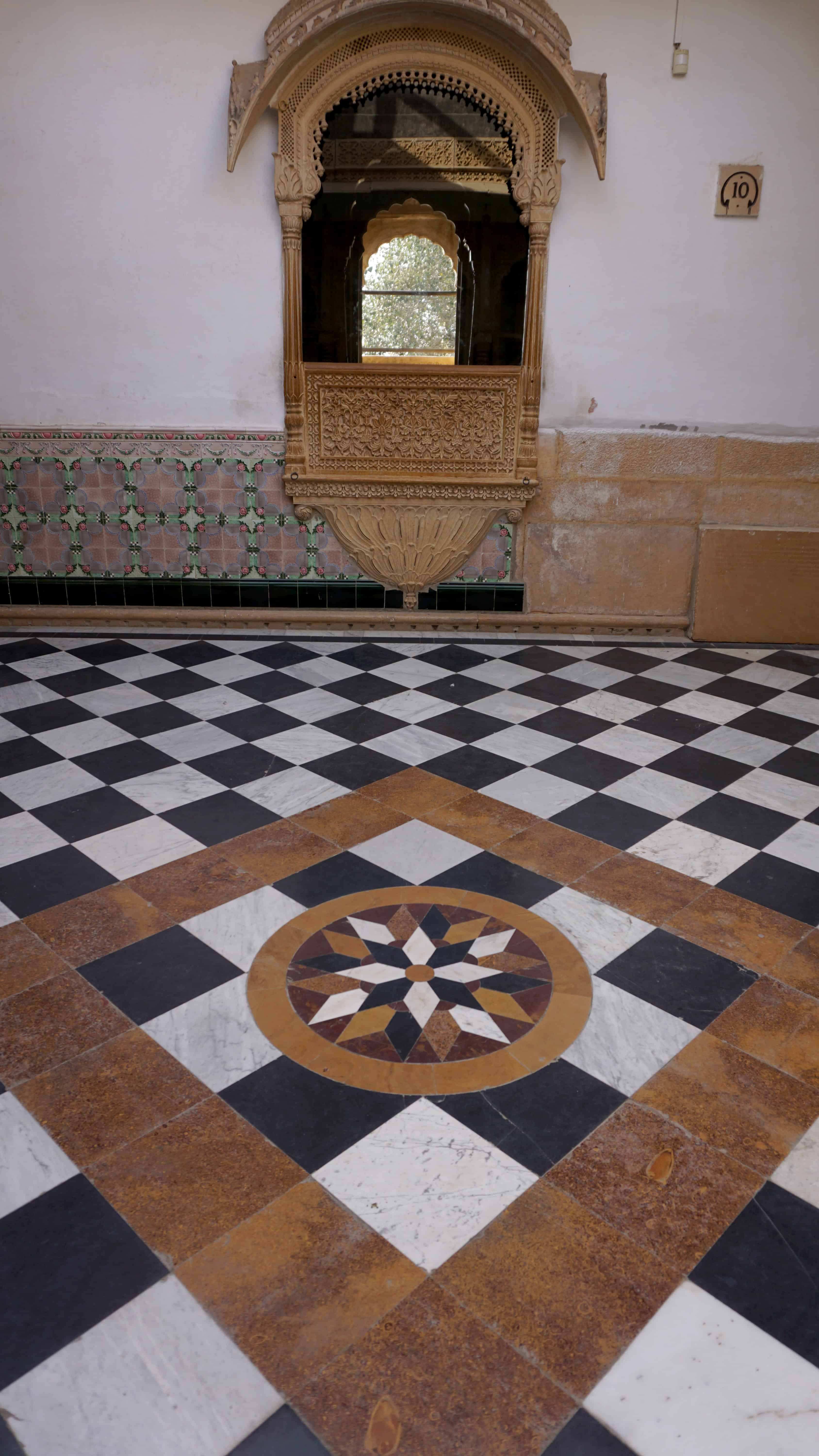 Down from the fort in the expanded town near the main square, we found the Mandir Palace. Part of this complex is hotel, part is current royal residence, and part is museum. We had a bit of spare time and decided to check out this museum. It is small, but nice featuring some artifacts from the royal family. Also, in the courtyard outside the building you’ll see the royal horses and milk cows.