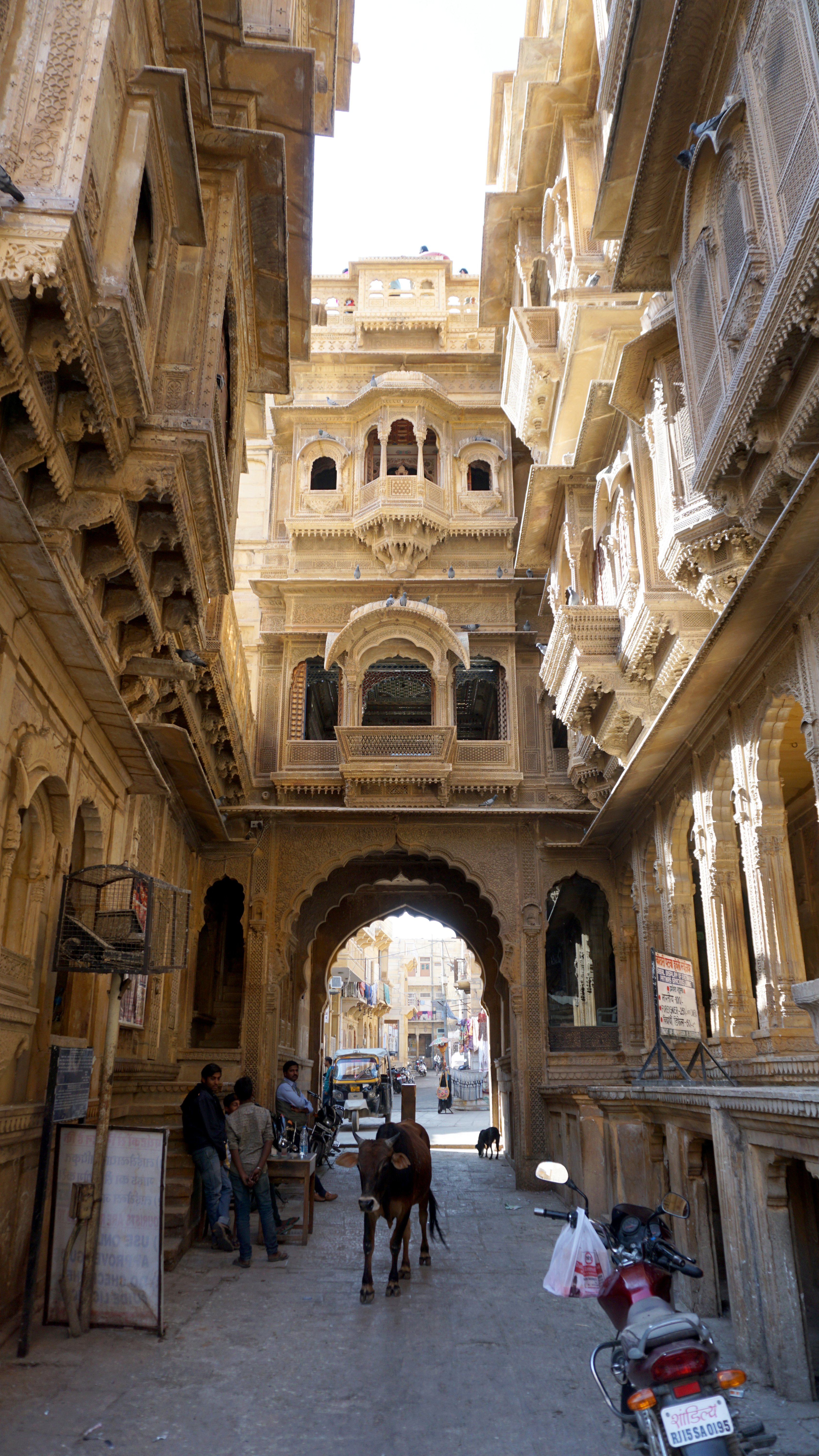 Our final Rajasthan stop was in the desert city, the golden city, of Jaisalmer. Like the other cities we visited, Jaisalmer was ruled over by a raj who had a fort palace. Much like in Jodhpur, Jaisalmer’s is perched atop a rocky butte. However, unlike the others, Jaisalmer Fort is a fully walled city on top of the butte not just a fort palace.