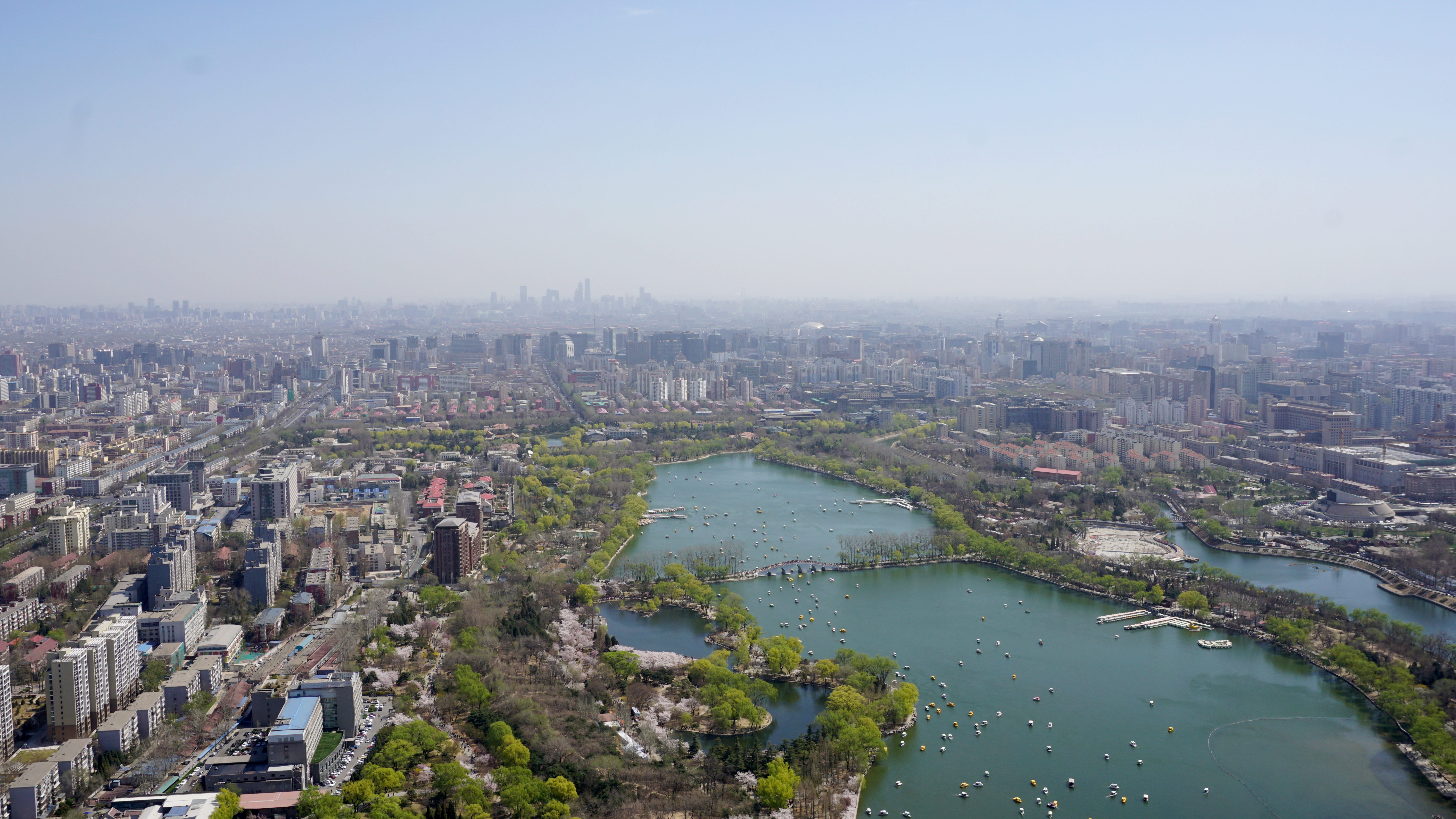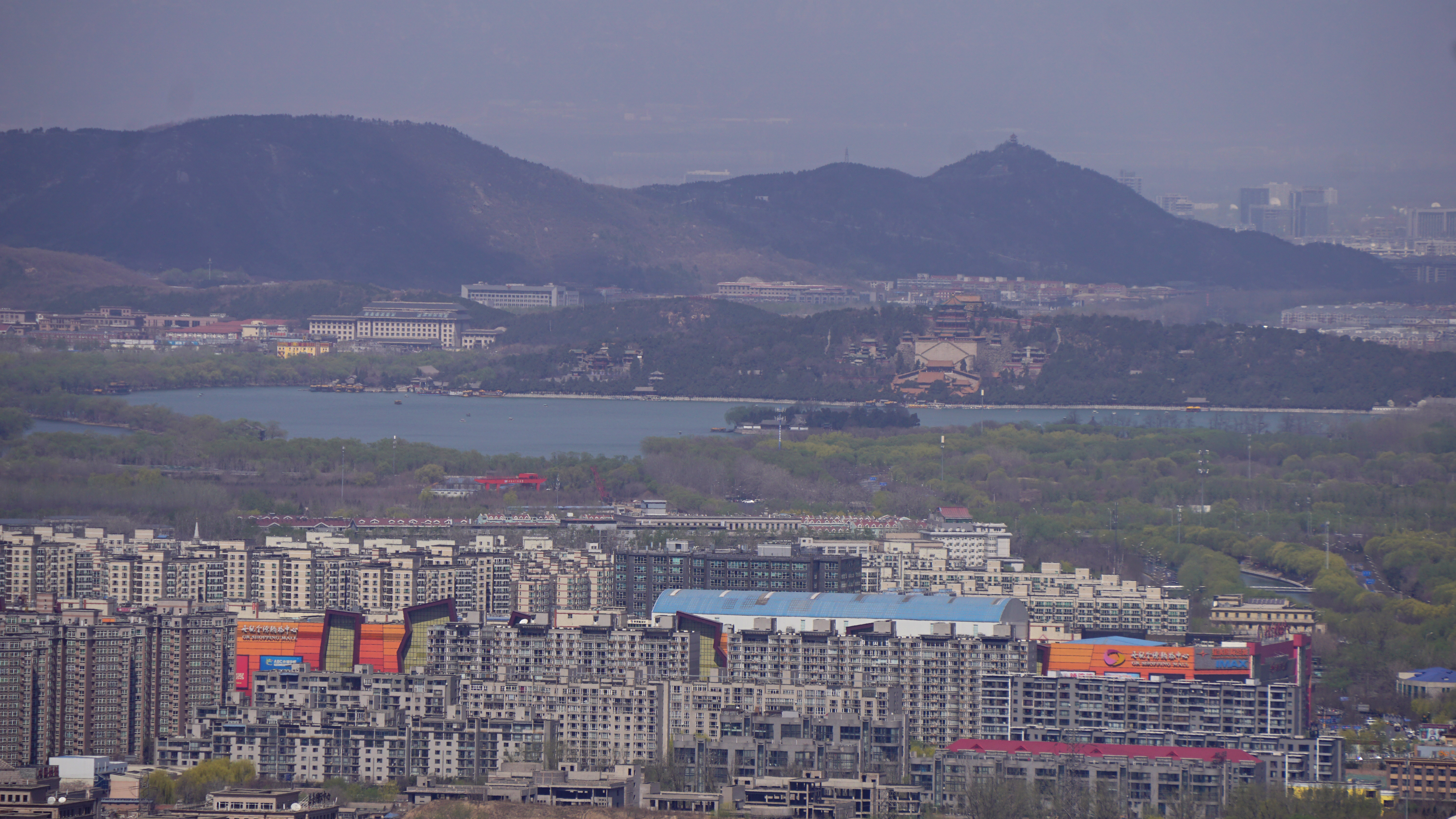 On the outdoor observation deck, there are signs pointing out landmarks around the city. They look to be left over from the Olympics. To the north is the Summer Palace. Directly east is the center of town with Tiananmen Square and the modern skyscrapers of the business district. I could see the three arched towers of Xizhimen and follow the road up to my apartment. In the distance we could see the Bird’s Nest, and out to the west, we could see the mountains.