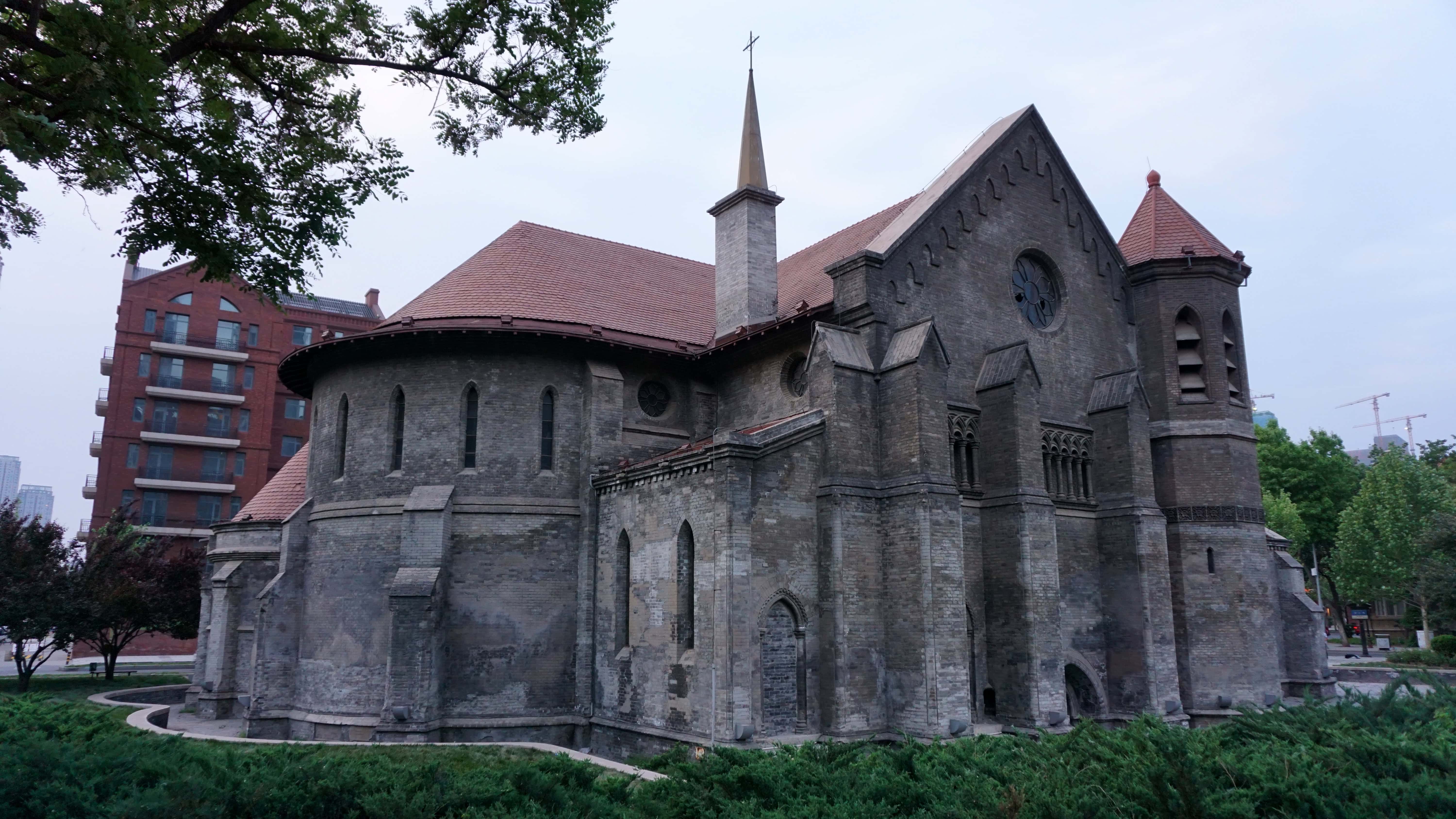 The highlights of architecture in Tianjin for me were the churches scattered through the city. As interesting as it can be to visit Chinese temples of either the Buddhist or Daoist faiths, the architecture is so similar that some would say if you’ve seen one, you’ve seen them all. The biggest variations come in the statuary and occasional other pieces of art. Christian churches, however, especially old ones, are unique even with their similar designs. The decorations, materials, and even building shapes and positioning are not dictated by age-old custom and tradition. They may be suggested, but they aren’t required. These features also change with time as tastes and styles come and go in society.