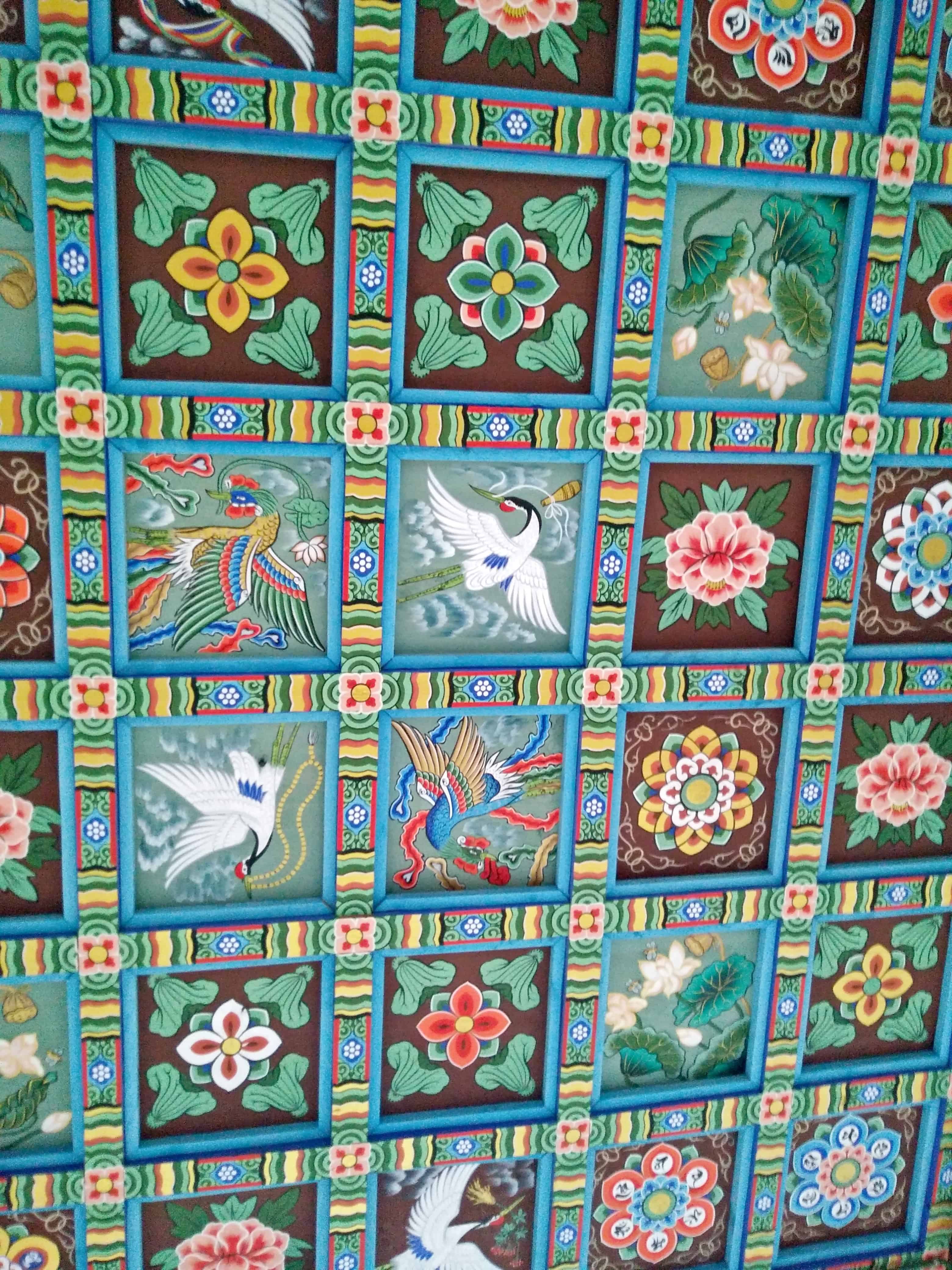 I wandered to the side toward the heart of the complex where a monolithic Buddha statue looks over the district. To get to its plaza, I walked under another wooden hall with a beautifully painted coffered ceiling.