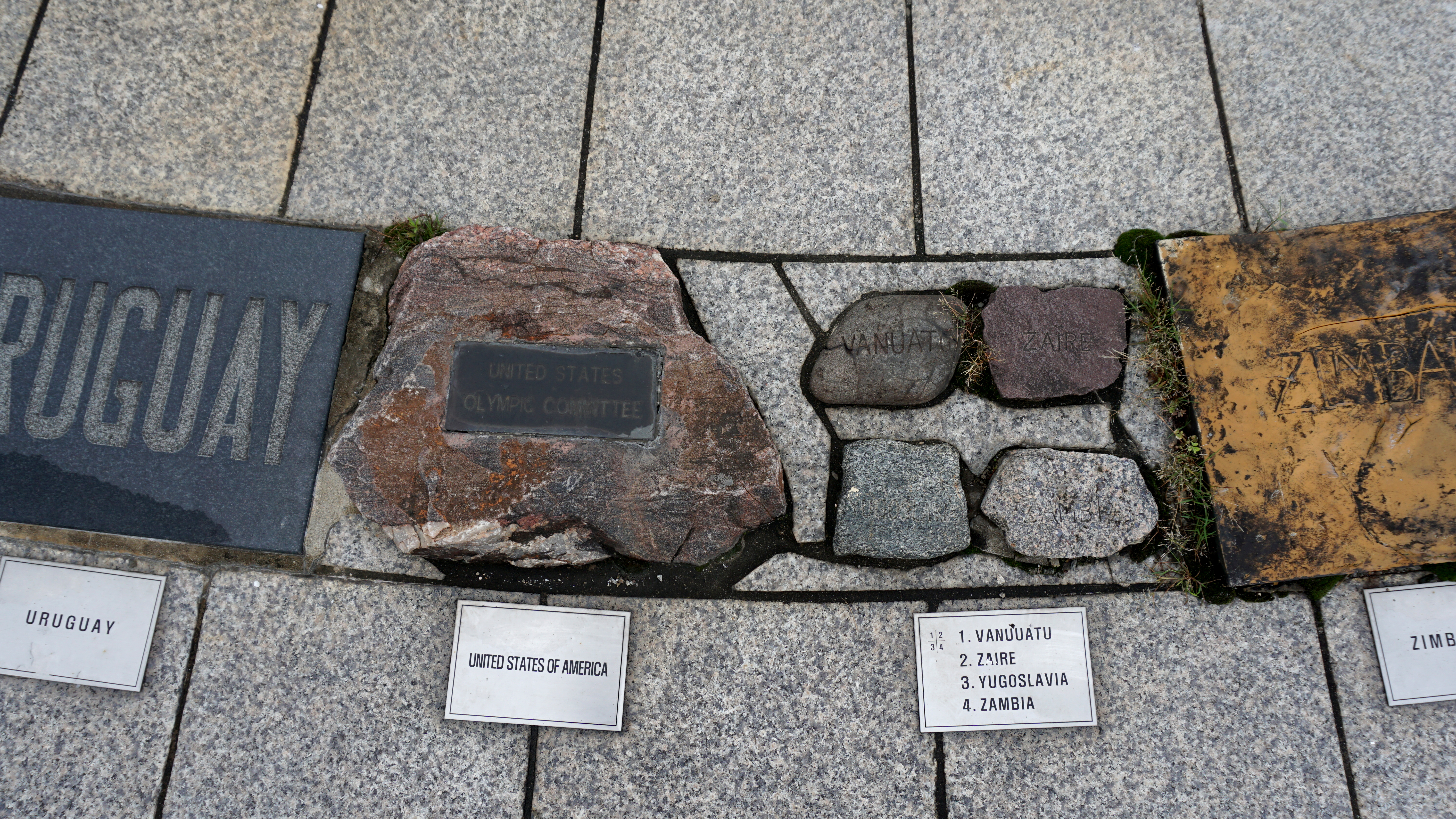 At one corner is the World Peace Gate, a modern sculpture with the Olympic flame burning beneath. Behind this is a collection of national flags of the nations that participated in the games. At the base of these flags is a mound of stones brought by the athletes and teams as a way to create a monument to peace. This seemed to be the main theme of the park.