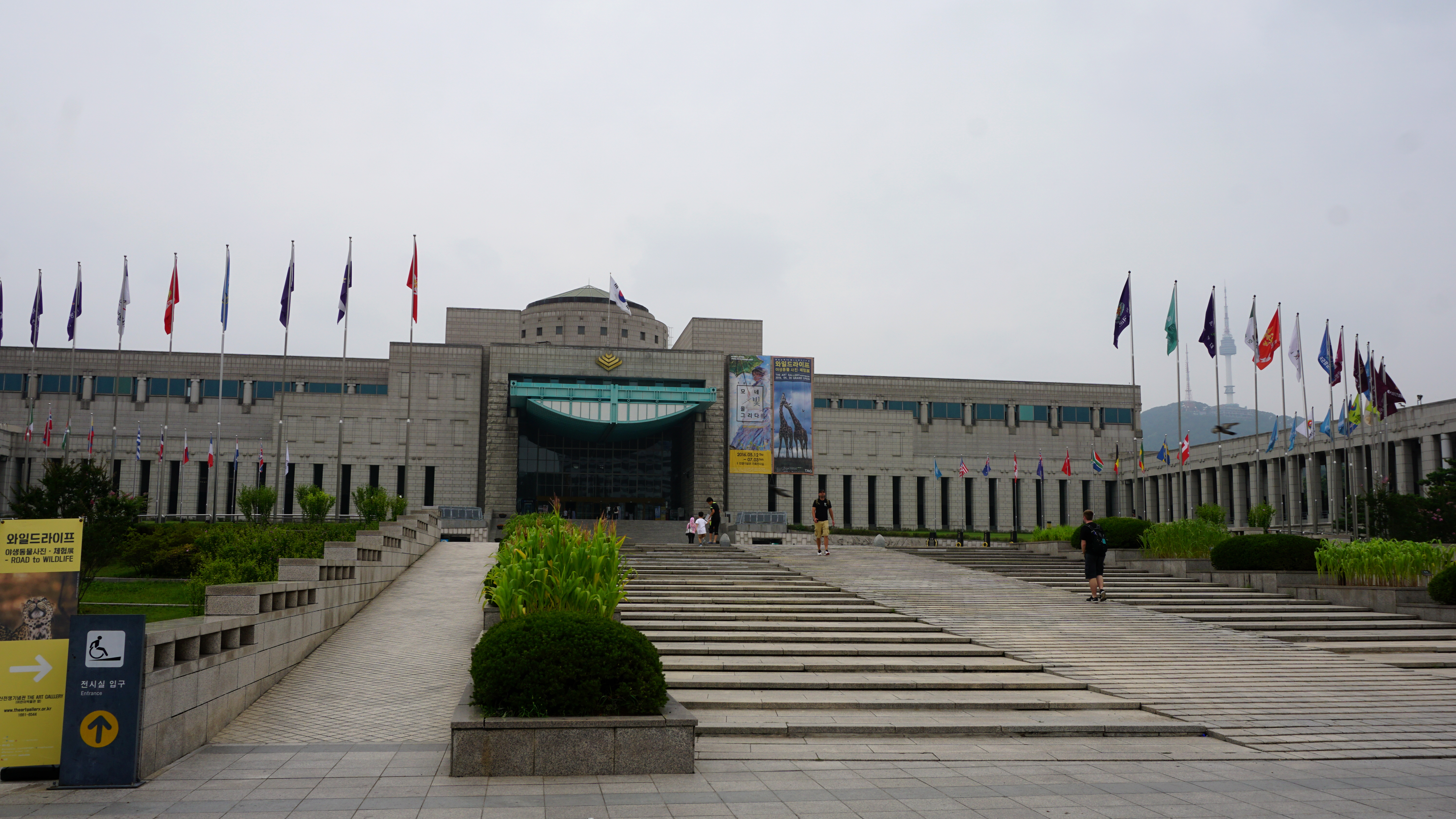 Memorials and monuments surround the museum. There are boats and planes and large sculptures of symbolic significance. Flags of the UN nations that fought for the south wrap around the entrance plaza welcoming visitors up the stairs.