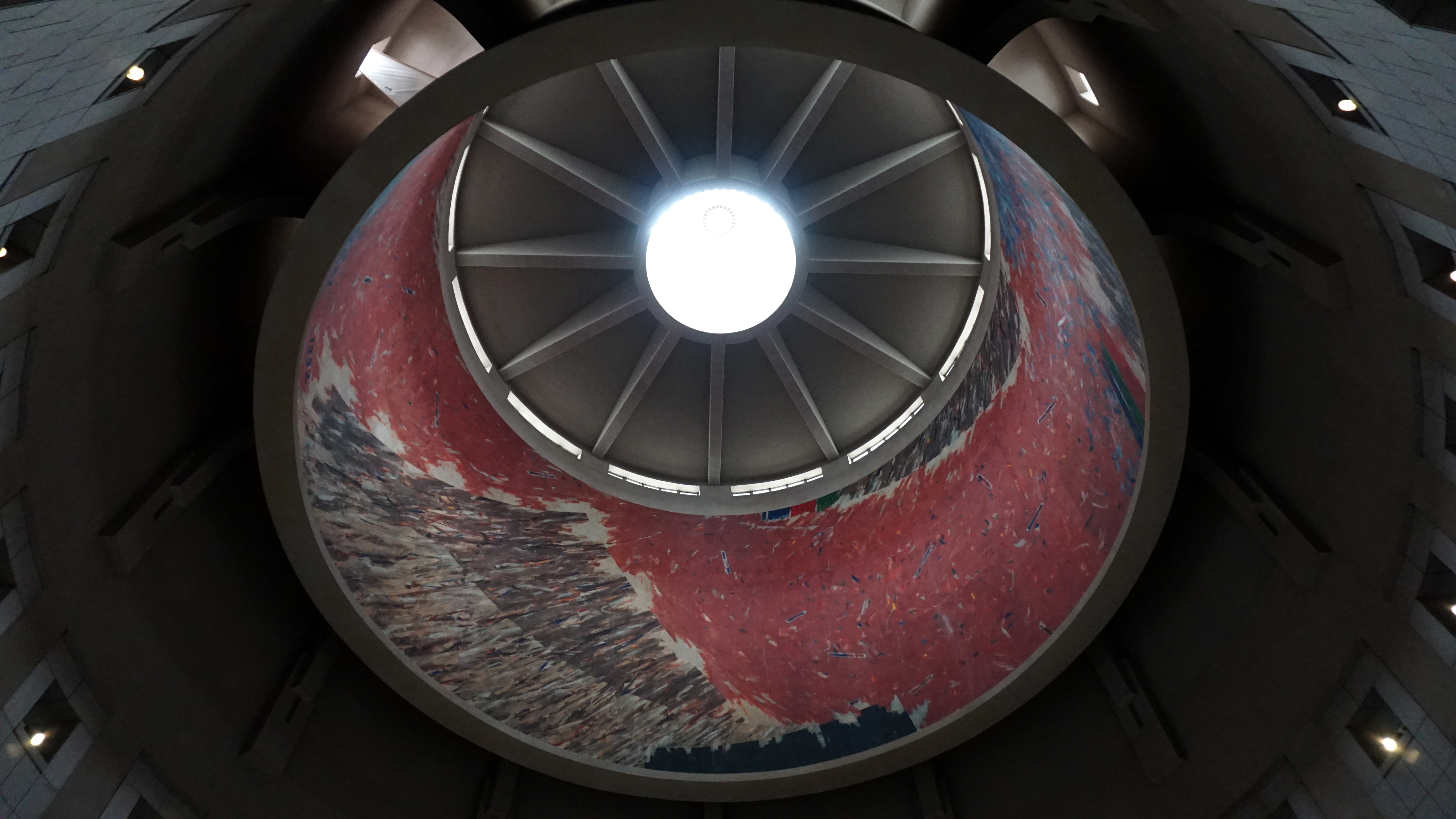 The museum consists of three main areas. The main memorial lies directly beyond the central axis of the building. A rotunda with fountain in the middle sits dimly lit with a beam of light coming from the oculus. Books of remembrance and candles are found at the entrance with names of people who served and gave their lives in the conflict.