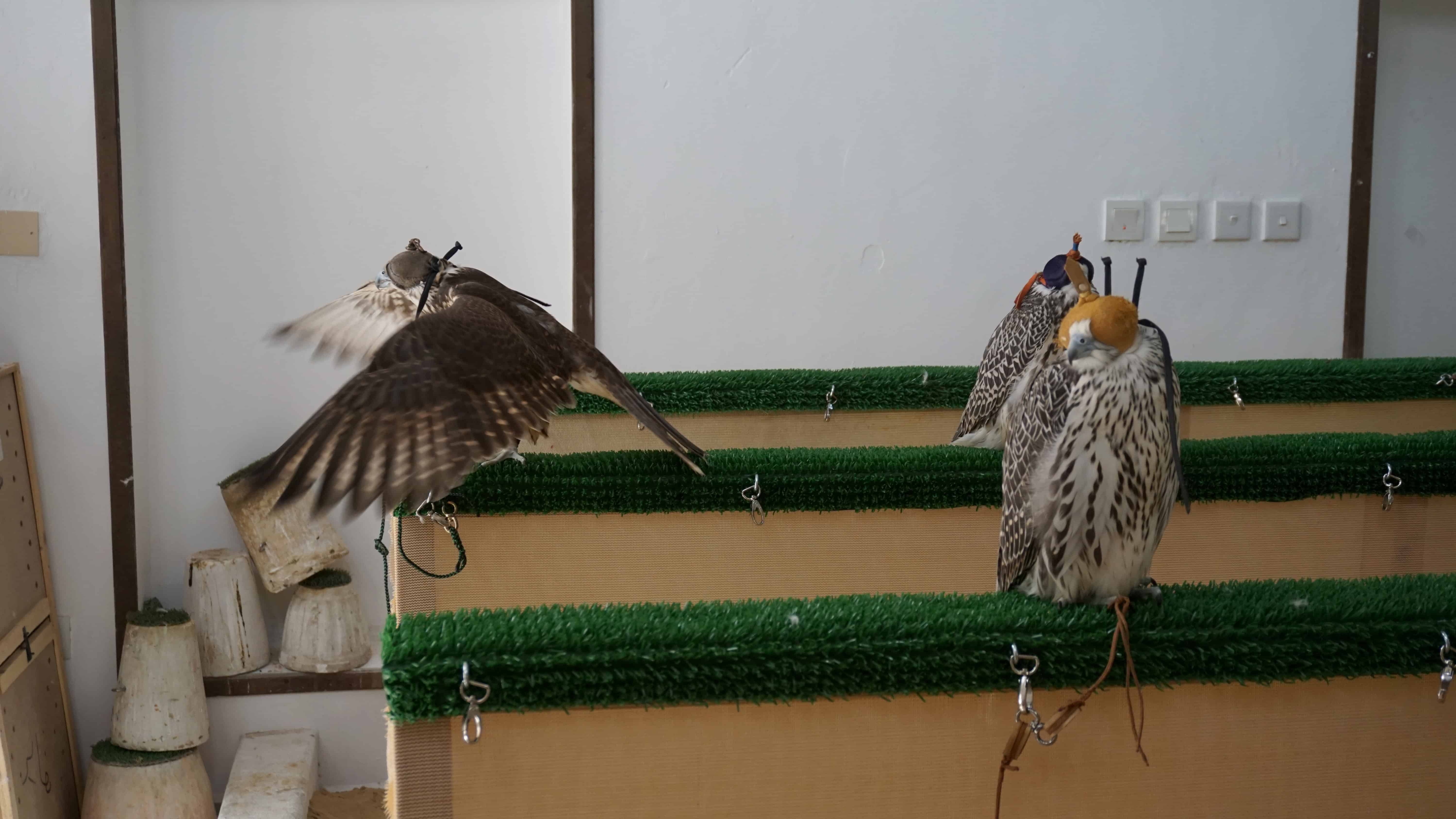 The birds are used for traditional hunting practices. I asked one of the keepers what they hunt. With a pair of falcons working together, they hunt small desert gazelles. Alone they bring in rabbits and more.