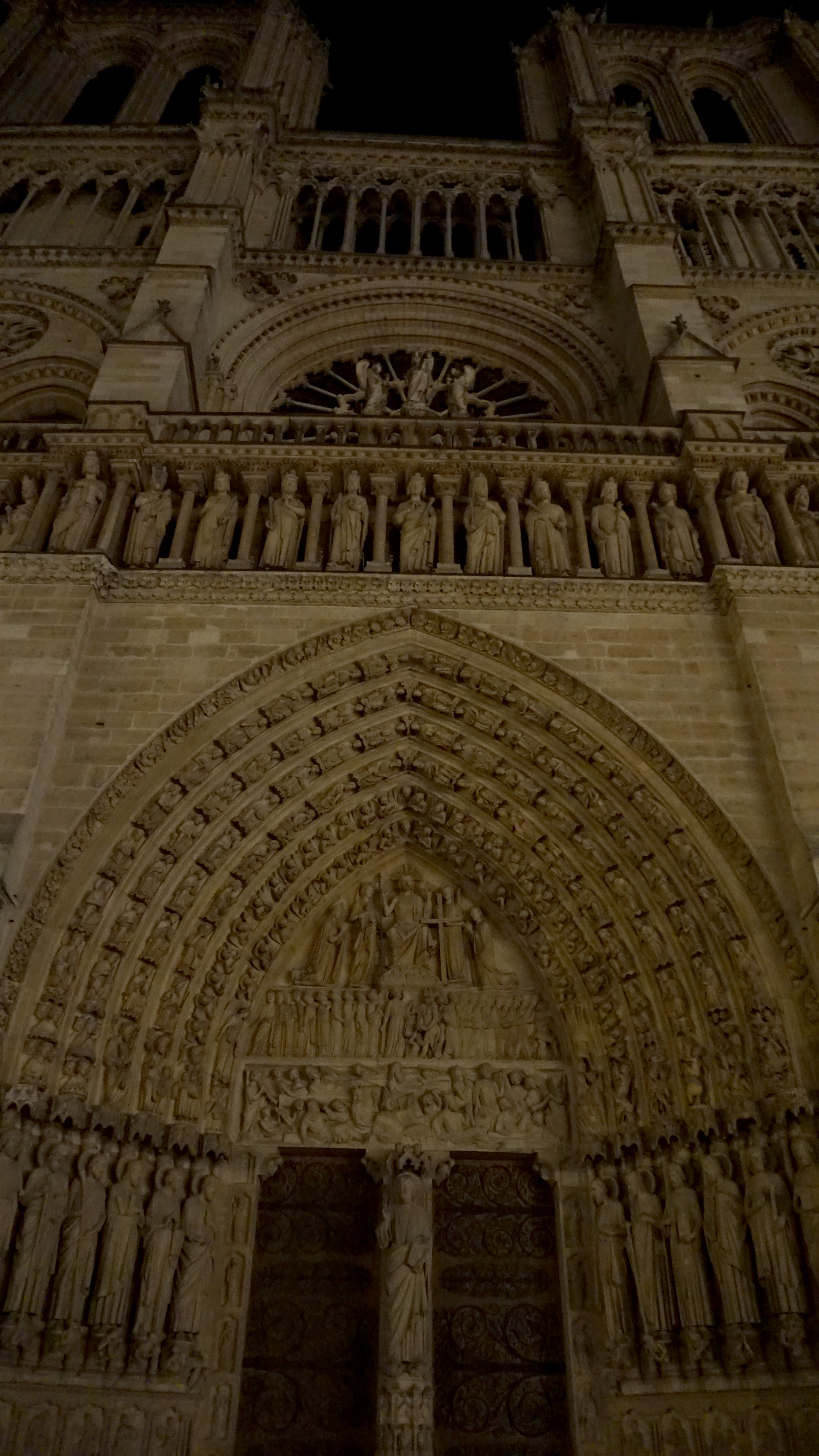 My walk’s end point was the heart of Paris. Literally, Paris is laid out from the square in front of this edifice. Notre Dame, the spectacular gothic cathedral sits on the banks of the Seine River. In front of it, a small square spreads out giving room to admire the stunning building, which at night is still breathtaking.