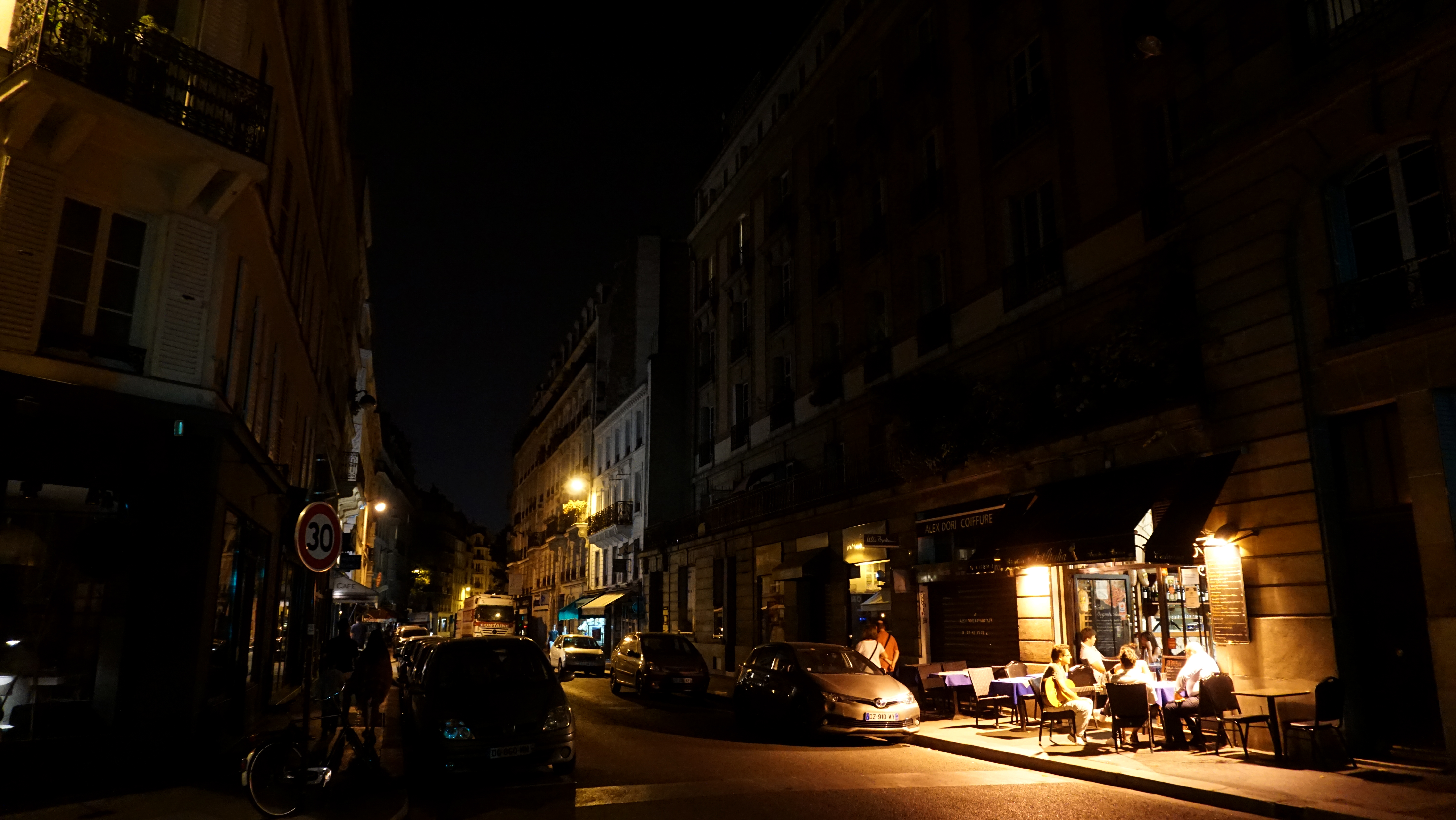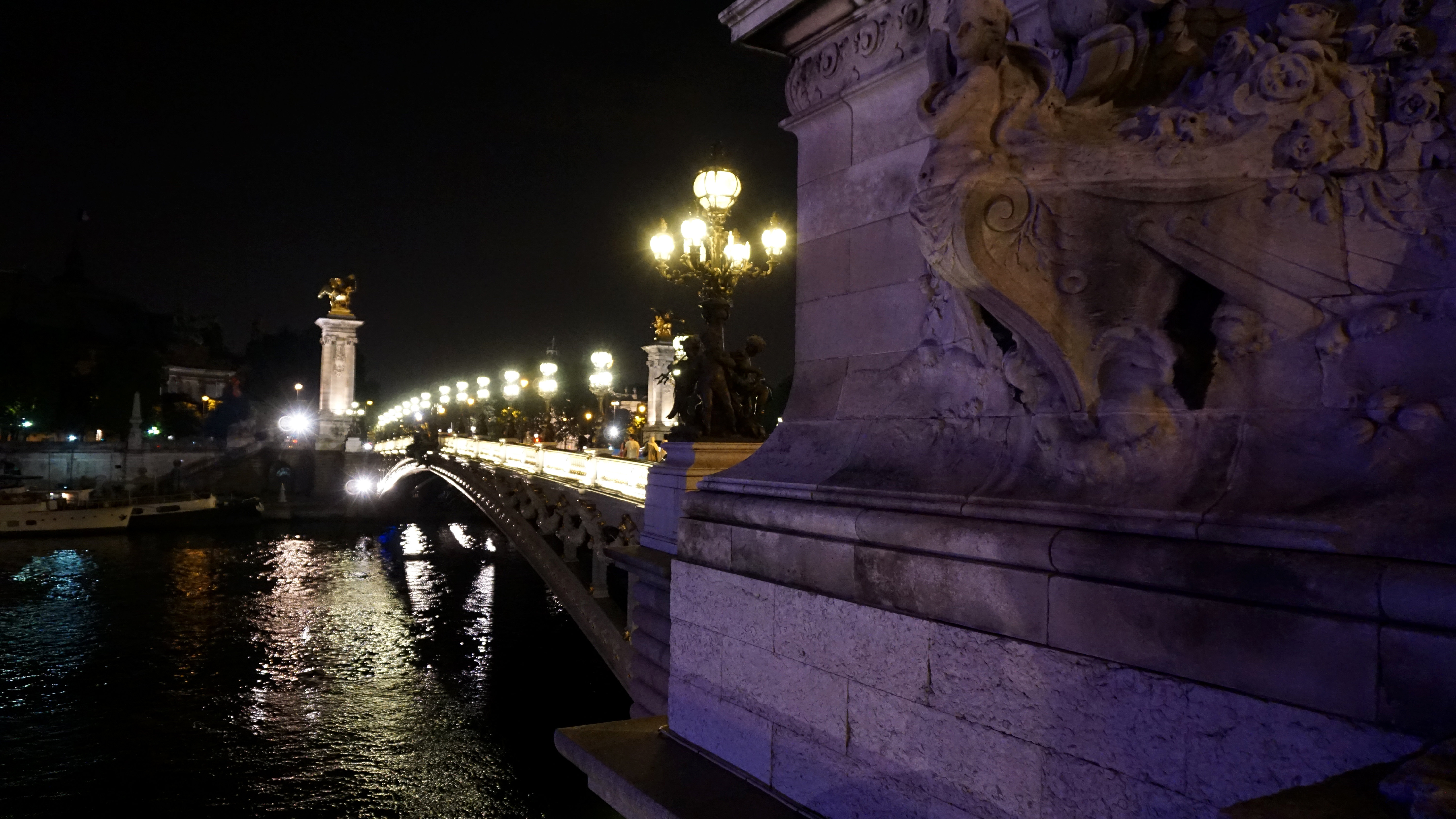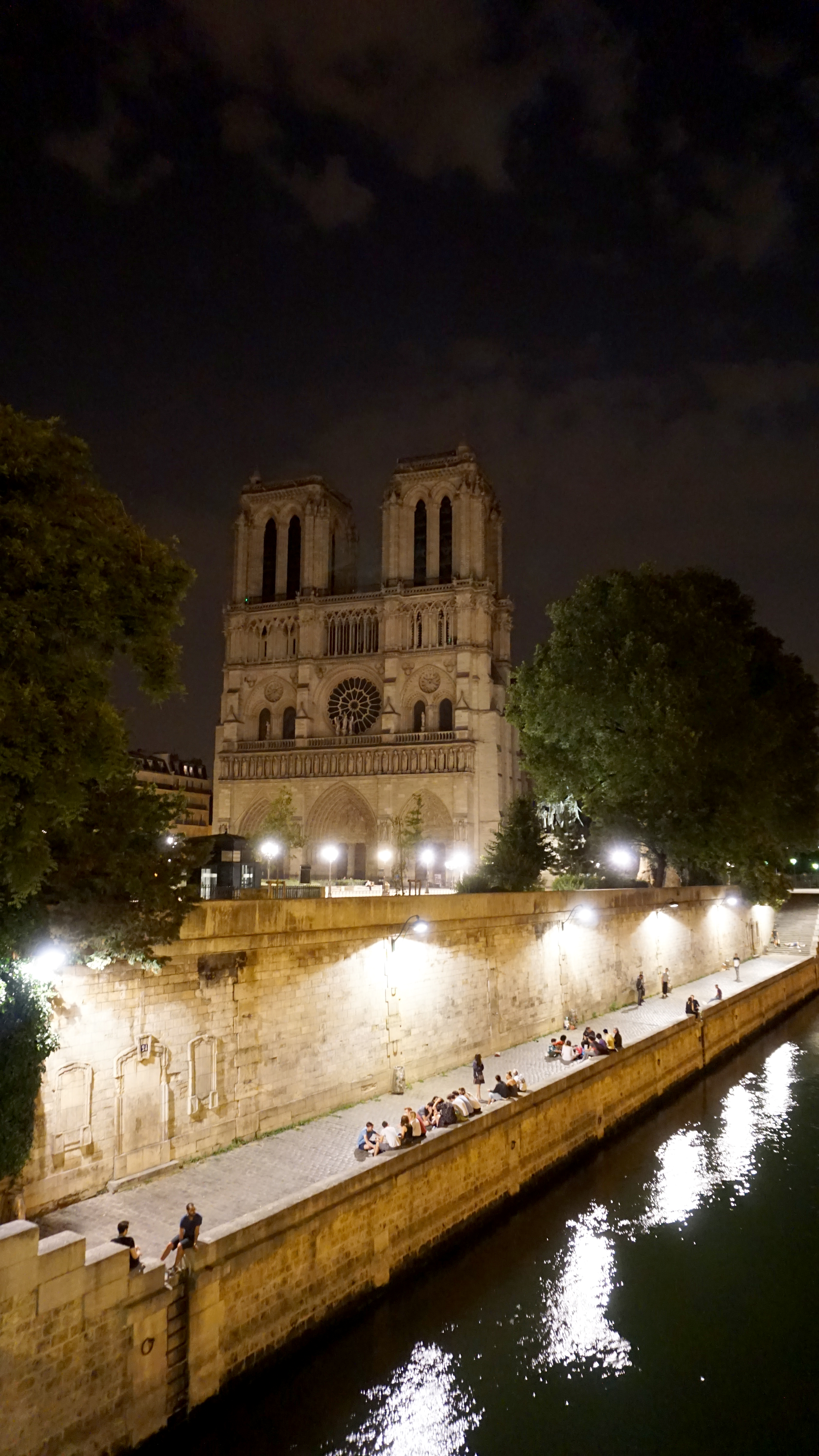 I sat on a bench and wrote some postcards to my nieces and nephews then got a closer look. A busker played guitar in front of the cathedral with a couple of people dancing. Below, by the river, revelers enjoyed a bar. For being 2 a.m., the city was still alive. If I concentrated hard enough, I even saw a dark shadow ducking behind the towers and gargoyles overhead. Someday, I’ll make it back to tour the inside of the building and the crypts beneath. This “Midnight in Paris” moment made me want that even more than before.