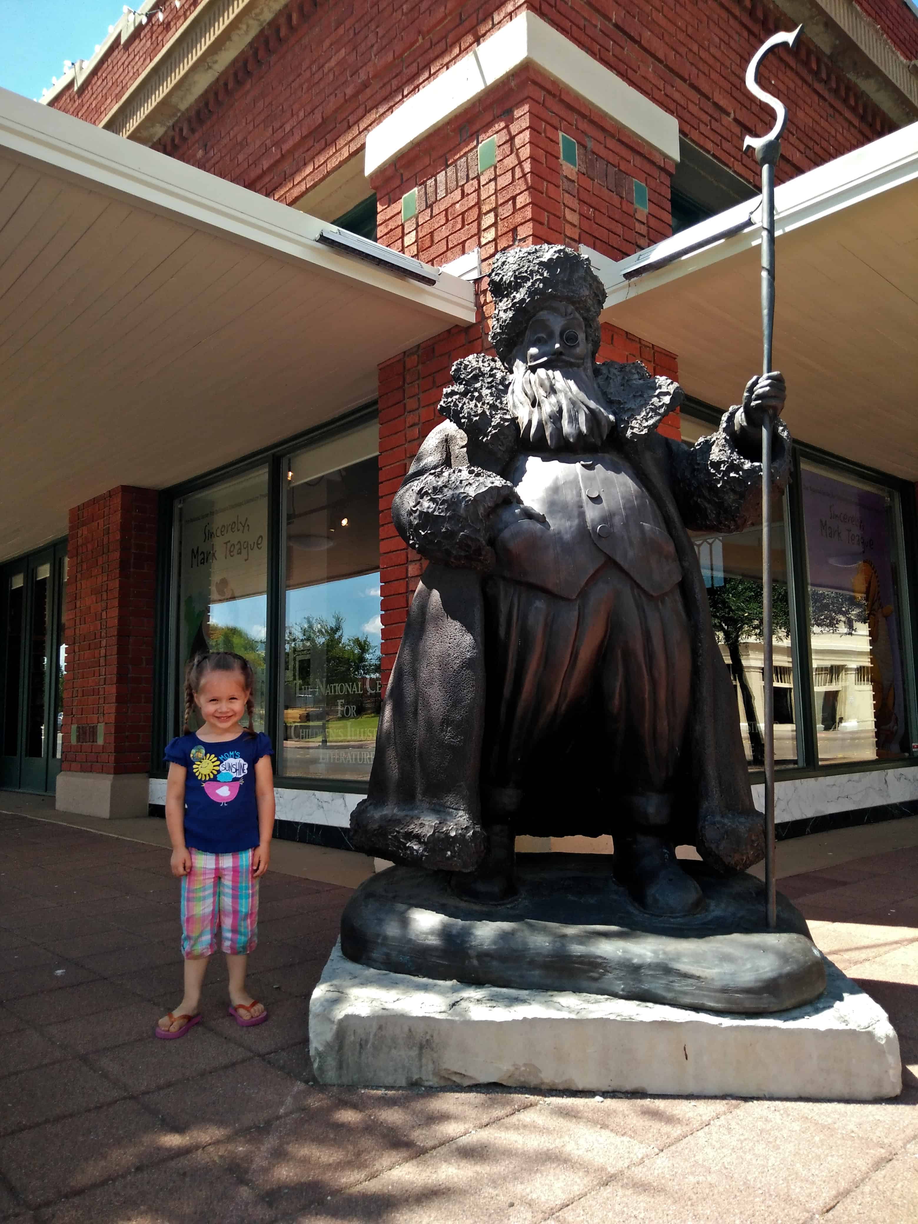 Driving through town to find the museum, we saw several sculptures of storybook characters. We later learned that each year the city hosts a storybook festival and adds new sculptures of characters to its city streets and parks. There are sculptures of Dr. Seuss characters, the Guardians of Childhood series, David and Fergus, among others.