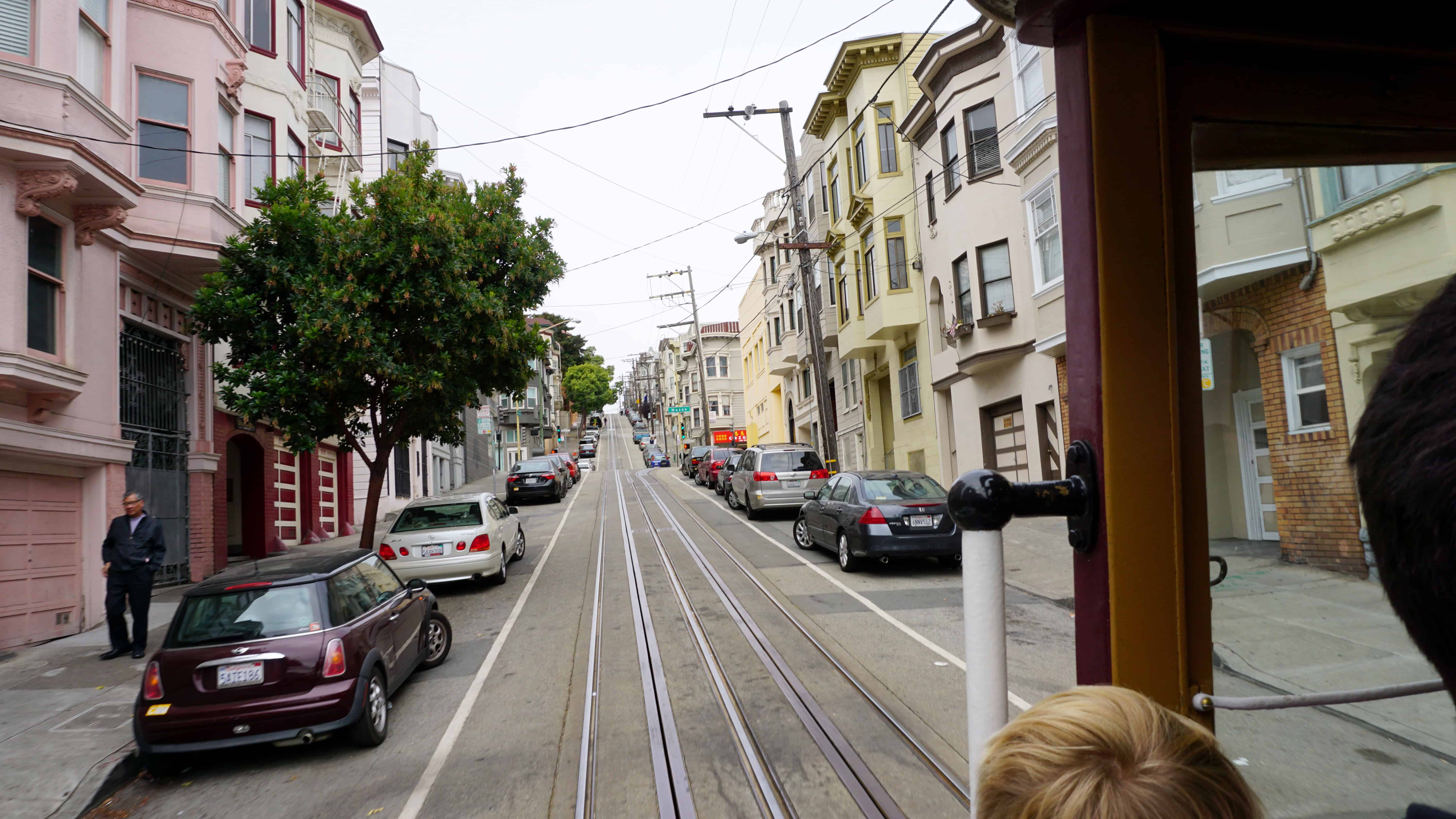 One of San Francisco’s famed attractions is the cable car system that takes people up and over the big hills that run through the city. I’ve seen them, but have never ridden them. Being carless this time, I thought it would be a good way to travel from points in the city while experiencing something iconic. The lines were ridiculously long. However, the ride was kind of fun hanging off the side.