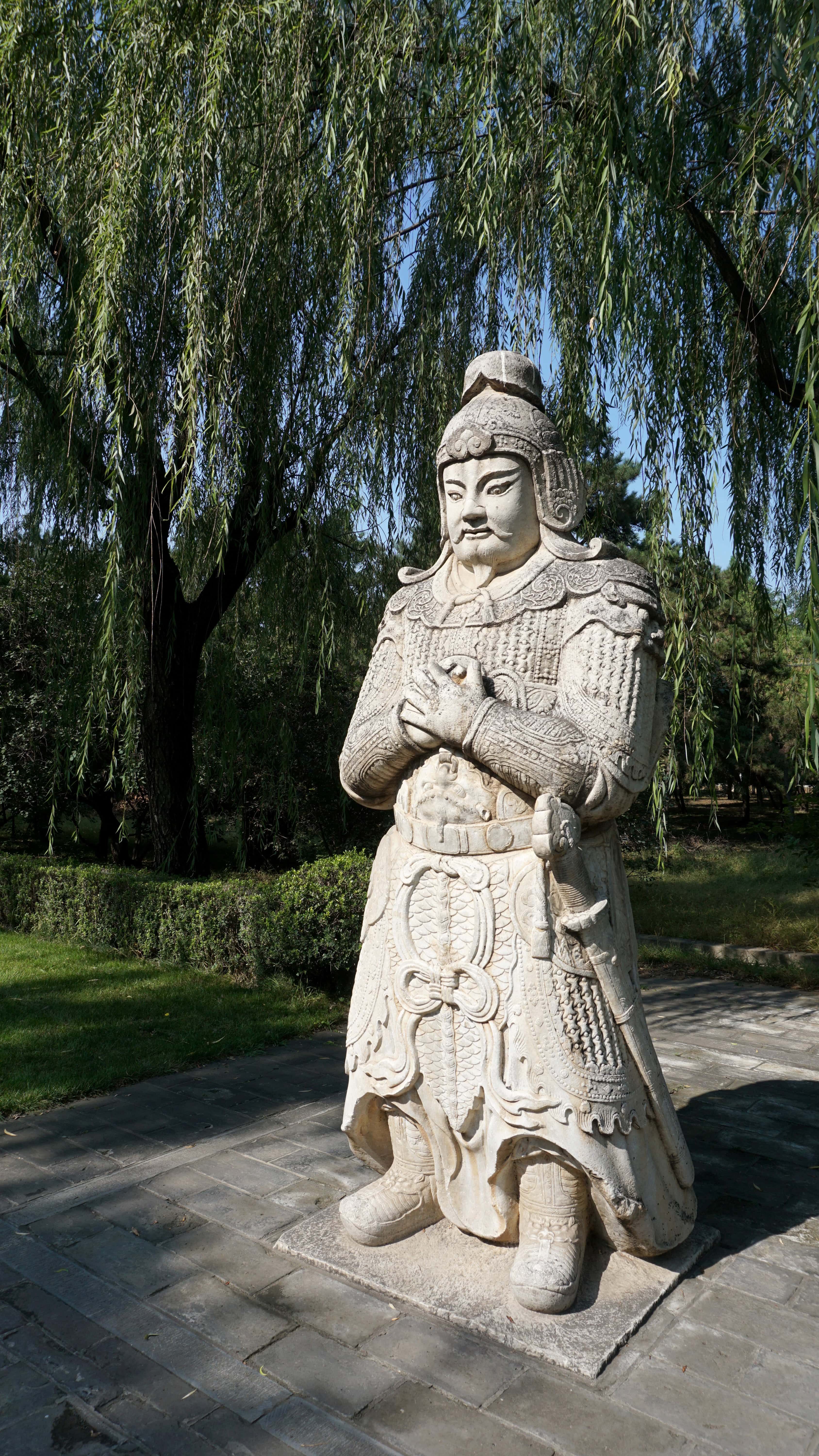 Another major portion of the tombs is the Spirit Way. This is essentially the entrance path to reach the tombs. Marked by gates at the entrance and exit, a stroll down this path is wonderful. Large stone statues of animals, mythical beasts, and court officials line the walkway with beautiful willow trees swaying overhead.