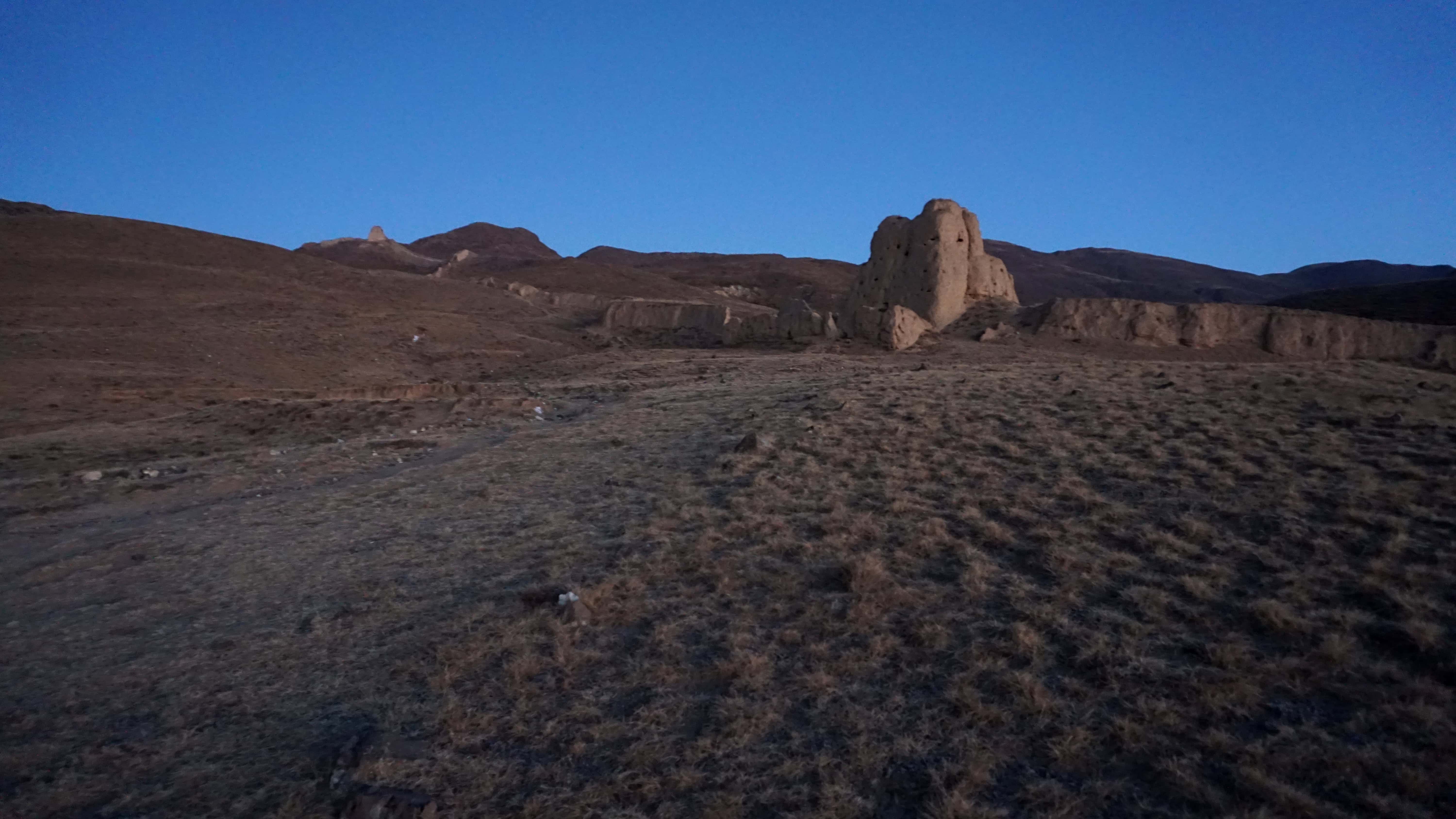 All of this amazing scenery is accented by old turrets and sections of ancient wall. The bricks and stone are all gone, but the compacted earth fillings still show the course of the wall run down the hill into the distance.