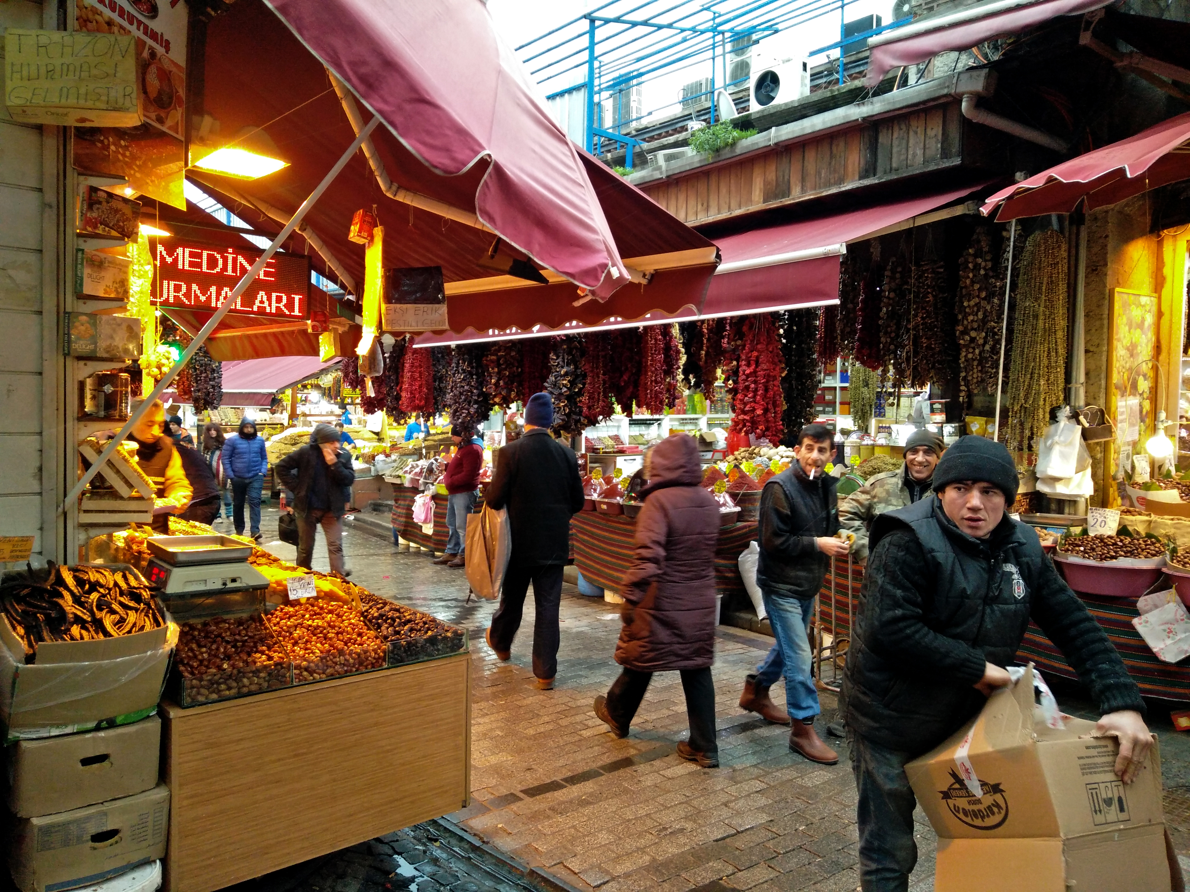 The second market we visited is the spice market. Much smaller, this market specializes in spices and foods. It smells amazing. However, the real treat and the better prices come in all of the narrow roads and alleys around it. This is where the locals shop. This is a real market for useful stuff, in addition to the touristy stuff like an insane amount of Turkish delights vendors. By the way, Turkish delights in the West are not like the real deal. They are cheap knock-offs. The real things are amazing! They are ecstasy! Oh, and pistachios are delicious, if you didn’t know, and Turkey has them all over the place in all kinds of tasty treats.