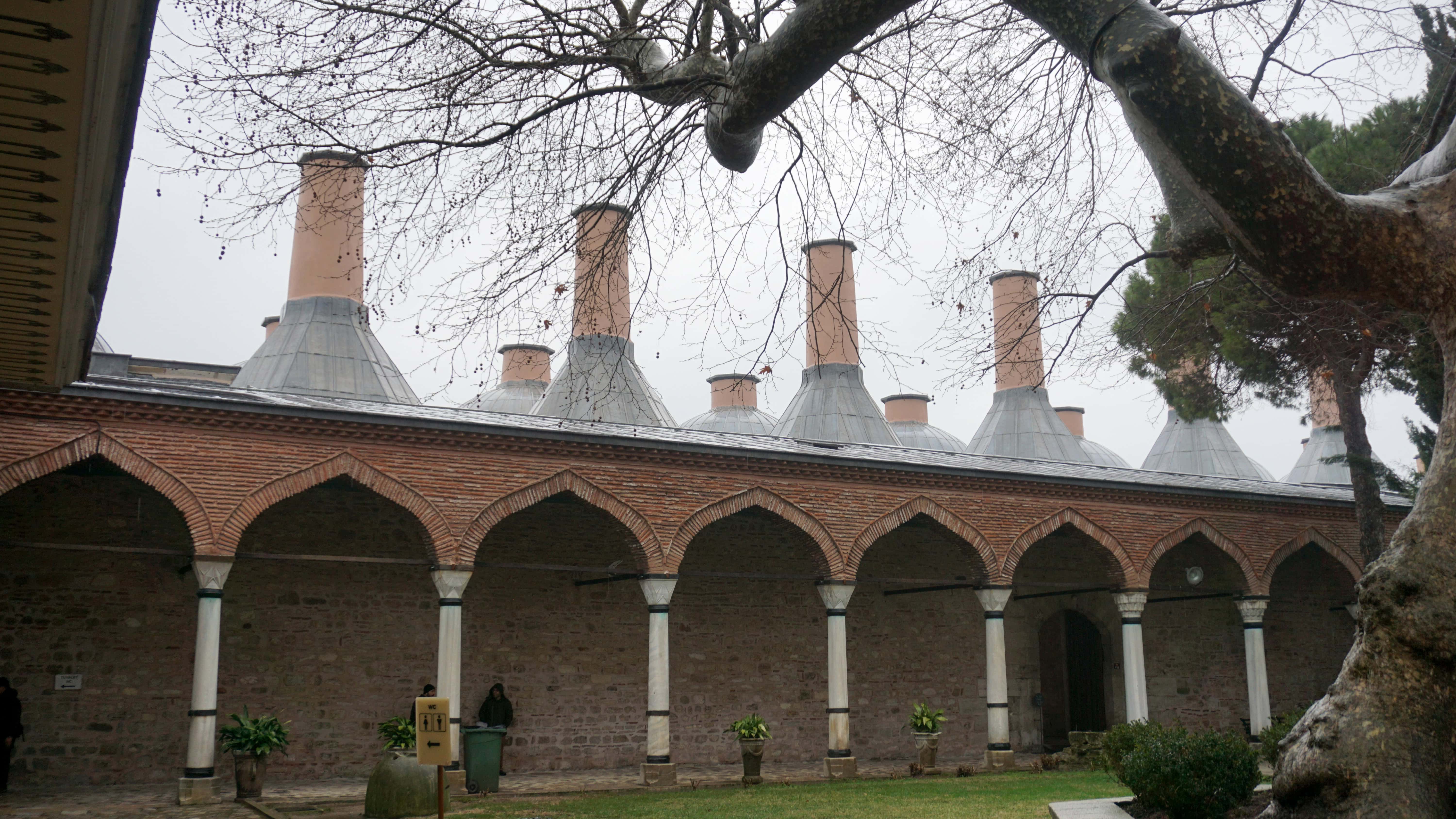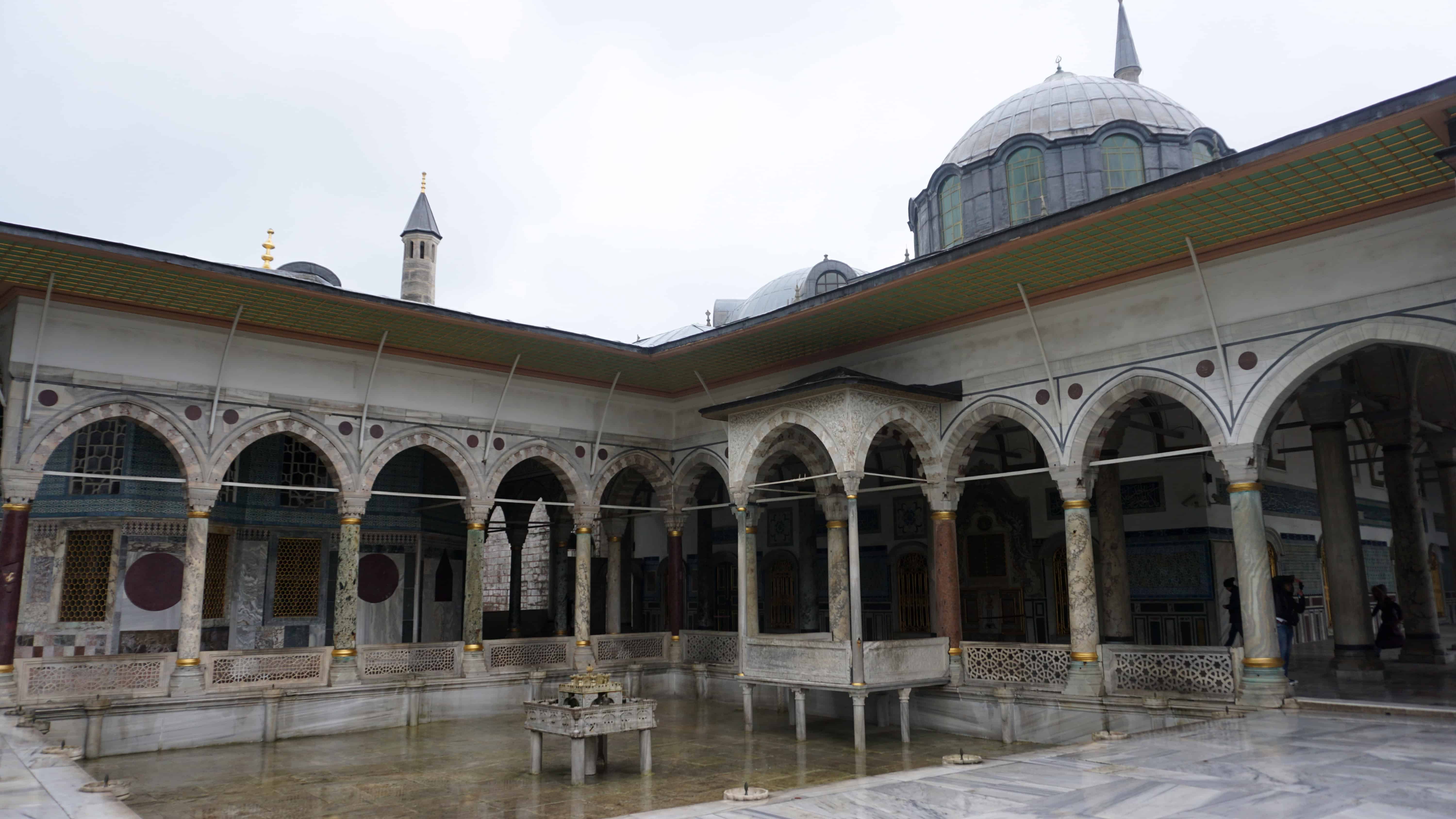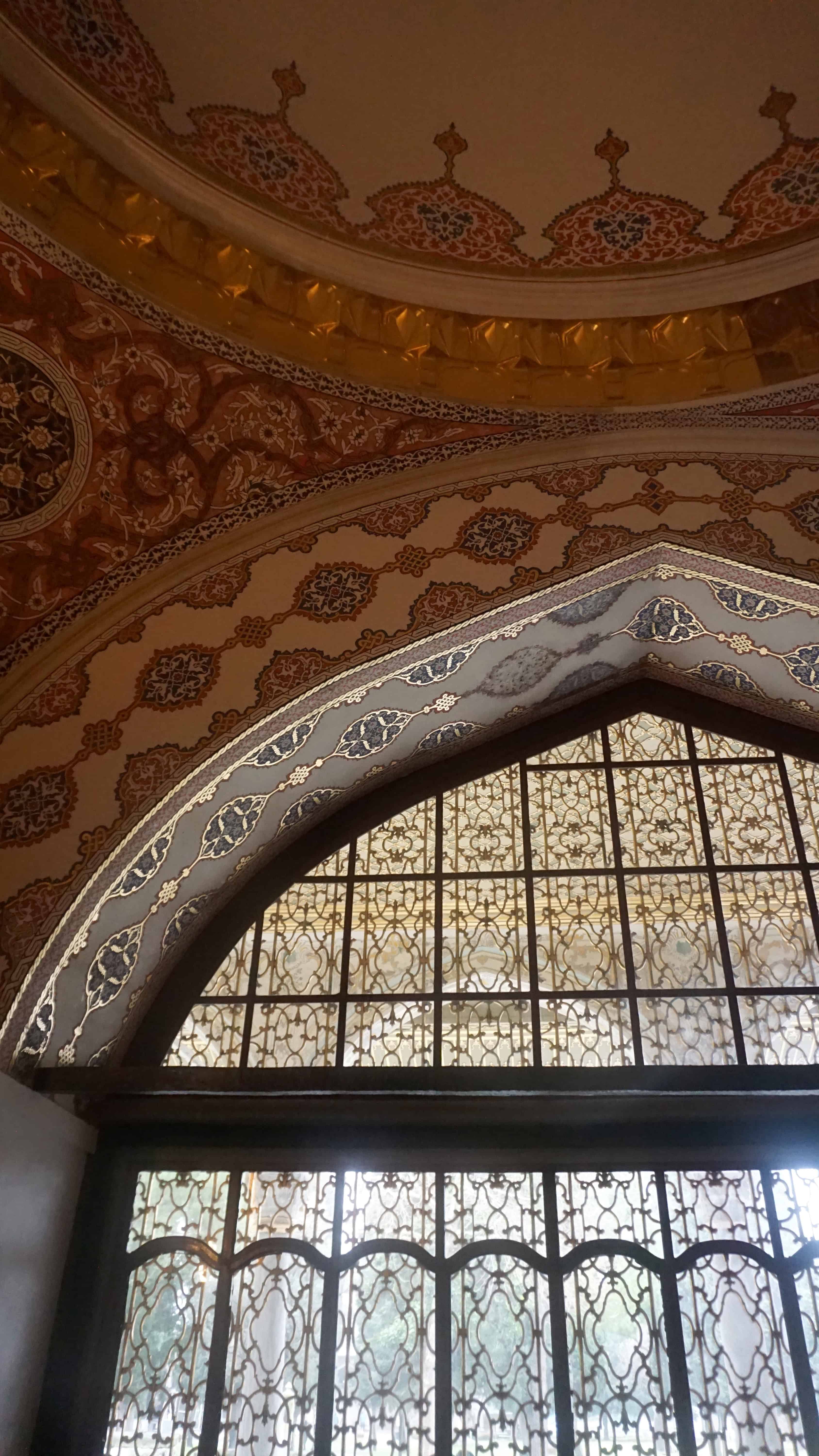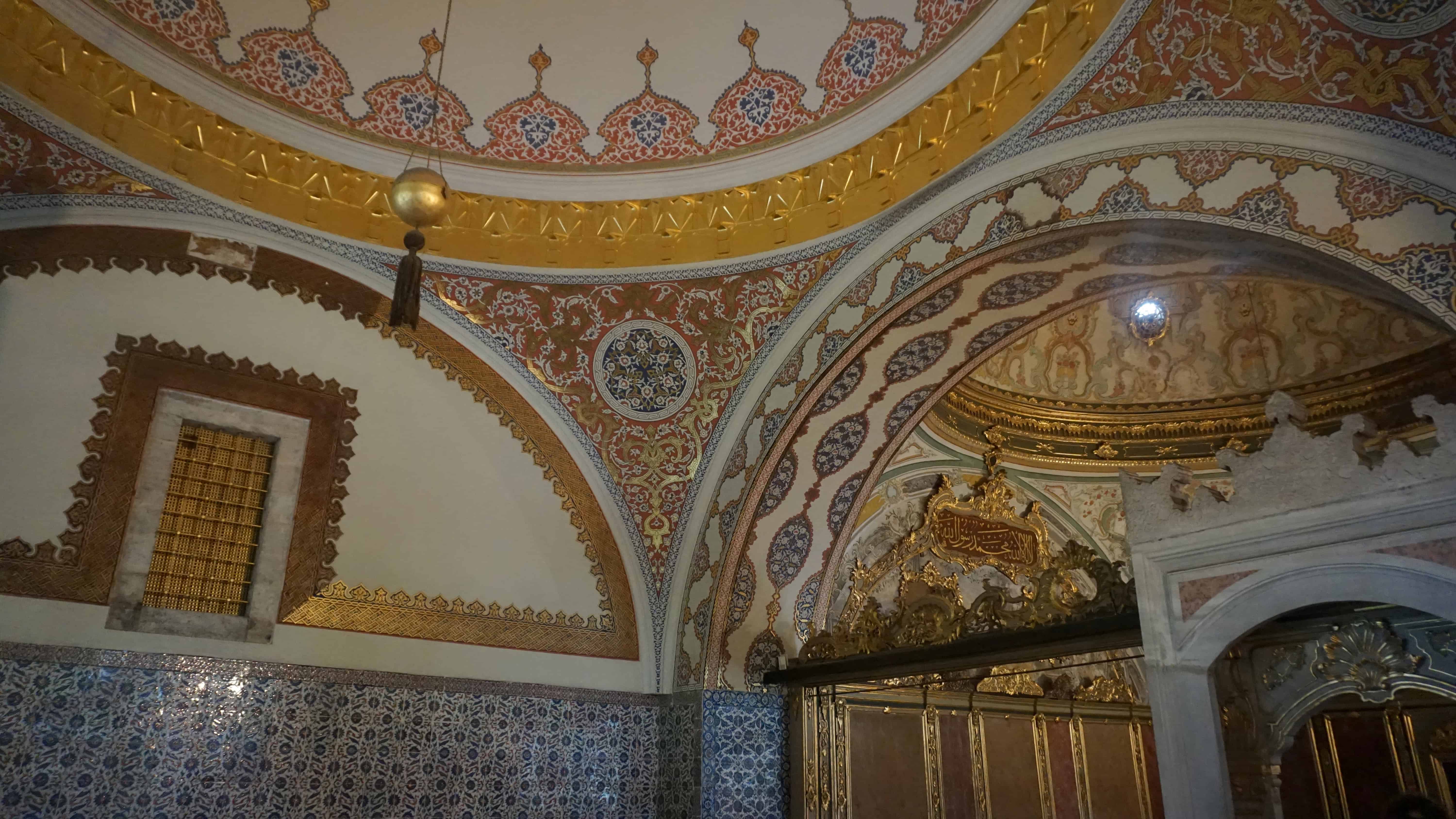 To Ottoman sultans and their courts Topkapi Palace was home in Istanbul. This large palace complex includes royal living quarters, meeting and consultation rooms, libraries, a harem, and much more. In the Ottoman tradition, the rooms are all spectacularly decorated. Many have domes, which are elaborately painted. There is magnificent stone work, and there are lovely courtyards and gardens.