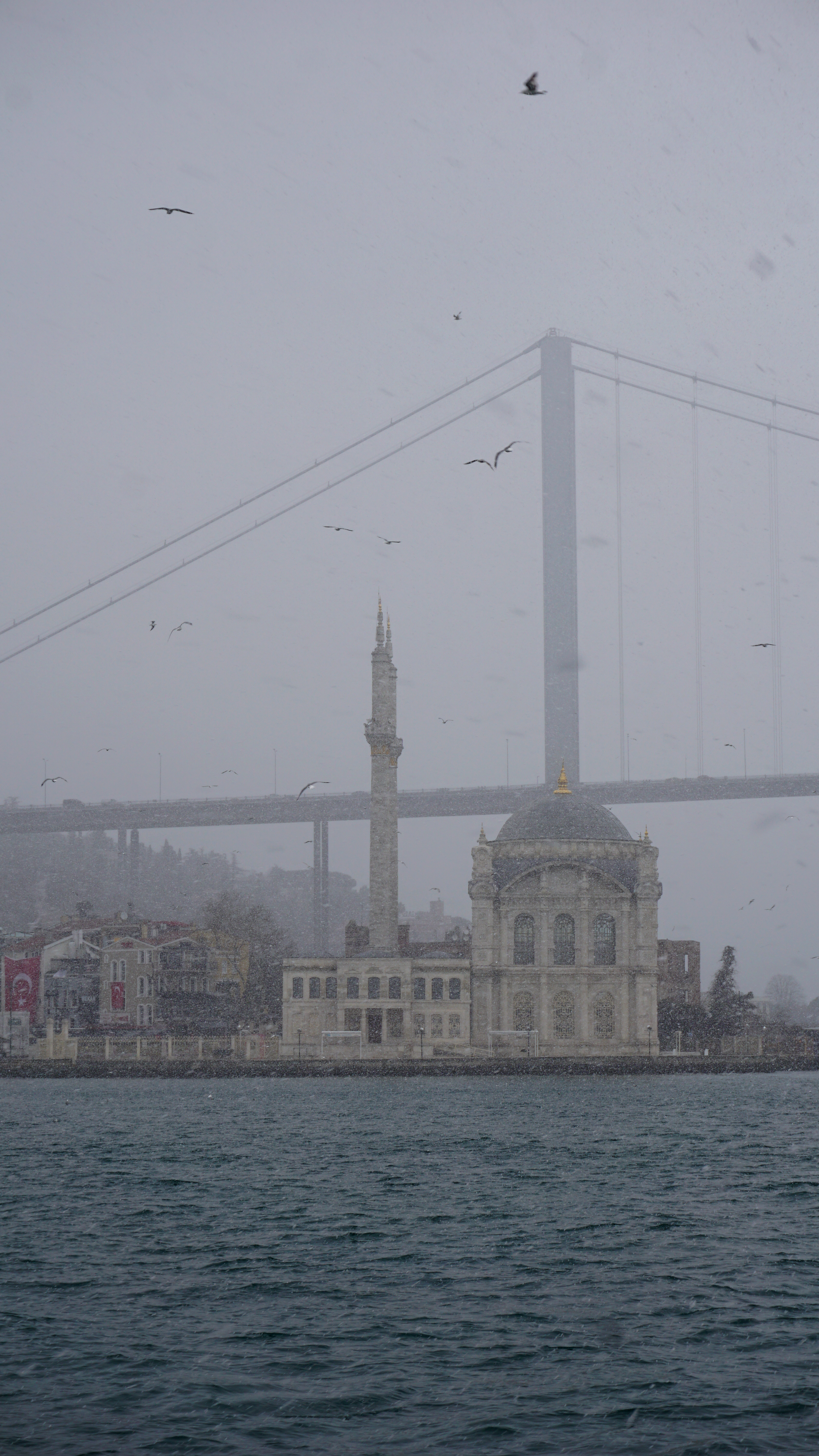 Our Bosphorus cruise ended just as the snow was clearing up. Just before we ended, we saw Maiden’s Tower in the mouth of Marmara. You may remember it from James Bond: The World is not Enough. The snow was also clearing up at the time, so we could get a better view of the Sultanahmet with Hagia Sophia and the Blue Mosque.