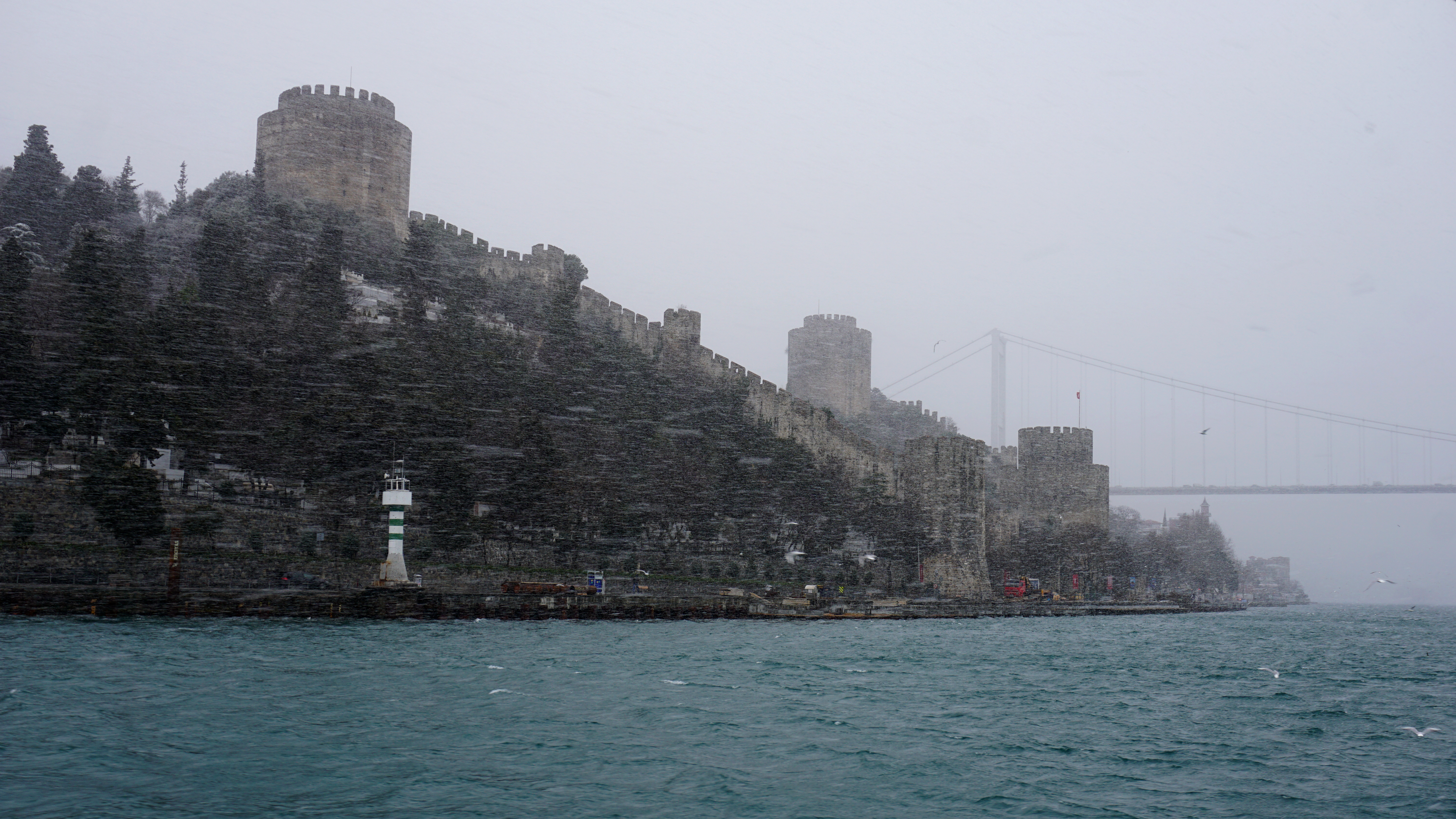 One of the things to do in Istanbul is to experience the Bosphorus Strait on a cruise. We did this with our guide. It was a snowy morning with flurries coming and going, but the cruise wasn’t a wash. We could still see and enjoy the scenery and sights.