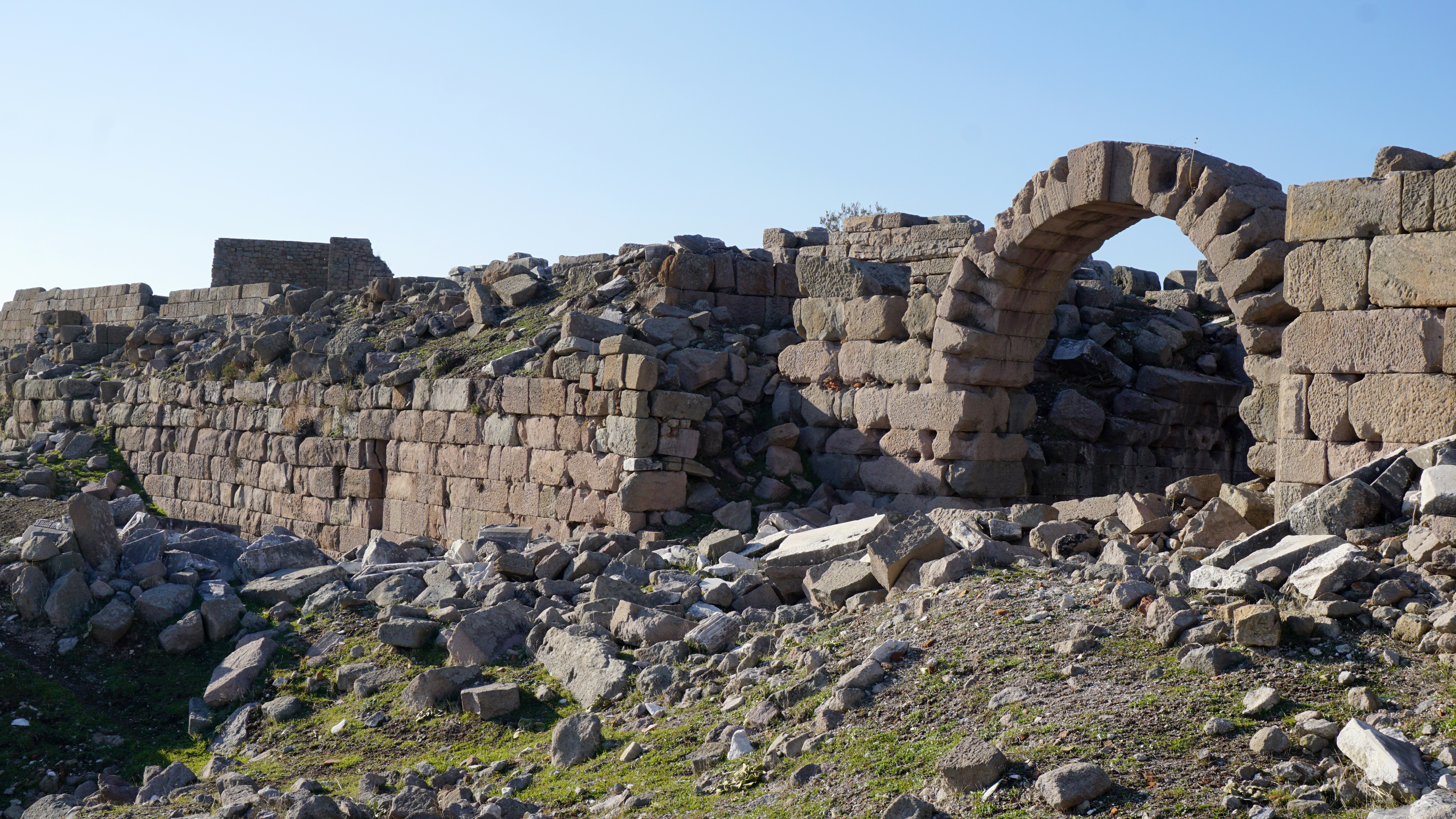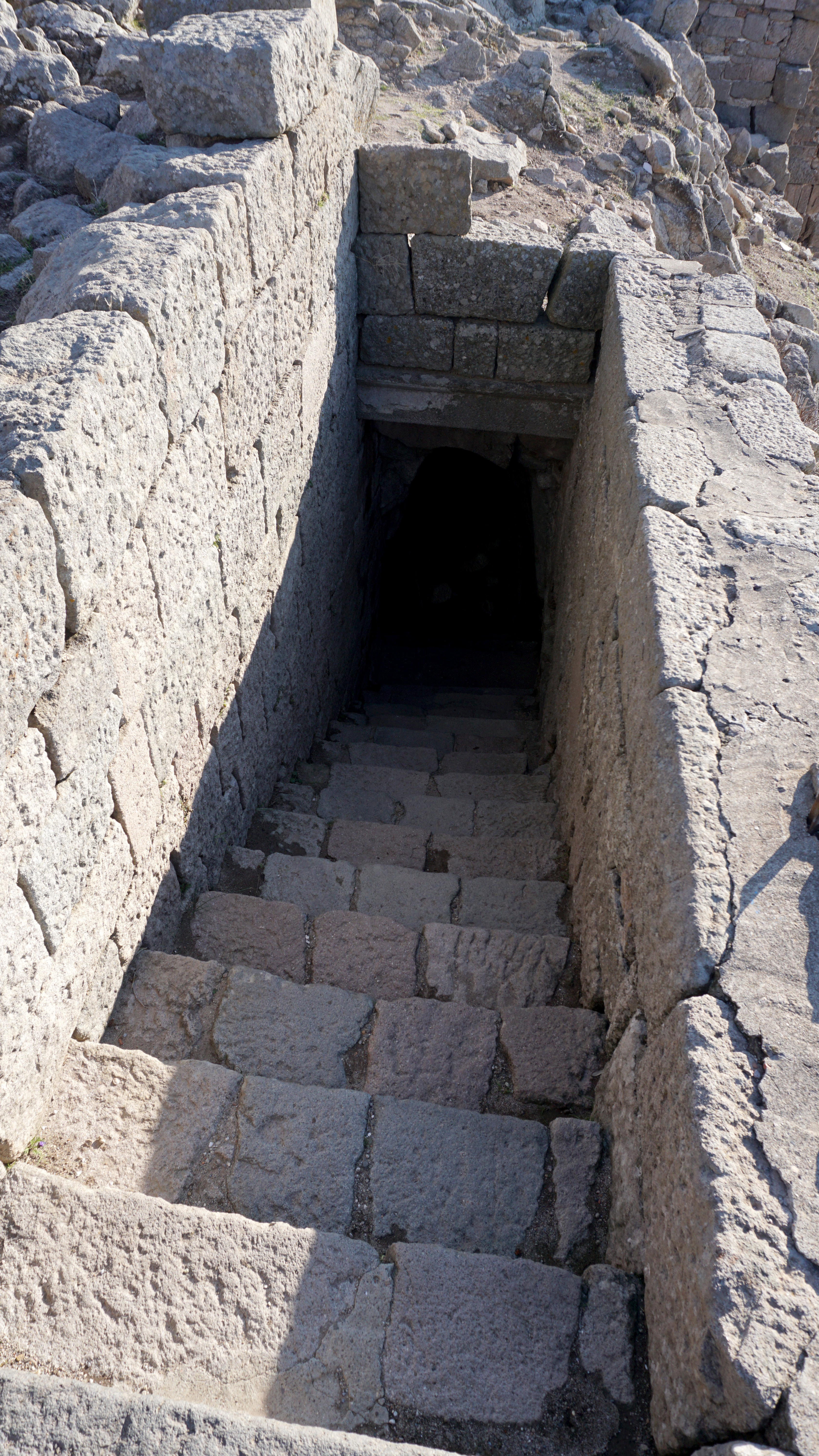 One of its most impressive structures is a temple built to honor Trajan. Mostly collapsed, there is only a bit left to see of the exterior structure on top of the acropolis. But, perhaps more impressive is the engineering that went into making the large platform the temple sits on. Vaulted chambers carry the weight of the structure. They are massive and pretty amazing to walk through and by.