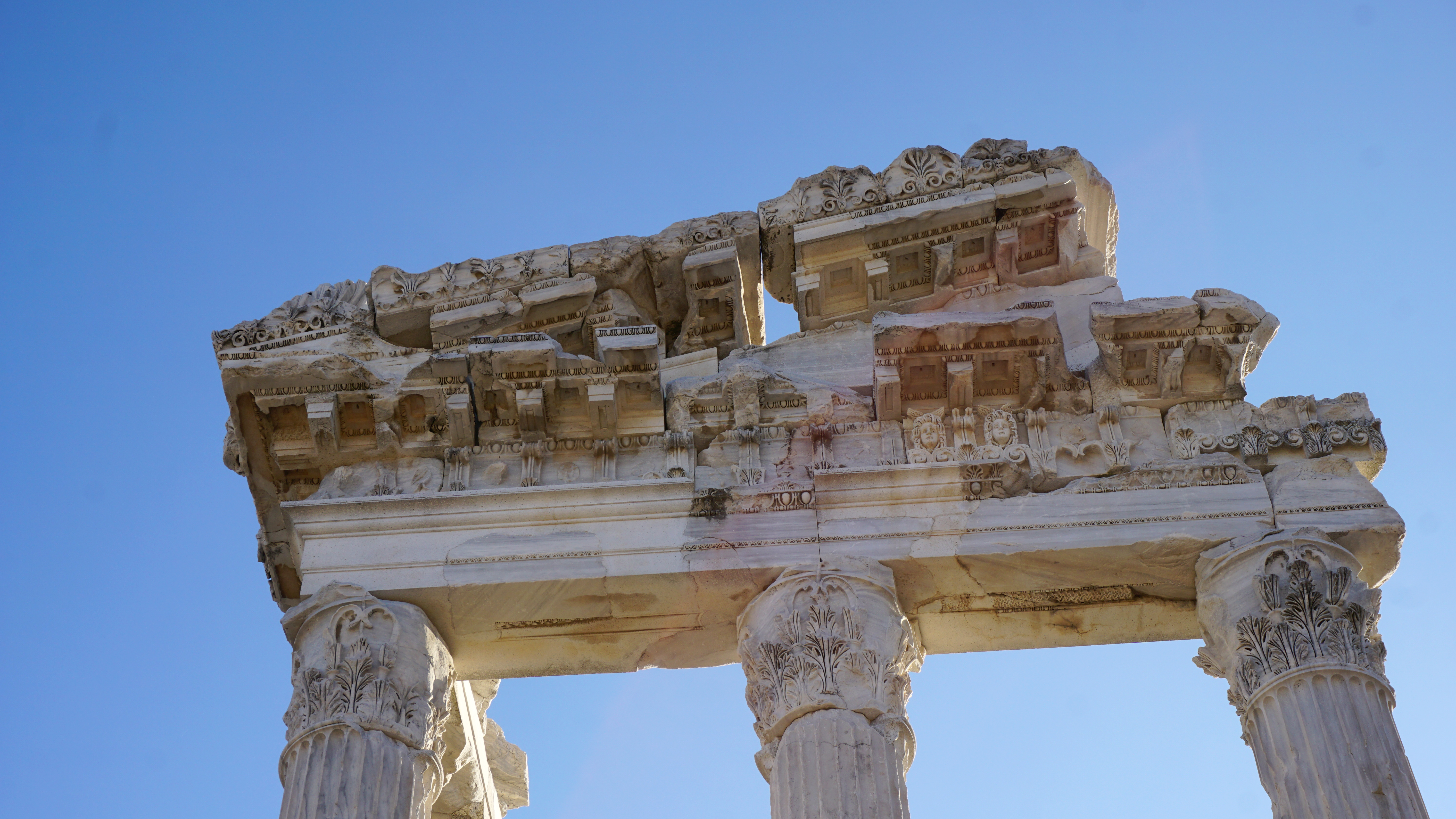 Even with only a handful of columns left on the top, they are still impressive and offer a glimpse of the former structure’s magnificence. The detail carved in stone is stunning! There are lion head water spouts and angelic faces on the cornices. The columns are decorated with elaborate wreaths and lush capitals of acanthus leaves. Euphoric is the best word for when I rubbed my hands across the anciently carved marble and felt the expertly carved shapes and forms.