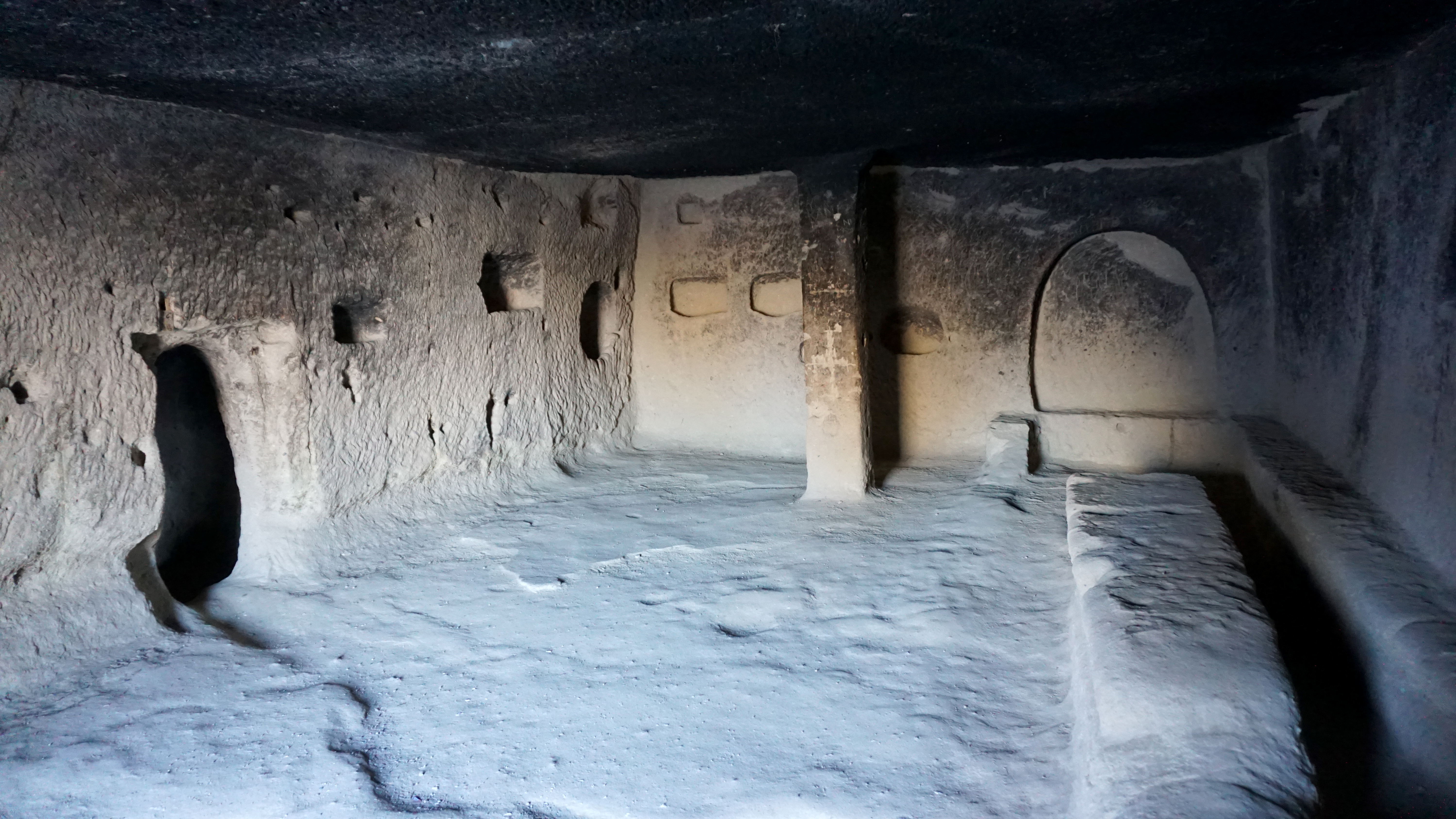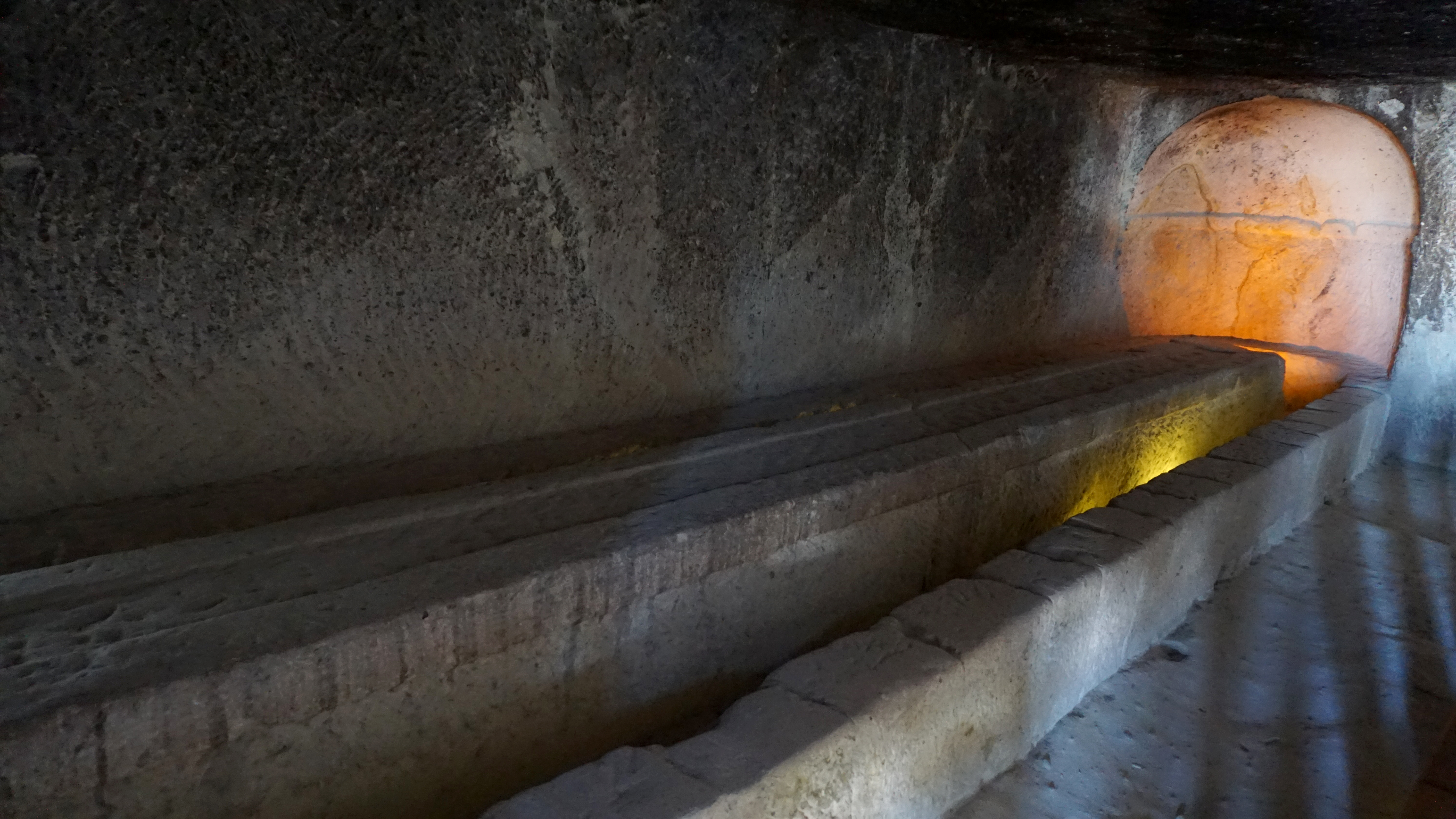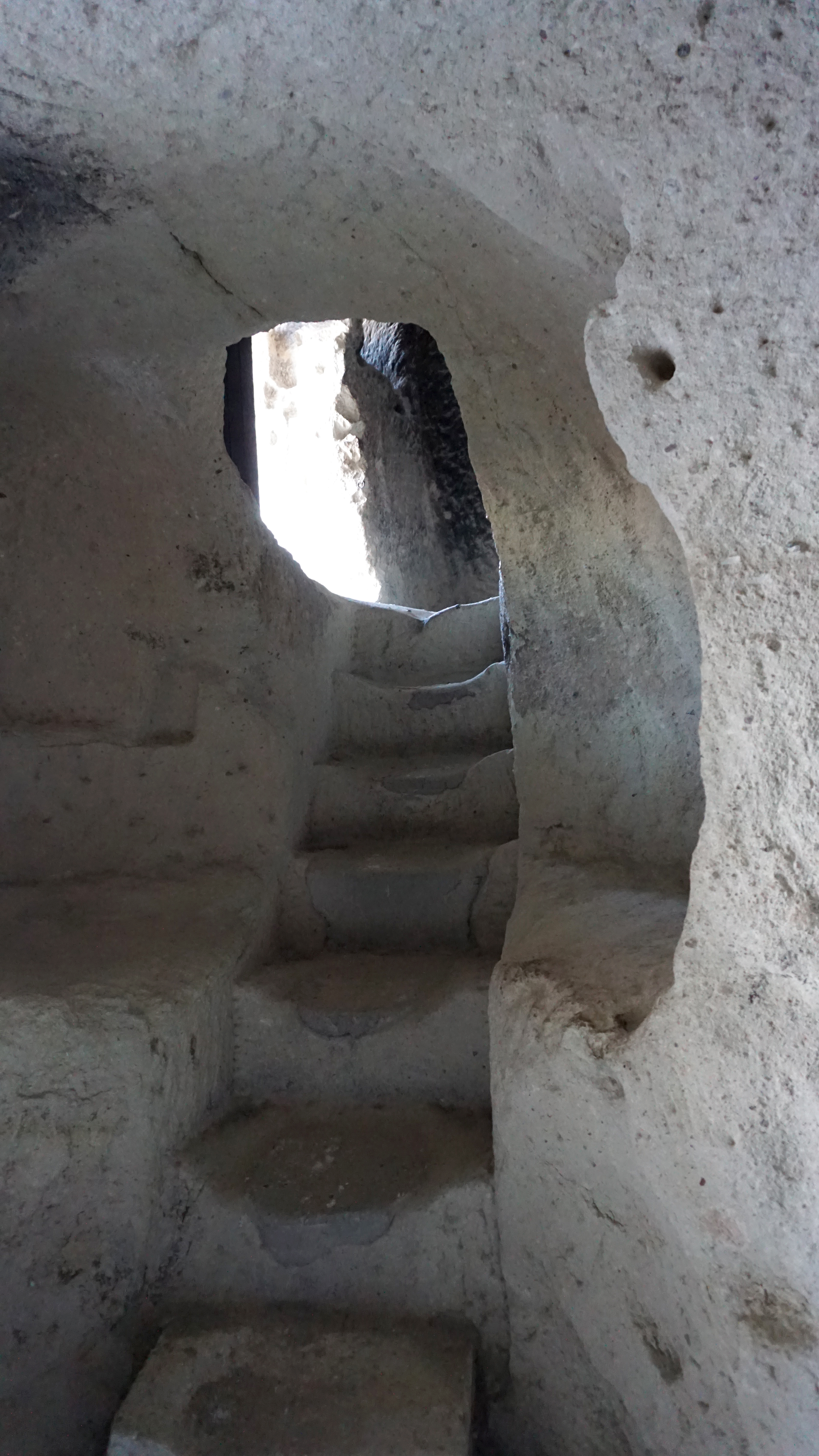 The museum is a grouping of fairy chimneys and cliff sides with rooms hollowed out. They were used for living spaces, dining areas and kitchens, workspaces, and chapels. Walking through this community of cave dwellings, I couldn’t help but wonder what it may have been like in the days when people were creating these spaces. Some of the chapels are high up on cliffs, so reaching them is difficult today. They would have clambered up the wall with ropes or scaffolding to do what they did. Some are through narrow tunnels, like labyrinths.