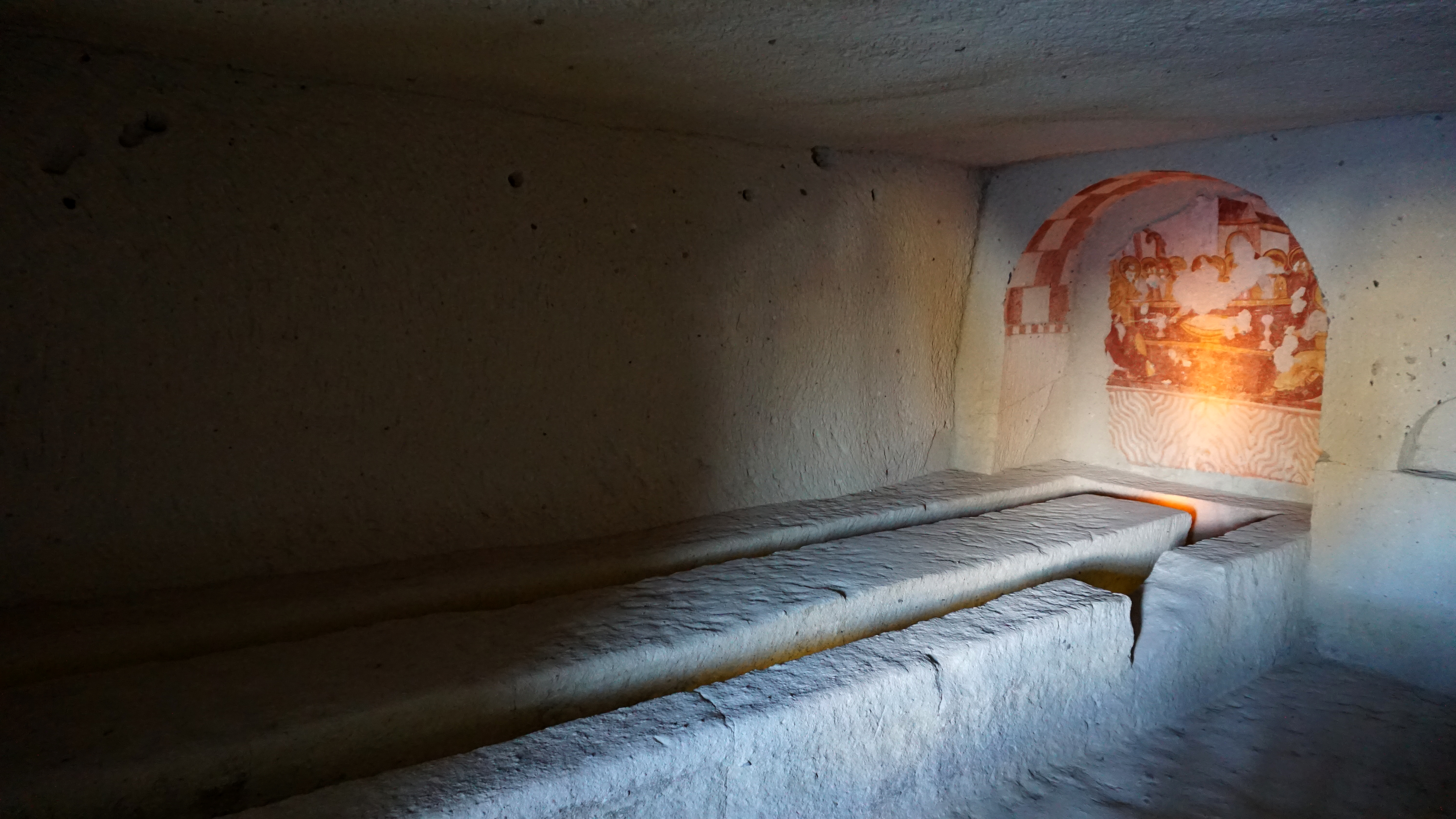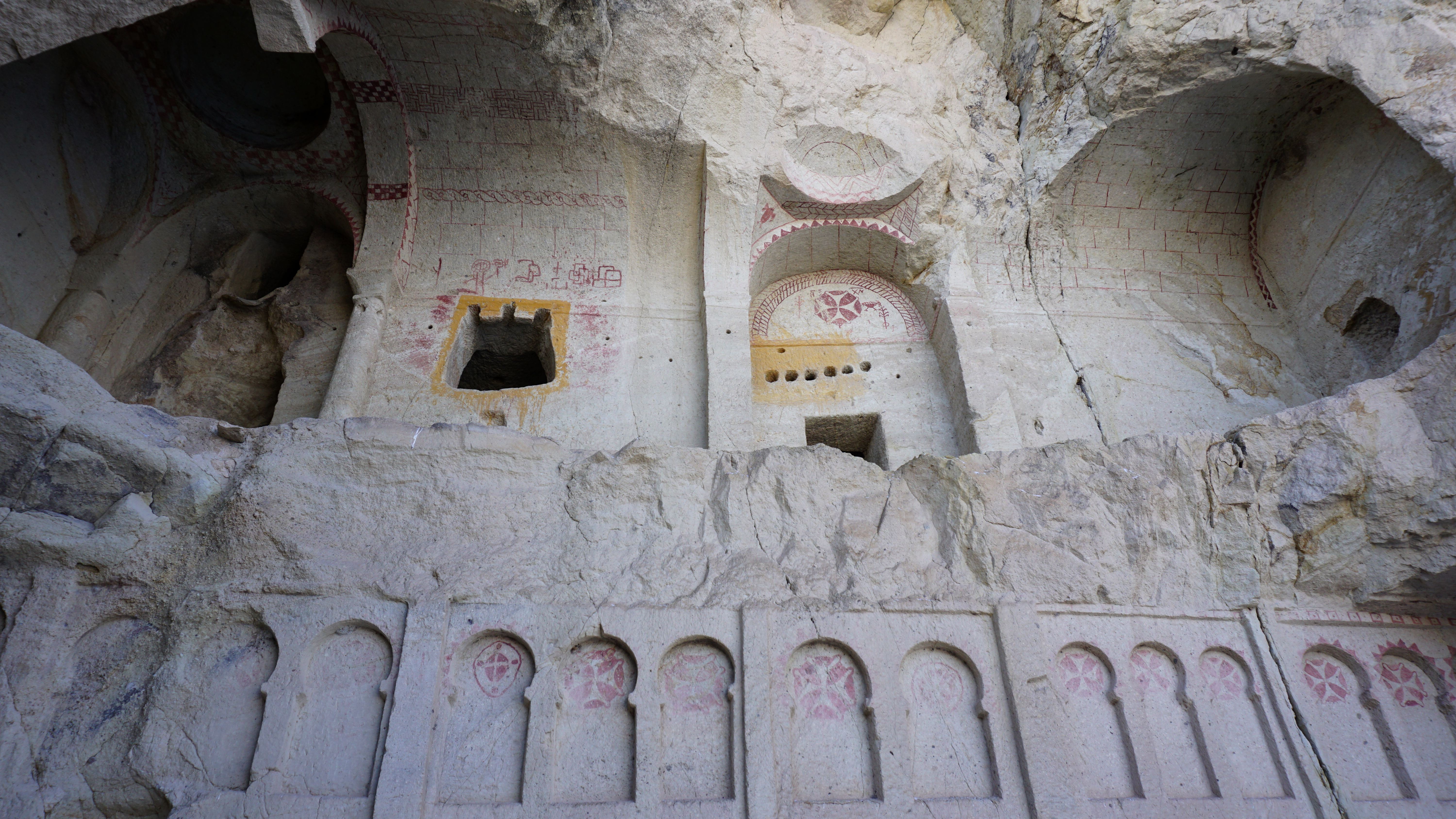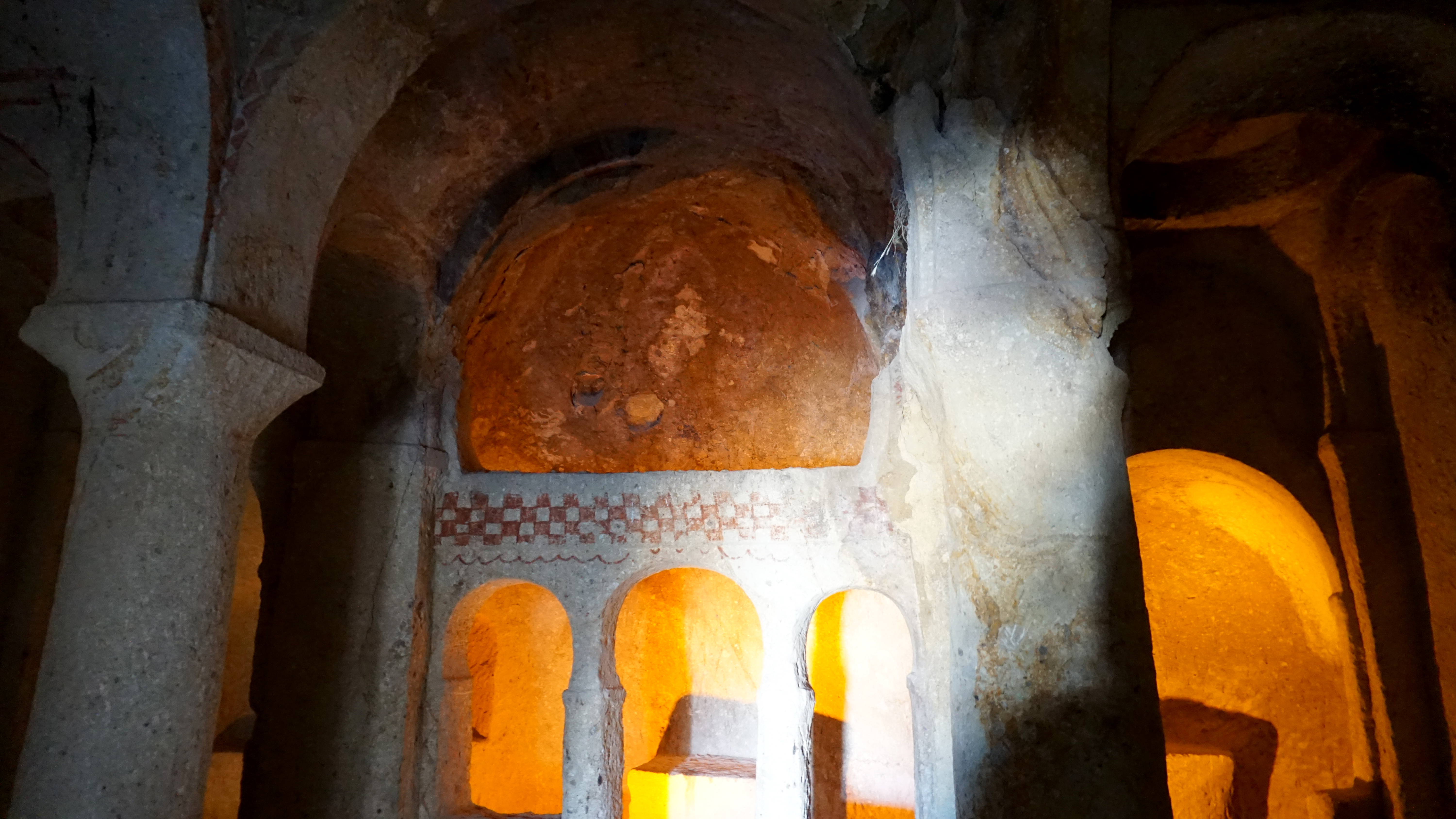 The chapels are, or in some cases were, decorated with spectacular frescoes. Unfortunately, some of the frescoes are damaged. This is mostly to the eyes and faces because of the Islamic tradition of not having art with faces.