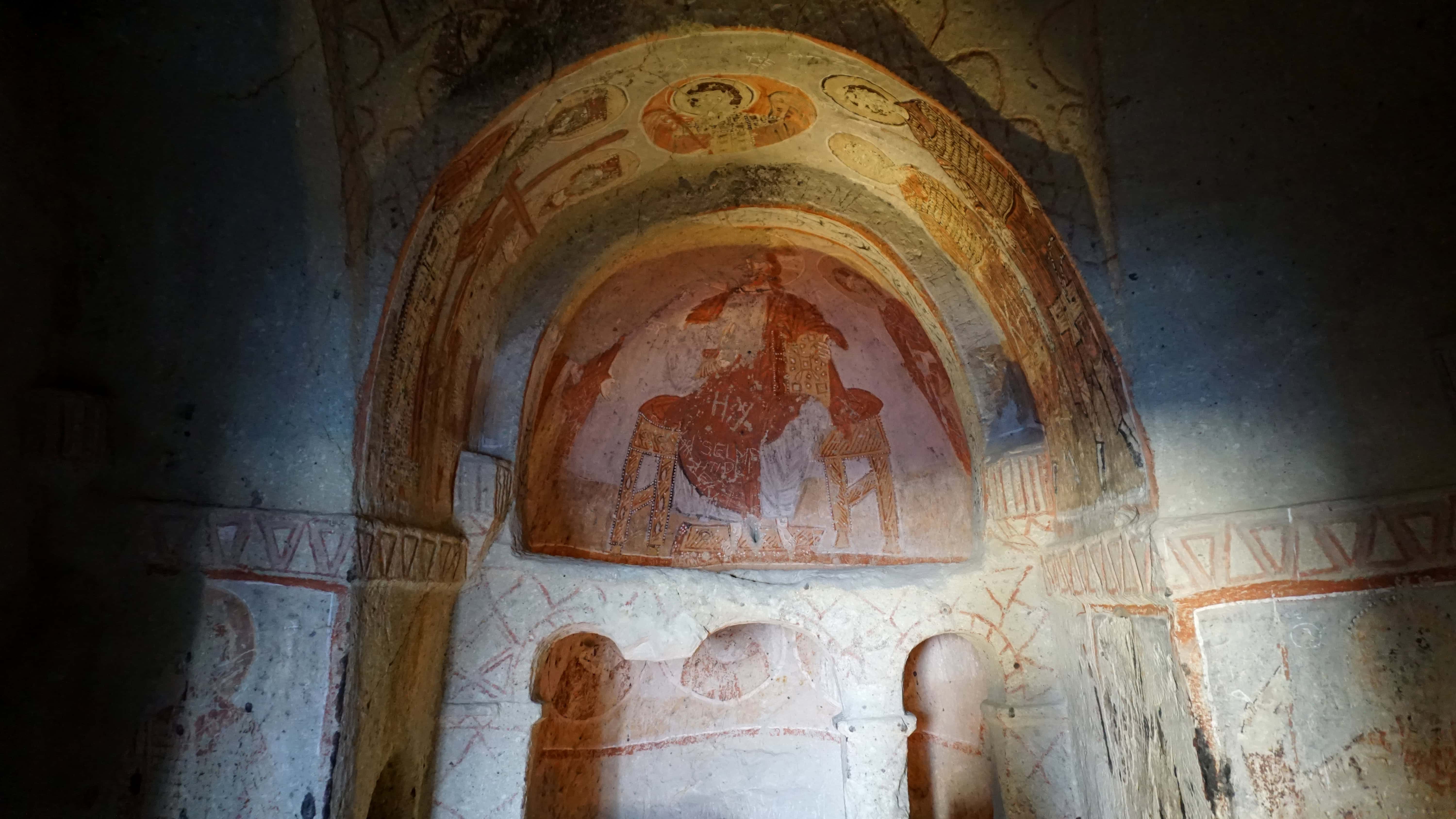 The colors the artists were able to get from natural dies are amazing. They have lasted more than 1,000 years and still strike awe and reverence into the viewer. Many of the paintings represent Christ and the early apostles. However, another favorite theme were the leaders or heroic figures of Turkey’s or Asia-minor’s Christianity. These include St. Basil and St. George known for slaying the dragon. Being made with natural dies and having no exposure to sunlight, photography is not allowed in the most spectacular of the caves, for fear of damage. However, I found a couple through the Wikimedia Commons for your enjoyment.