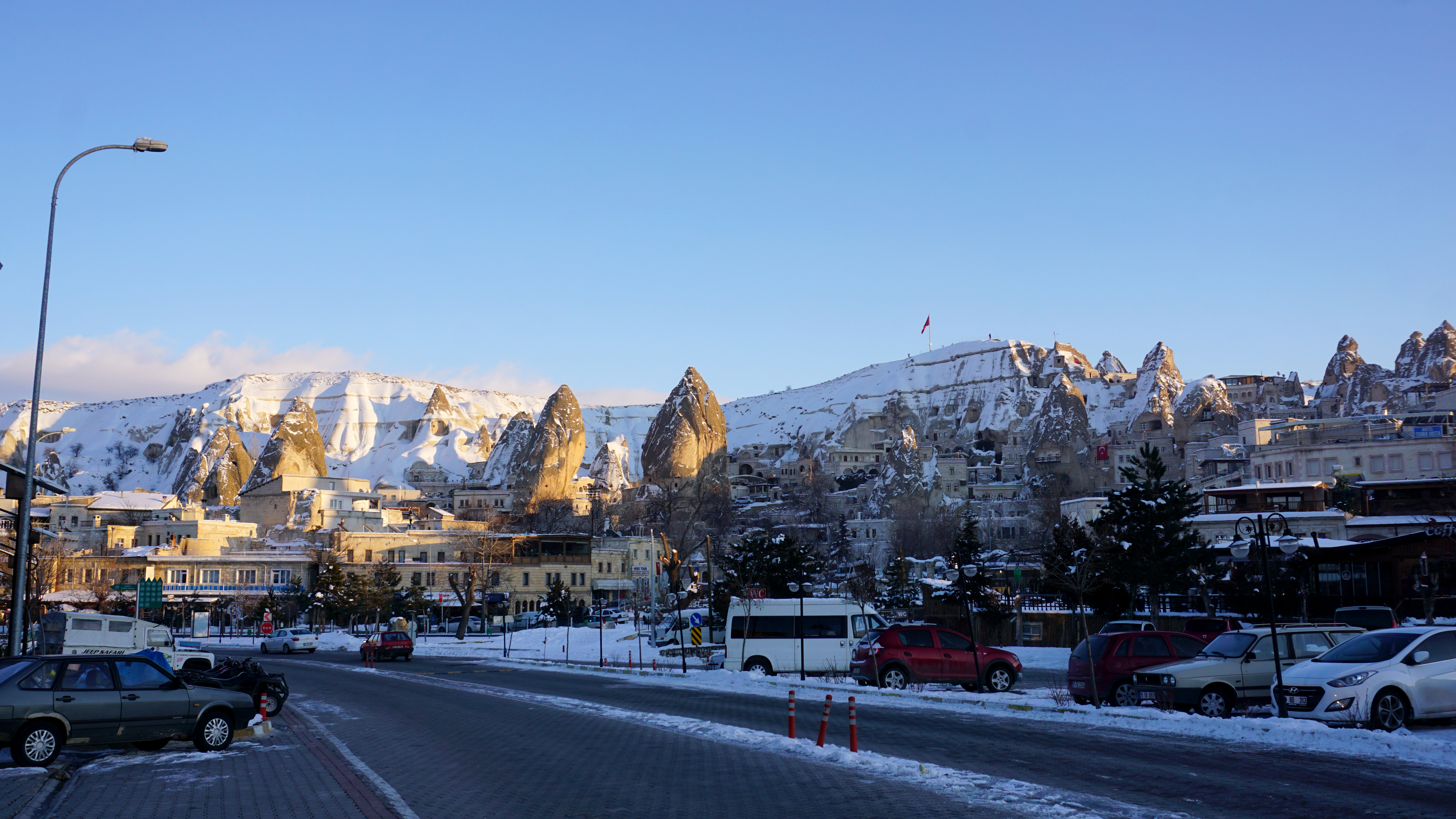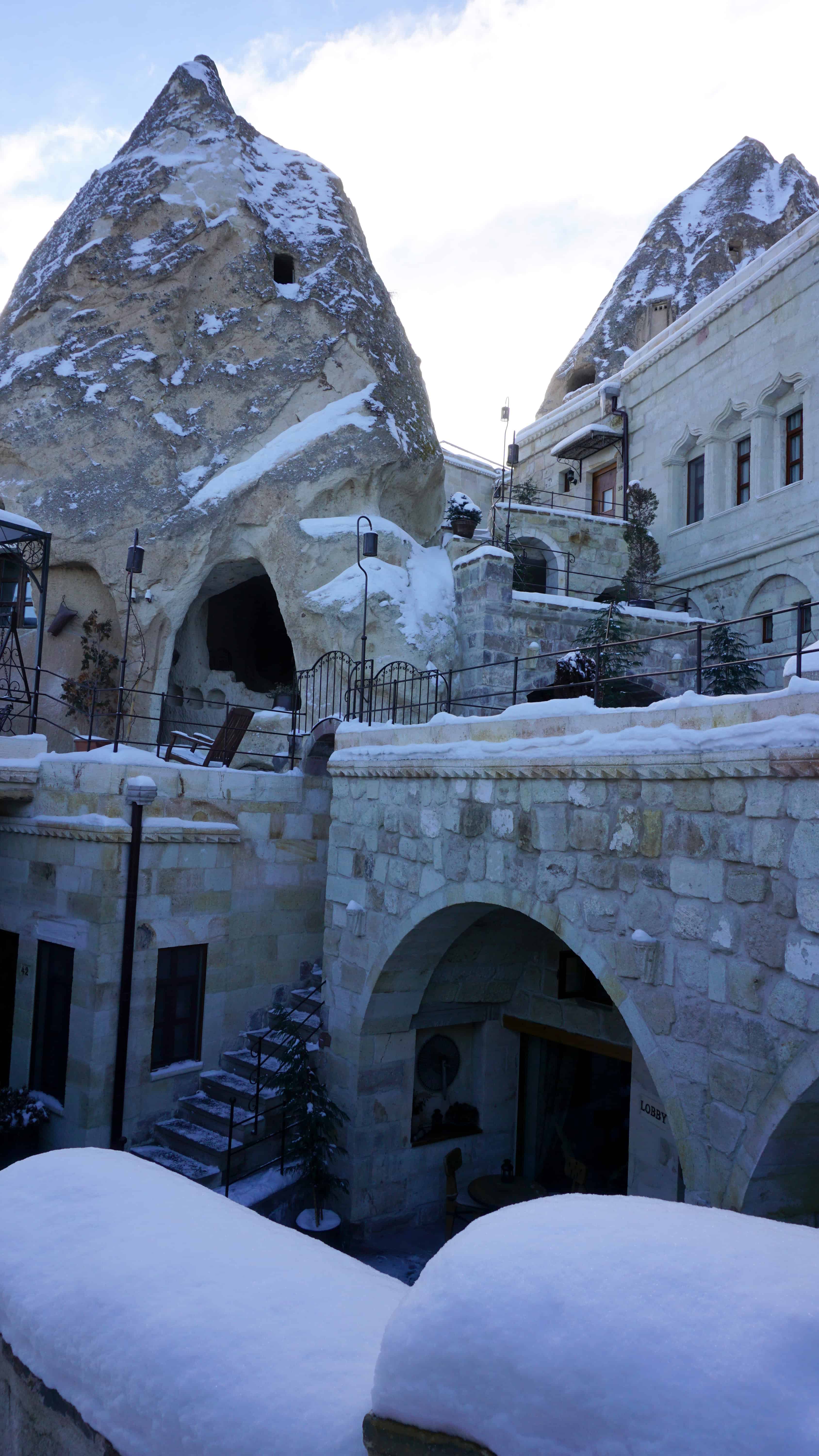 The coach ride was probably my worst experience in Turkey. It was uncomfortable, extremely warm, and confusing. We arrived very early in the morning near our final destination. However, due to a pretty heavy snow, the coach could not safely descend into the valley and to Goreme, our base for the next couple of days. We waited in the depot for a couple of hours as dawn approached. Finally, someone secured a spot on a mini bus down to the village where we were taken to our hotel.
