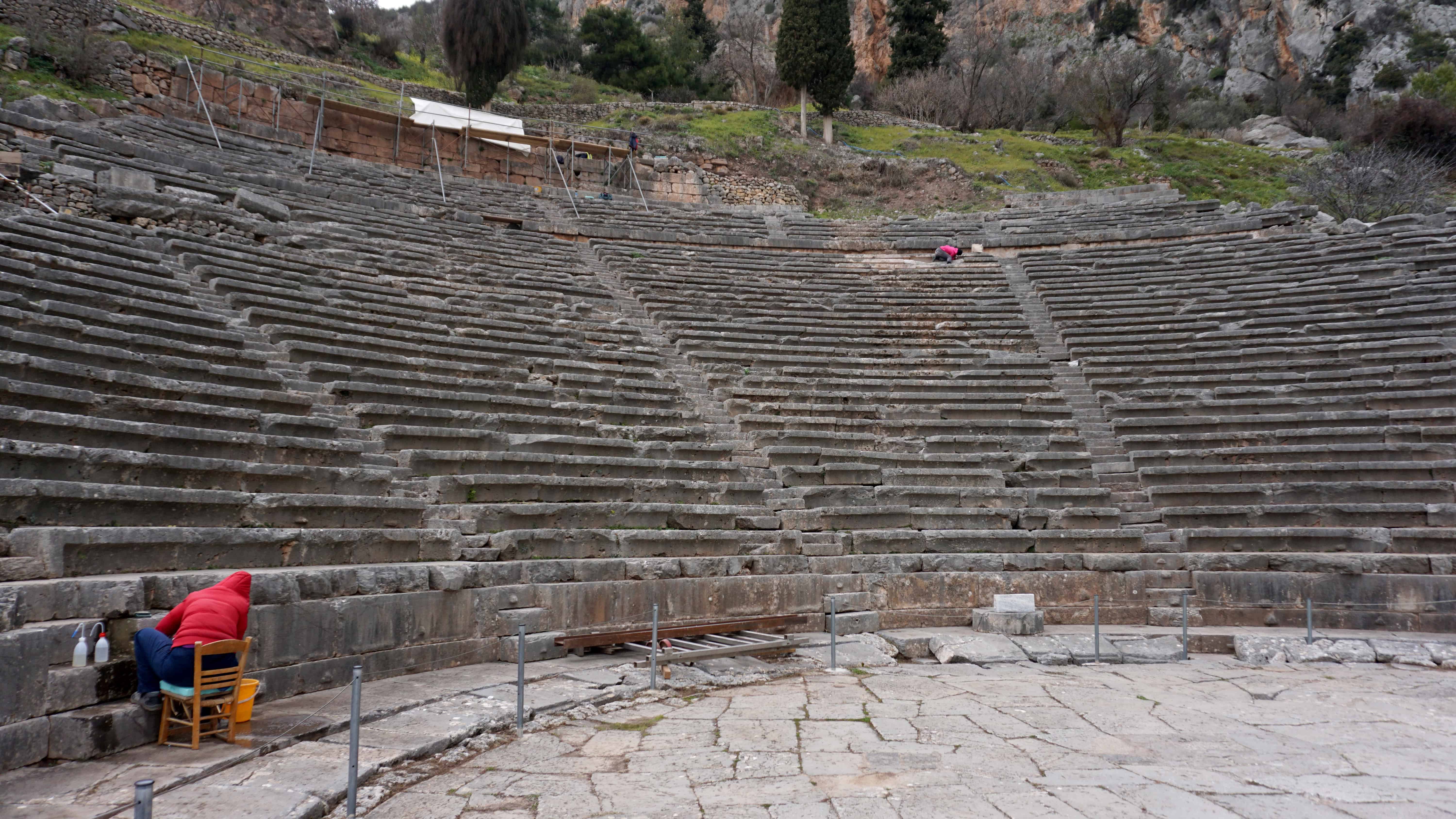 The archaeological site of Delphi, a UNESCO World Heritage site, hugs tight on the side of Mount Parnassus. From its slopes you can see the sea in the distance. The city wasn’t a huge city, but it did have everything that accompanied a Grecian settlement including a theater and gymnasium. There is also an arena or stadium, which was not accessible to visitors when we were there.