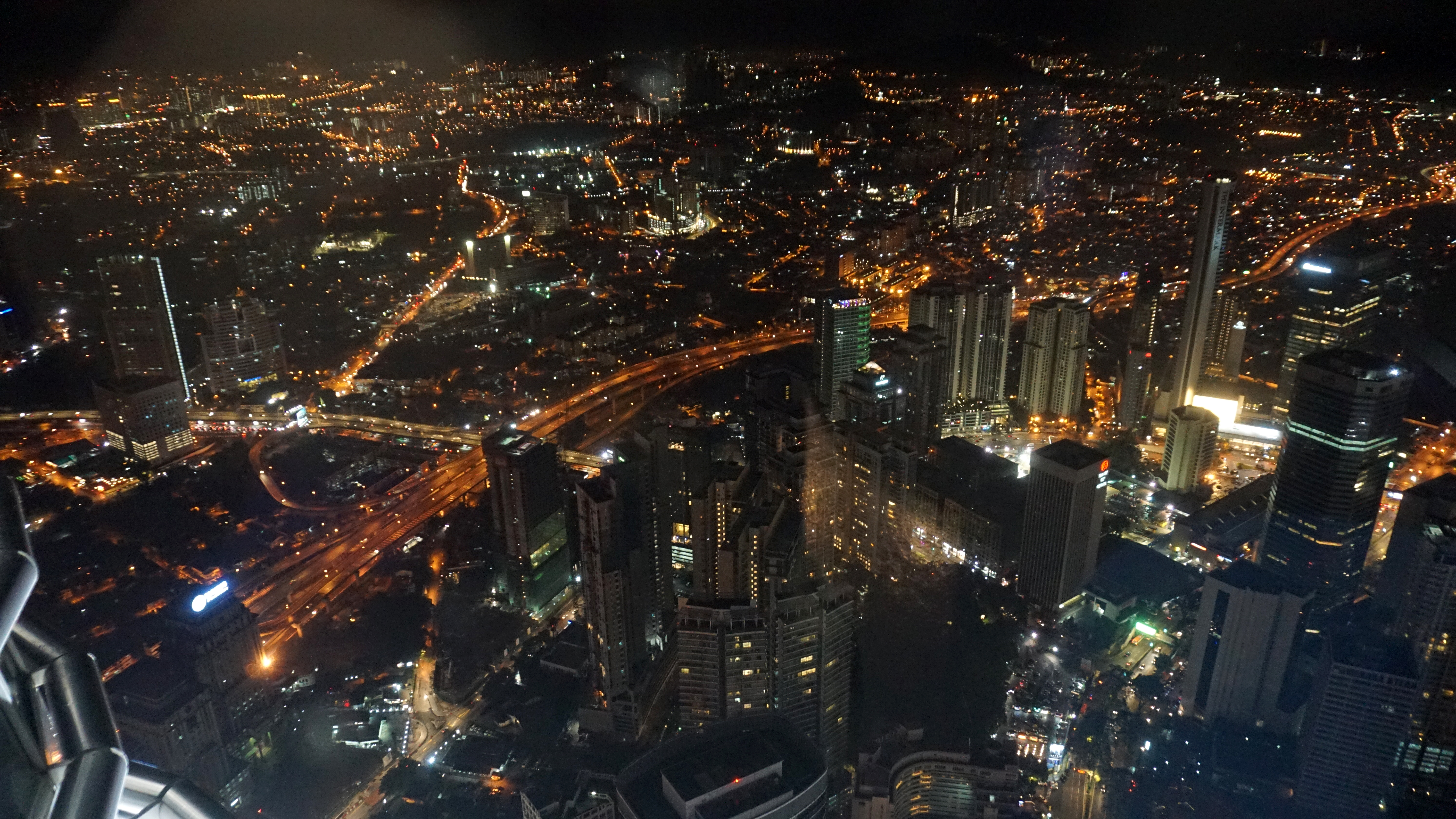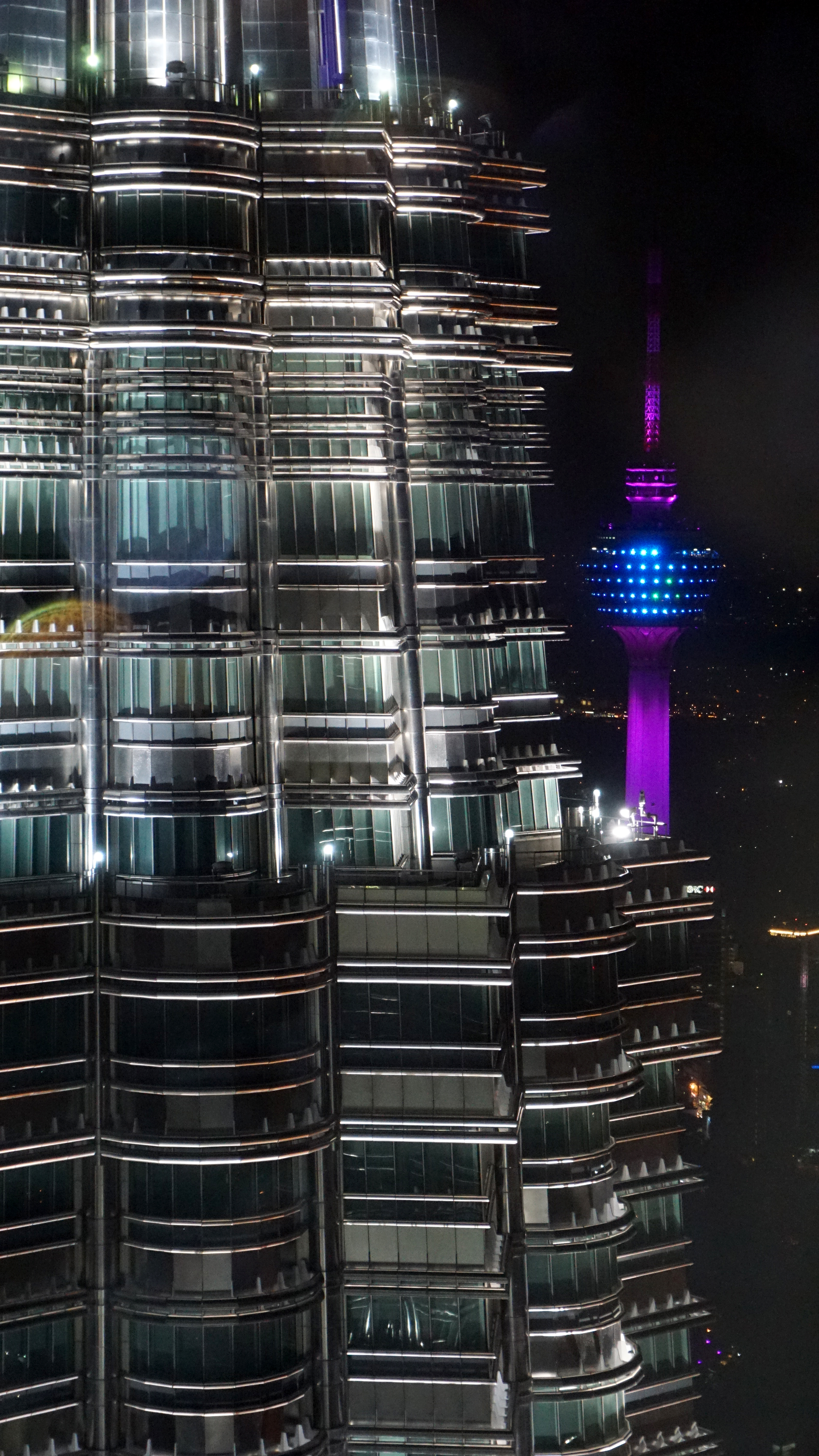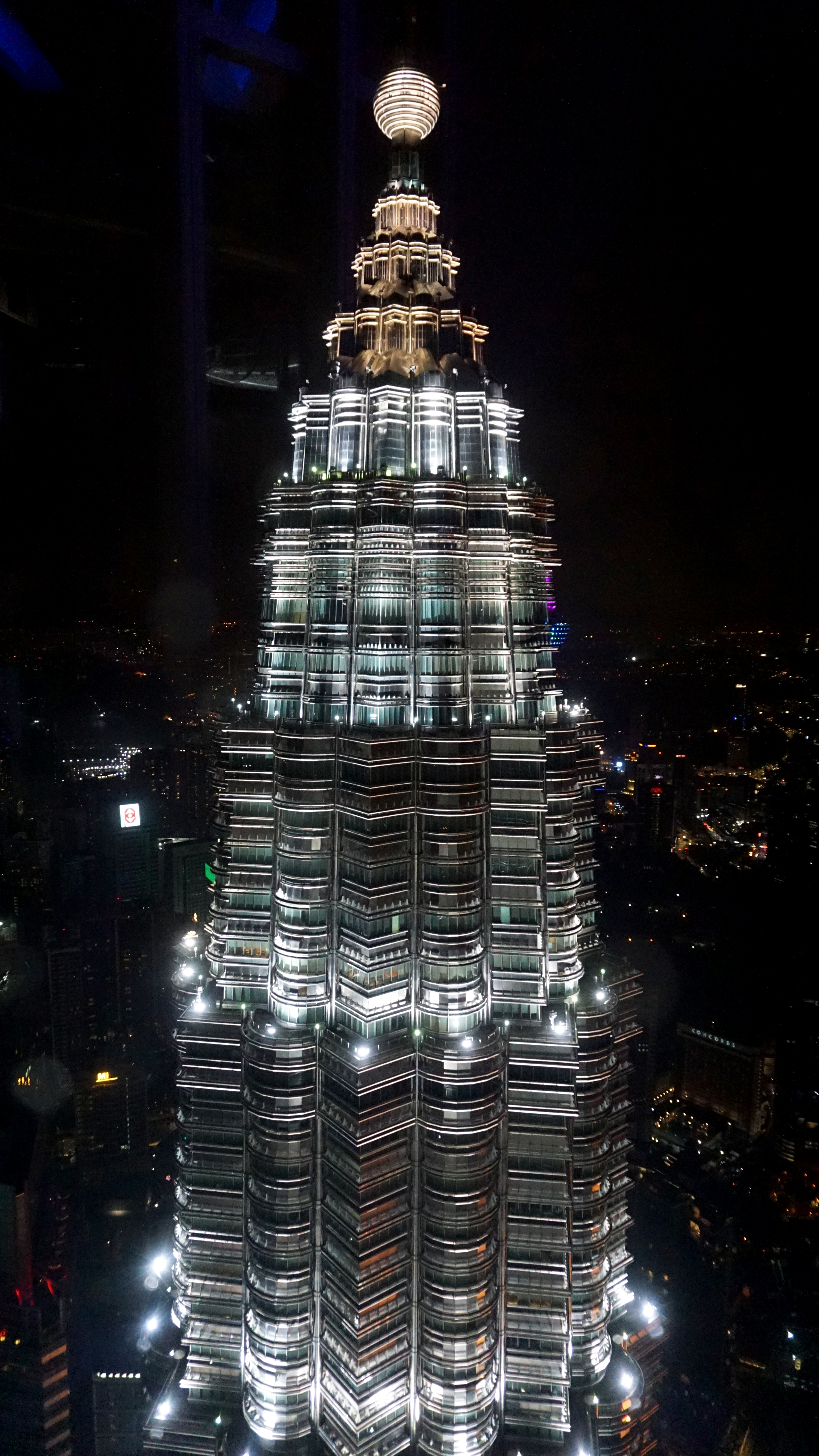 After visiting the bridge for a few minutes, the group is escorted to the observation deck at the top of one of the towers. This observation area boasts grand views in almost all directions. I was at the top at night, so my views were limited to what was lit up. Personally, my favorite view was of the other tower. At this vantage point, you could really see the detail of the buildings including the spire. The KL Tower was also visible in its glowing lantern-like state.