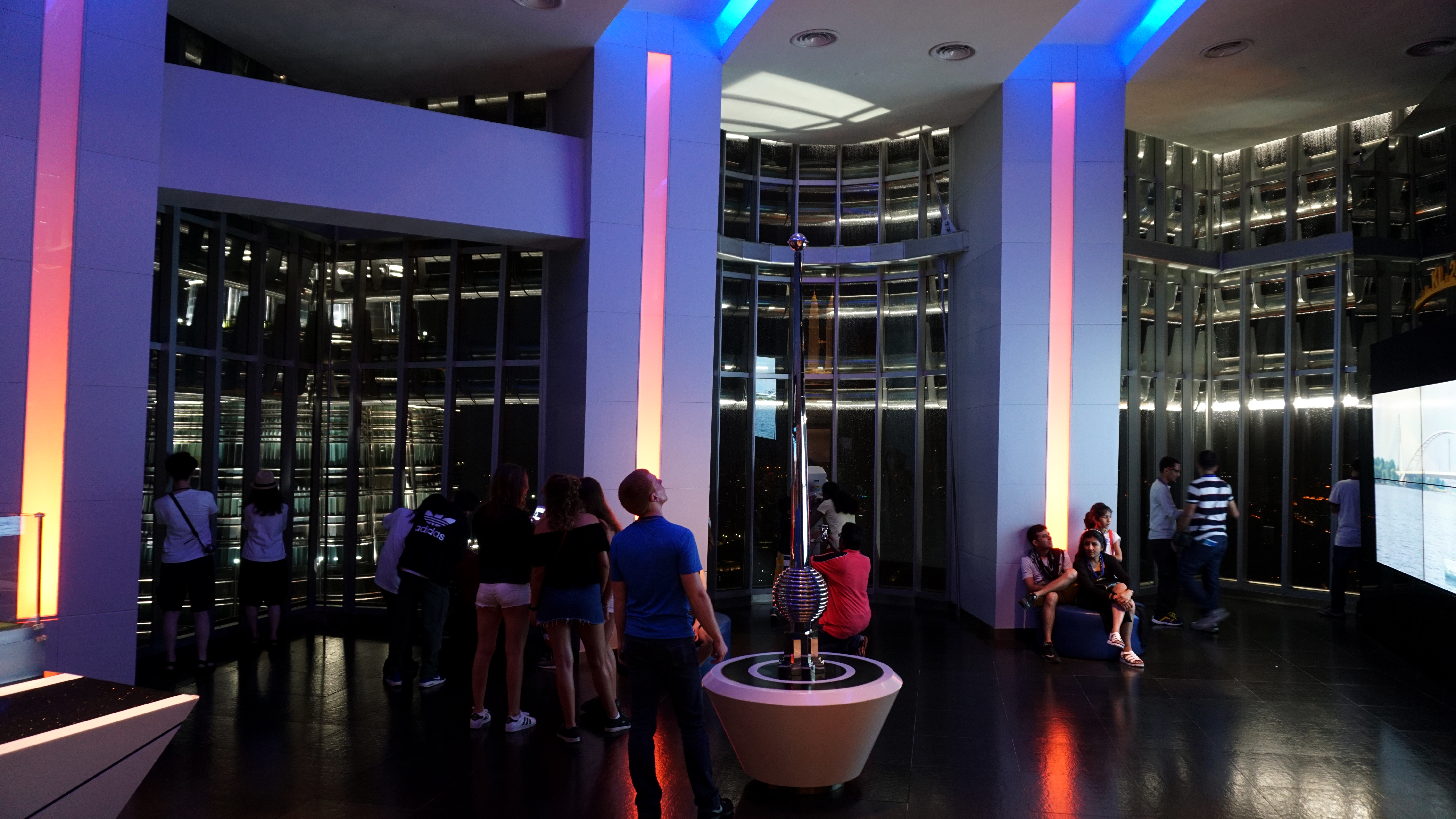 The upper observation deck is open-air and completely exposed. When the lighting started striking and the thunder booming just meters from the tower, we were ushered inside by whistle-blowing personnel. I got to look all around, but didn’t get to go out on the skybox on the side of the twin towers before we were rushed back inside.