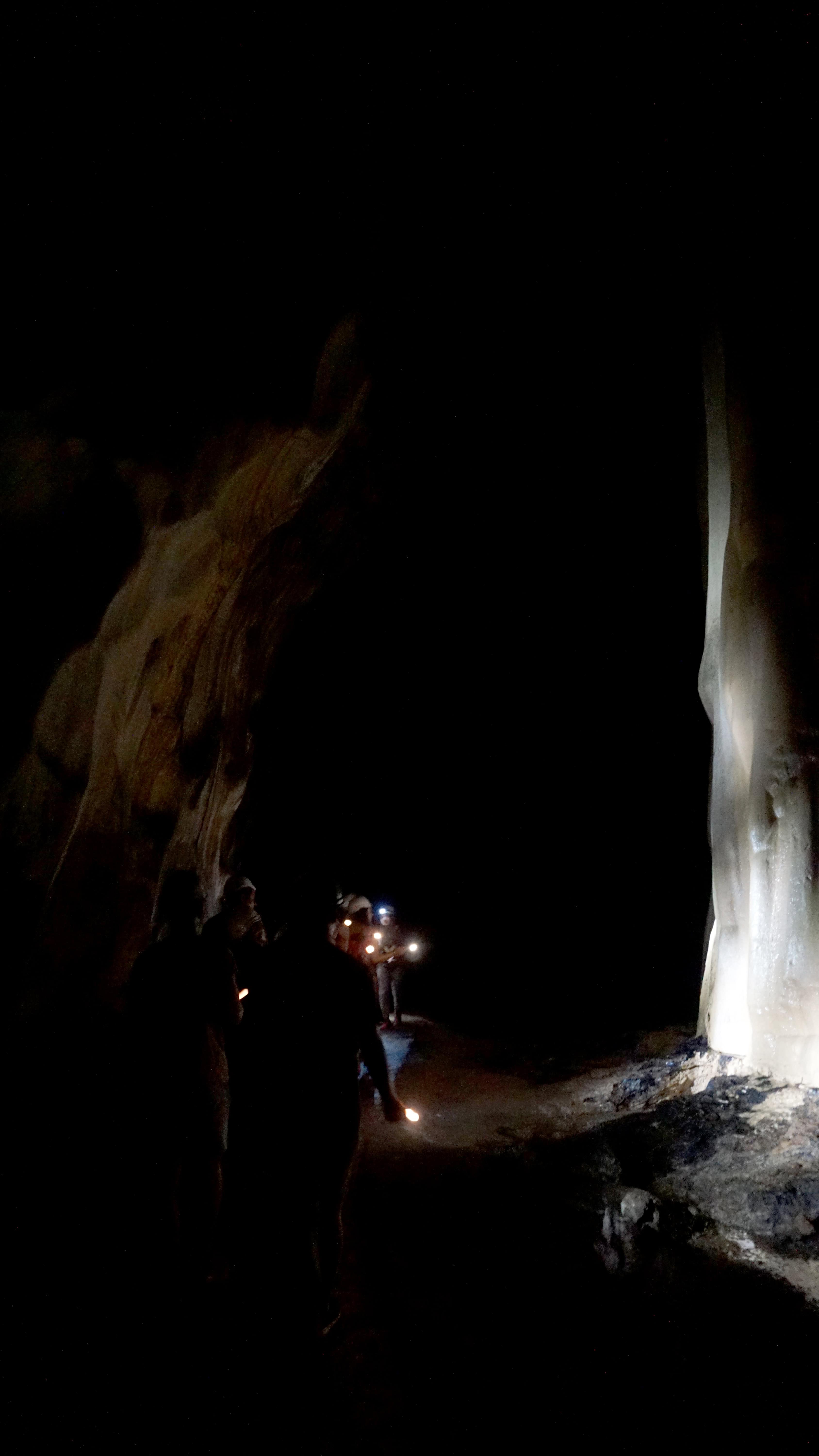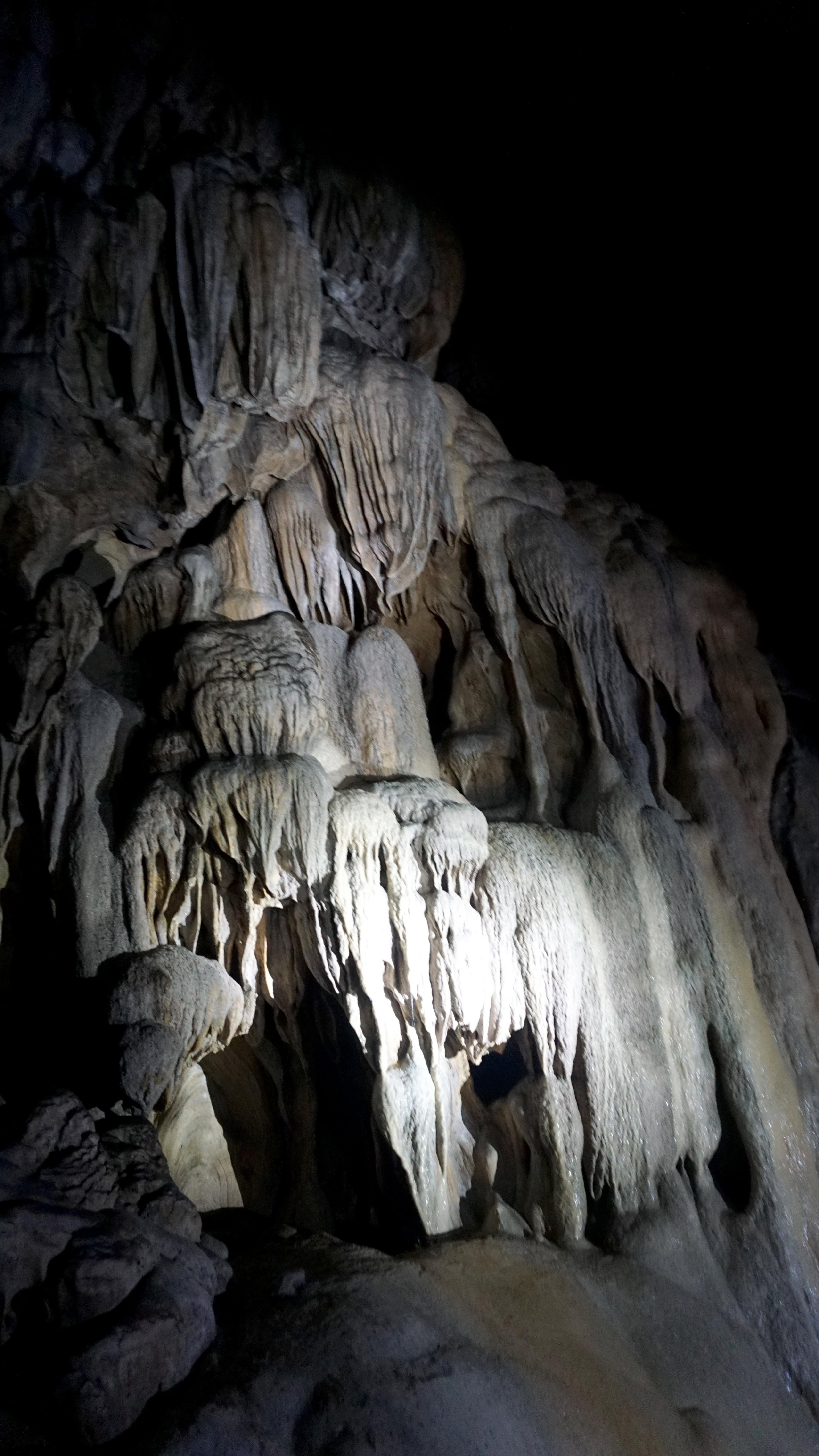 They call it the Dark Cave because it is dark inside. Lights were never installed and guests only enter with a tour led by flashlight. There is a paved walkway that was installed a few decades ago, otherwise the cave is still in a very natural state.