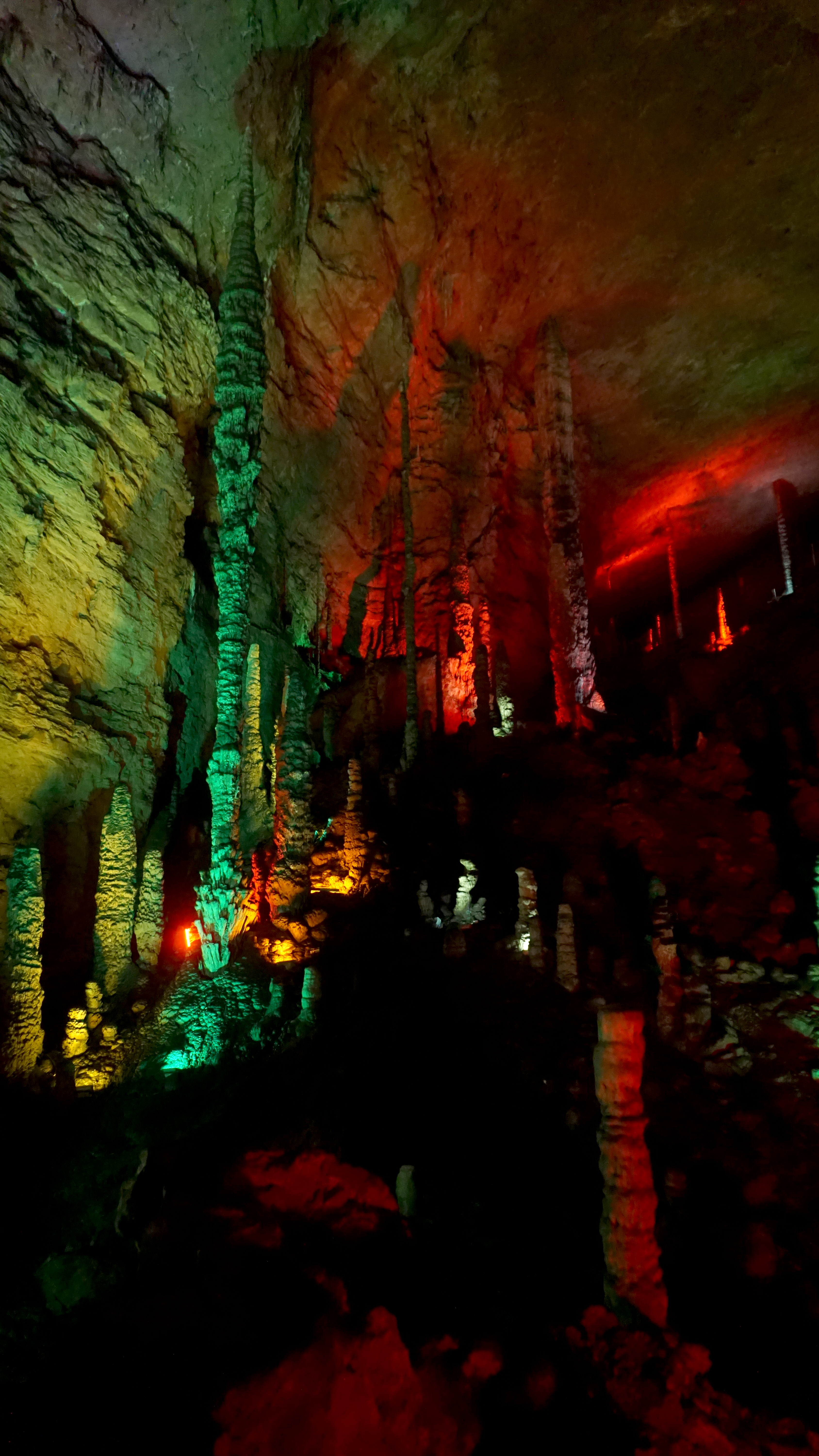 Entering the cave is done in large groups of more than 100 people following a tour guide with hip-mounted speaker. Naturally, we hung back after going in for the group to get ahead. Unfortunately, another group entered very quickly on our tails and we were sandwiched between loud hordes.