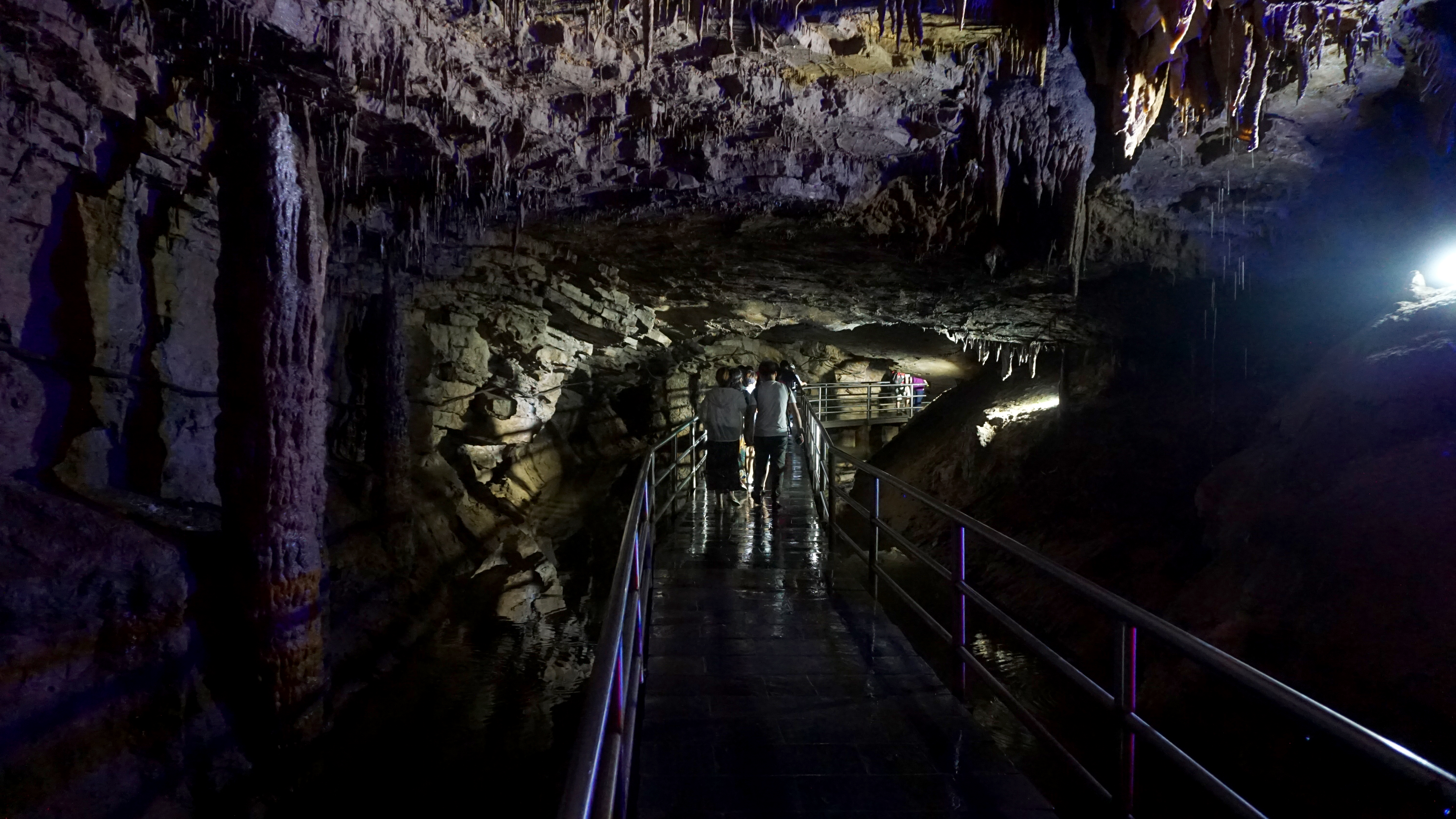This cave could be spectacular. Unfortunately, man has gotten his greedy hands on it and has ruined it. I’m not just talking about the people who blatantly disregard the signs saying don’t touch the formations (this damages the formations by putting oils on the stone and stopping or diverting the flow of water that creates them) or the people who sneak a smoke inside. I’m also talking about the diversion of water in several locations and the building of infrastructure in the middle of massive formations.