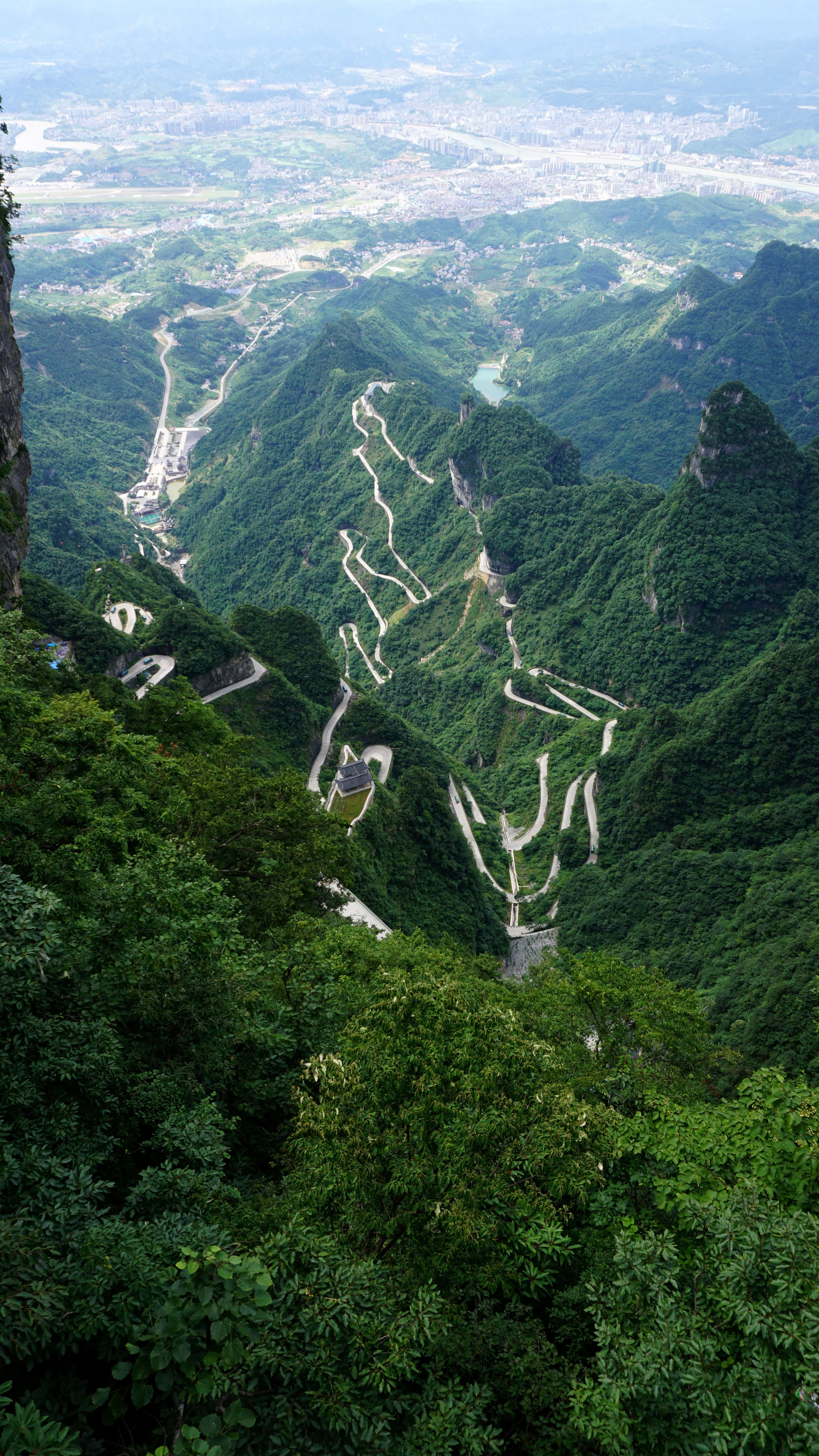 The final part of our Tianmen Mountain experience was the shuttle ride down. It first goes on a section of road called 99 Bends with 99 curves, most of them hairpin in design. You’ve probably seen the road before in a car commercial or in footage of a road rally. The 20-minute drive is beautiful and can be a little unsettling. If you get carsick, do not try this road. It also offers some fantastic views back up to Tianmen. After the 99 bends, you unload that shuttle bus and hop in another to head back to town.