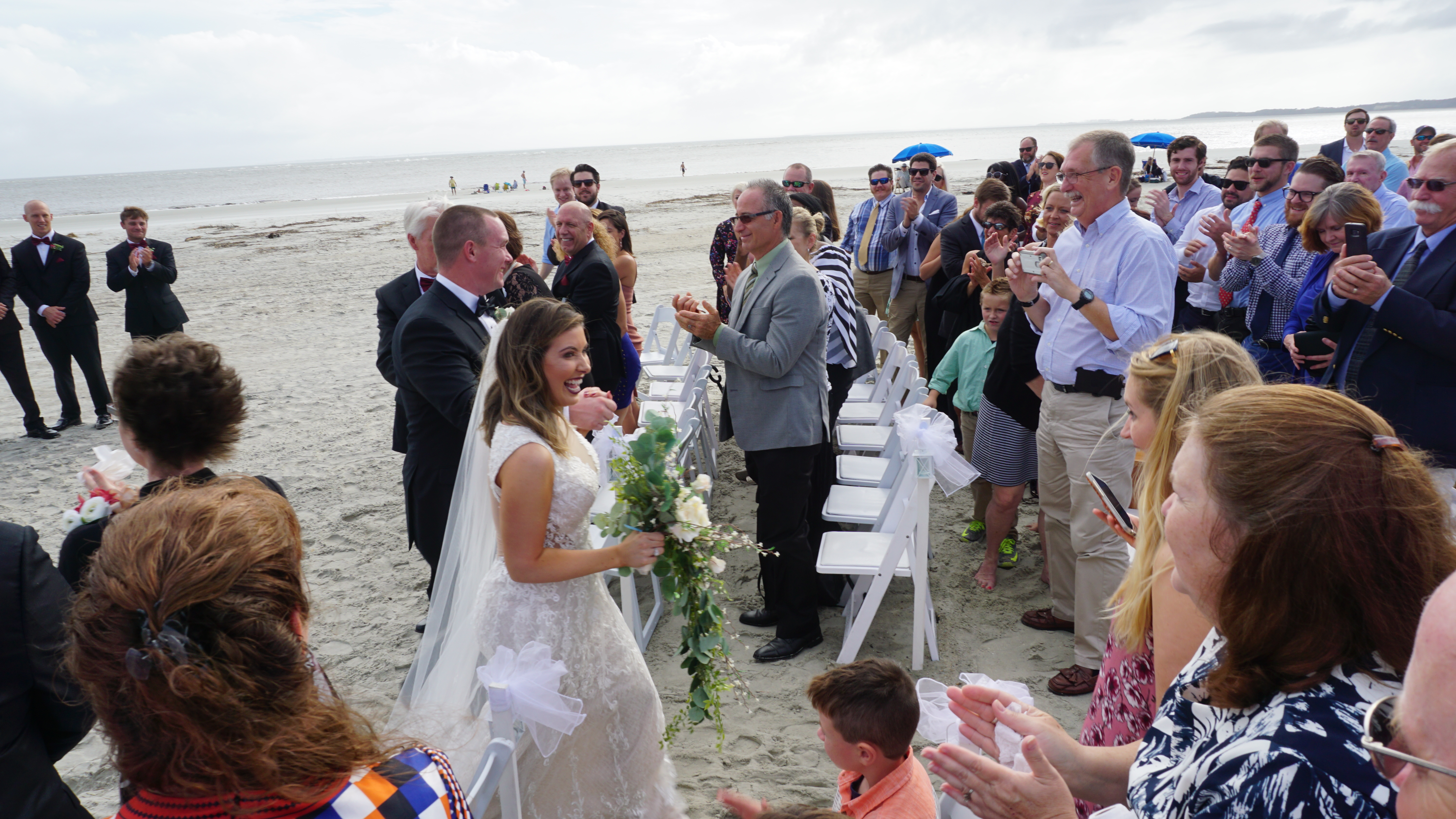 The wedding was held on a beach. All morning there were small showers roaming through the area, including at the time to begin. However, I think due to lots of prayers, the showers moved on just at this moment and the sun peeked through the clouds. It was short but lovely ceremony followed by lots of fun at a nearby pavilion for the reception. Congratulations to Meilian and Preston!