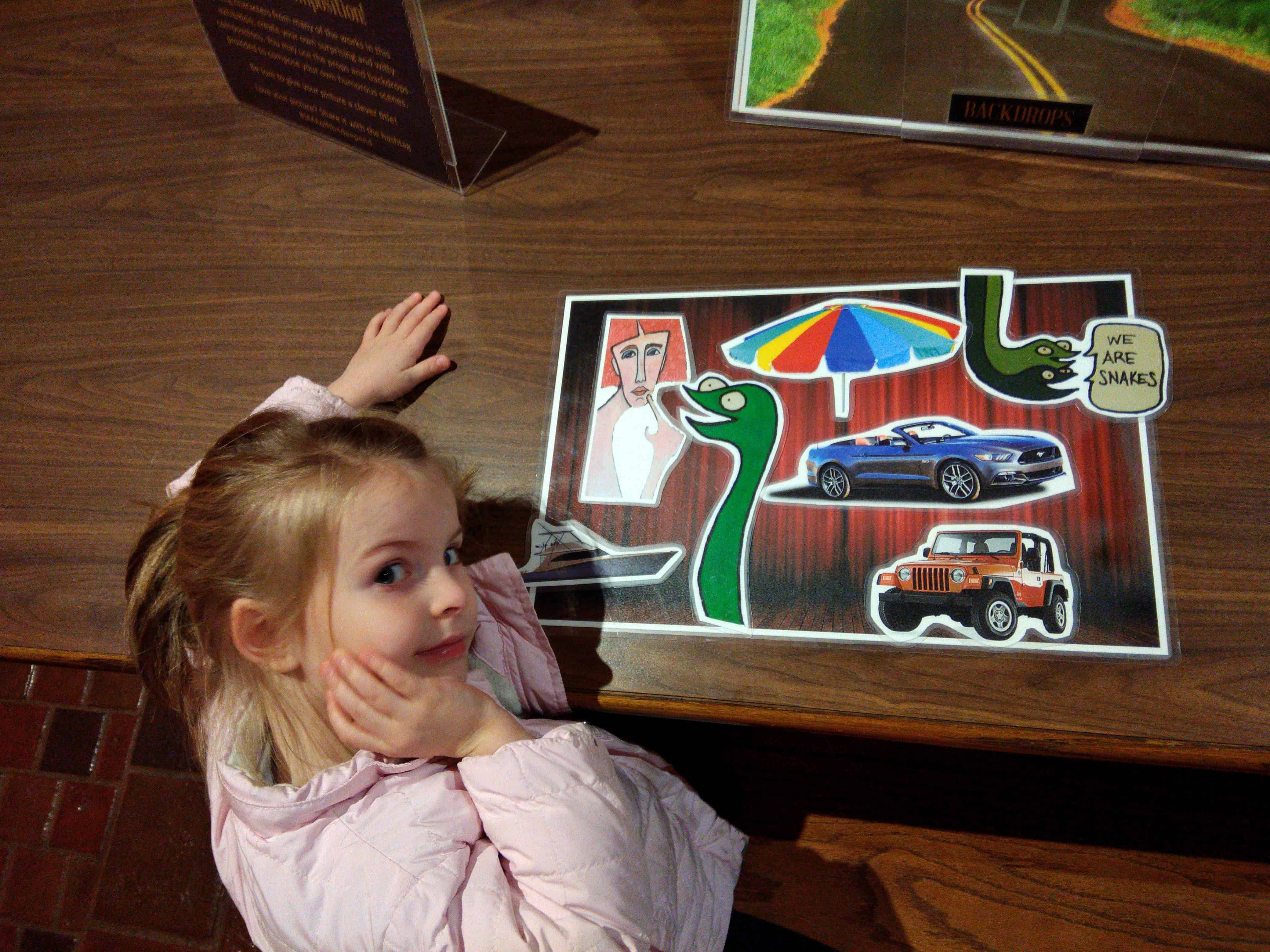 I took my niece to the Springville Museum of Art with me. She is young, so wasn’t too interested in slowly perusing the galleries. We still had fun. I got to quickly look through the main collection and at two temporary exhibitions. One of these was all about whimsy in art. We took a few minutes to create our own masterpieces.