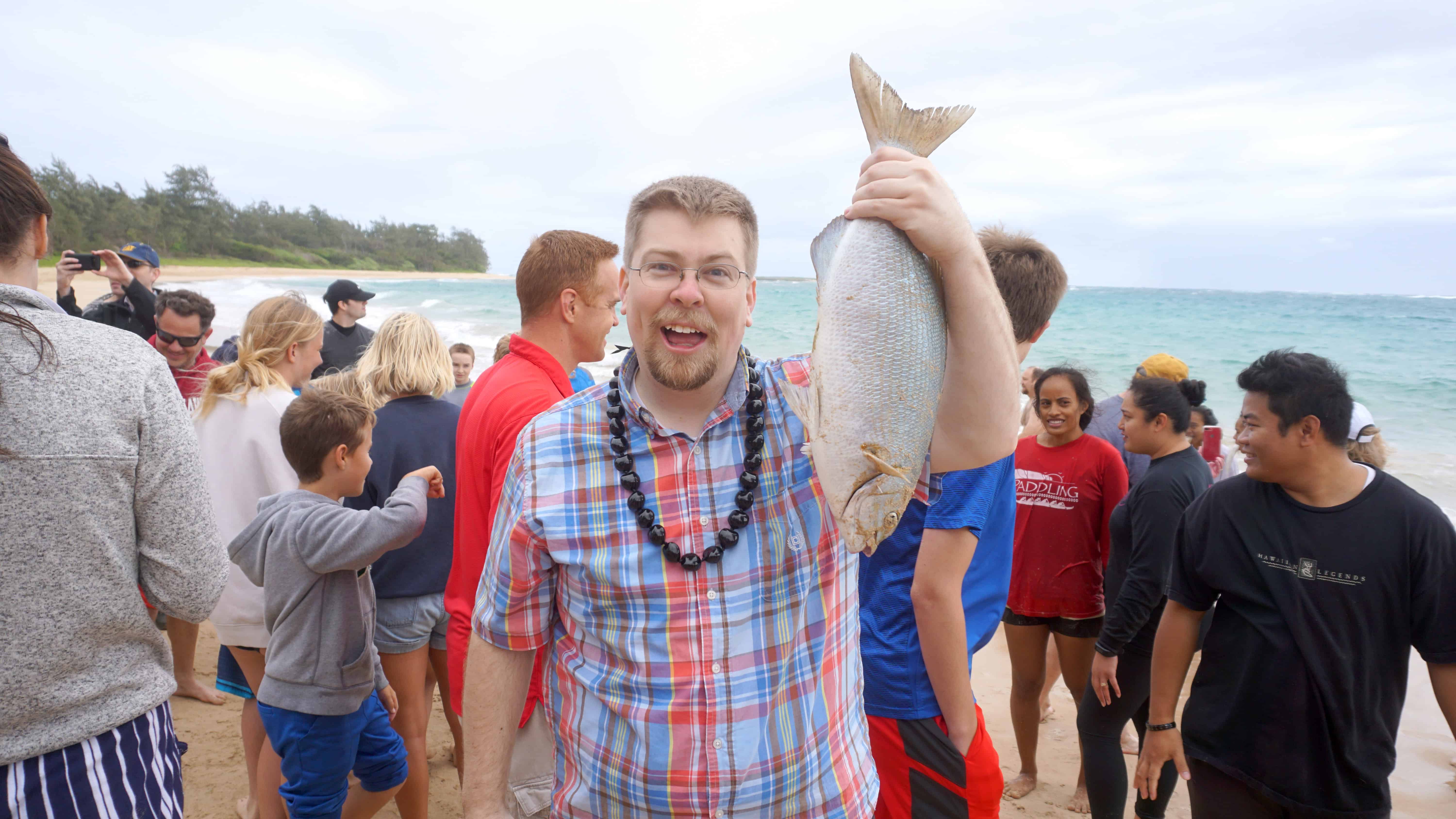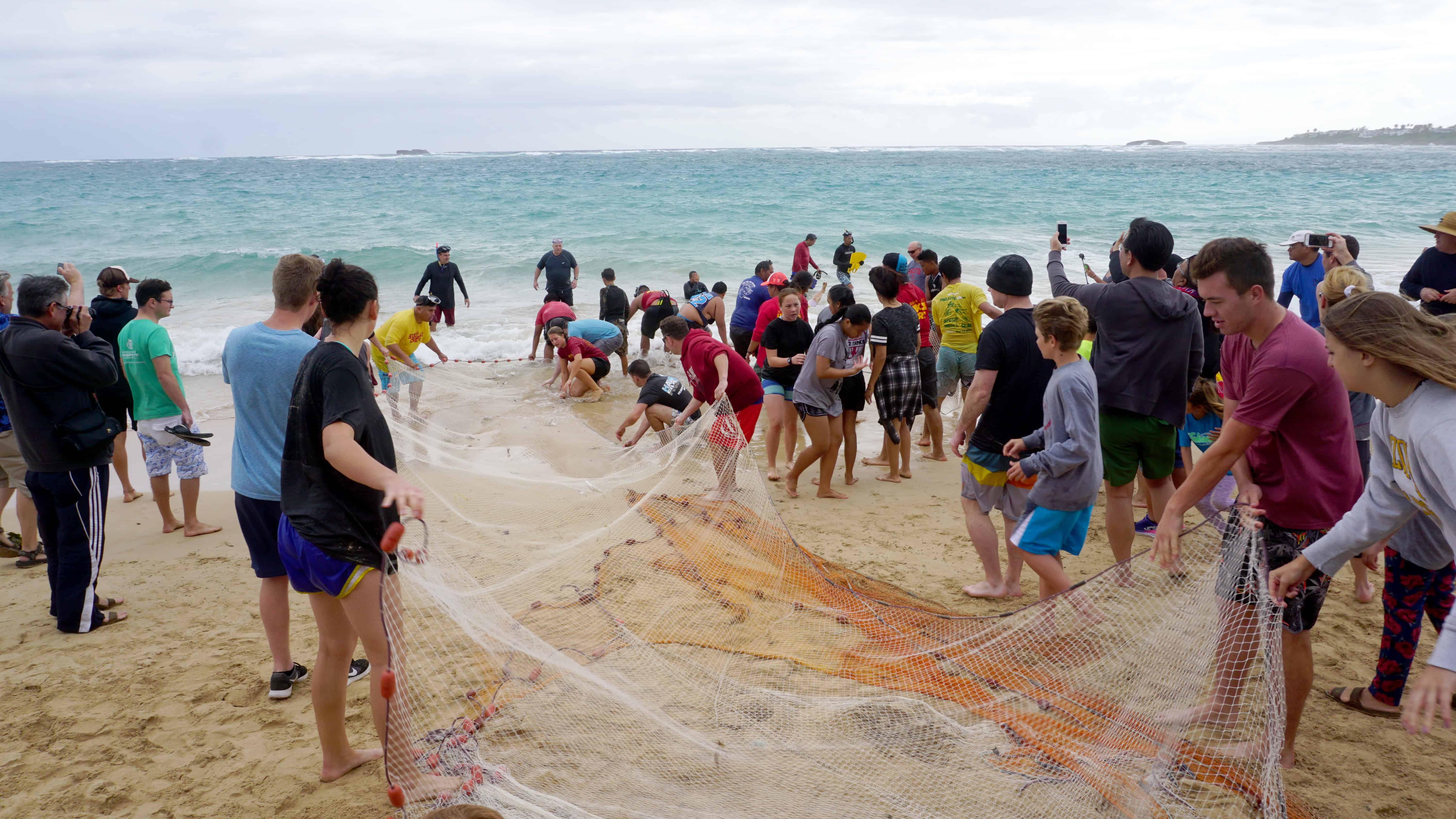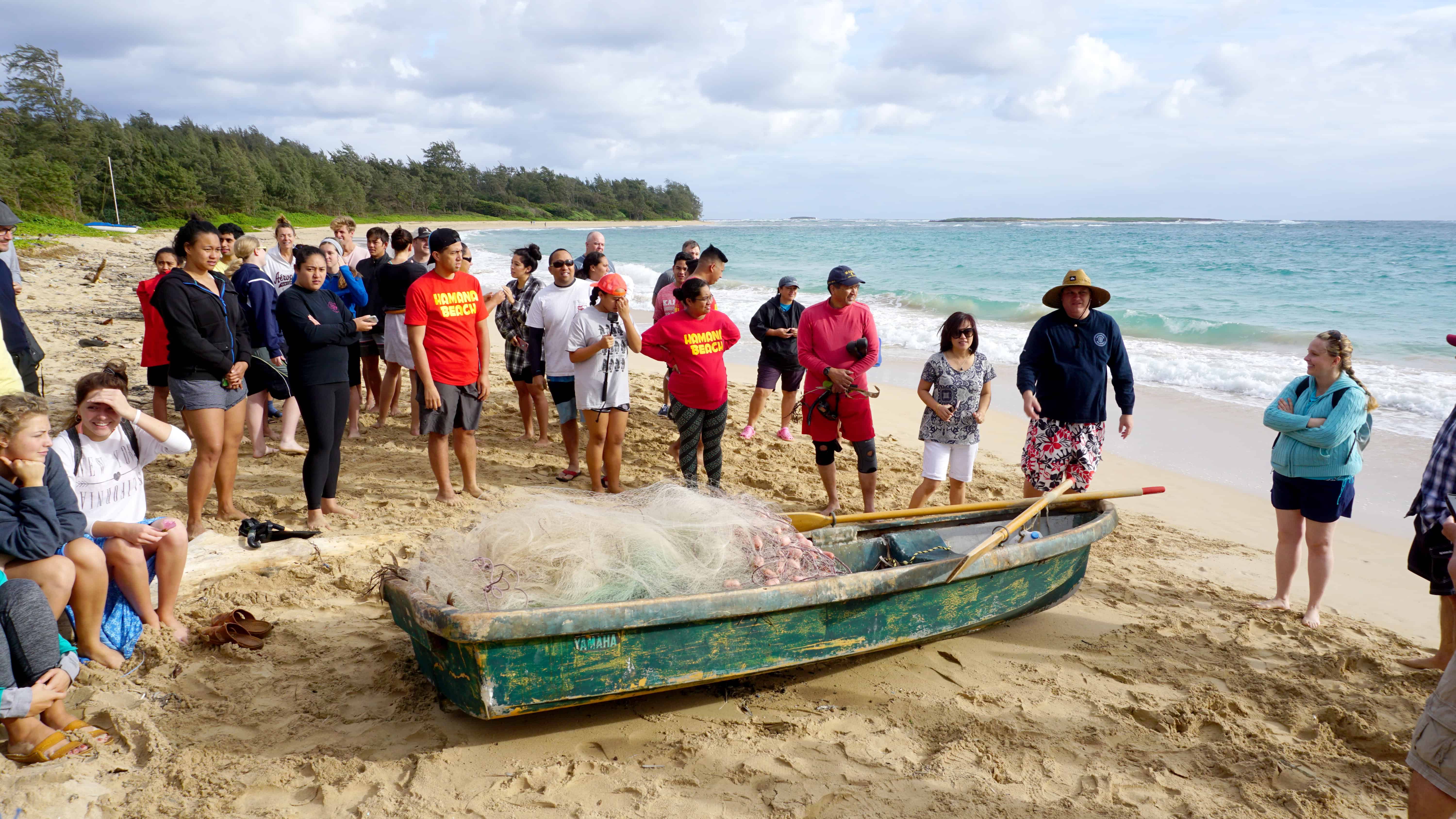 The concluding event of the conference was a morning at Hukilau Beach. You may have heard a song about it. A hukilau is when fishermen need help pulling in their large net from the water. It is too big and heavy for just a few to do the work, so historically, the fishermen would run through town shouting “Hukilau!” to bring everyone from the community to pull together, which is what the word means. They would work as a team to accomplish a big task for one small part of their community. The fishermen took most of the fish, but if you helped with hukilau then you could take some fish home, too.