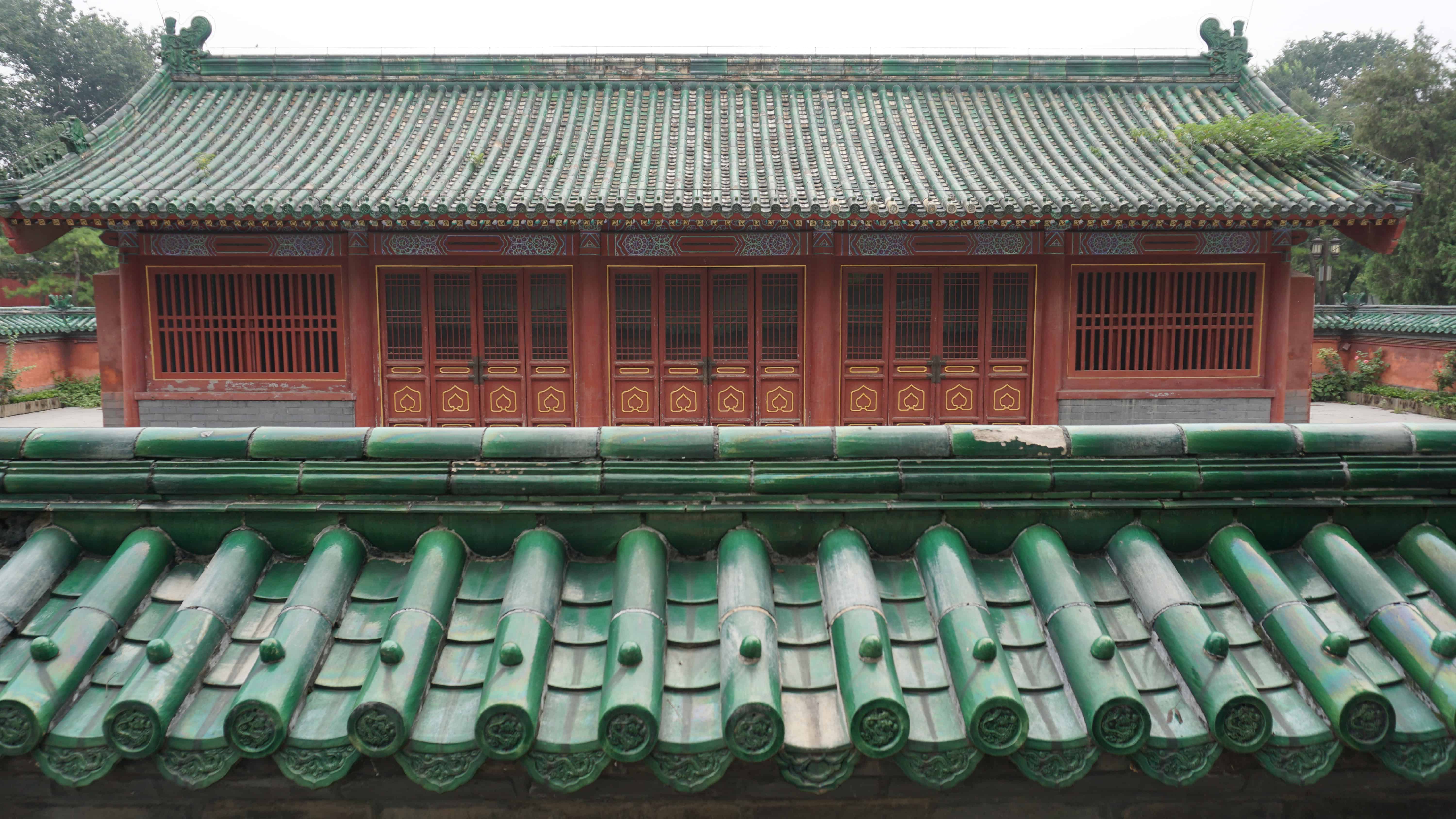Something else I noticed as I visited a couple of these imperial altars was the difference of architecture in a few of the buildings, most likely signifying a difference in age of the building. During the dynasties that ruled from Beijing, imperial properties were rebuilt and expanded over and over again. So, some of the buildings are not from the original construction period. They were added much later. Thus, there is a difference in architecture. This got me very excited to see a more ancient style of building technique in some of the temple buildings. I noticed it at the imperial stables of Ditan and the fasting and preparation buildings of Ritan.