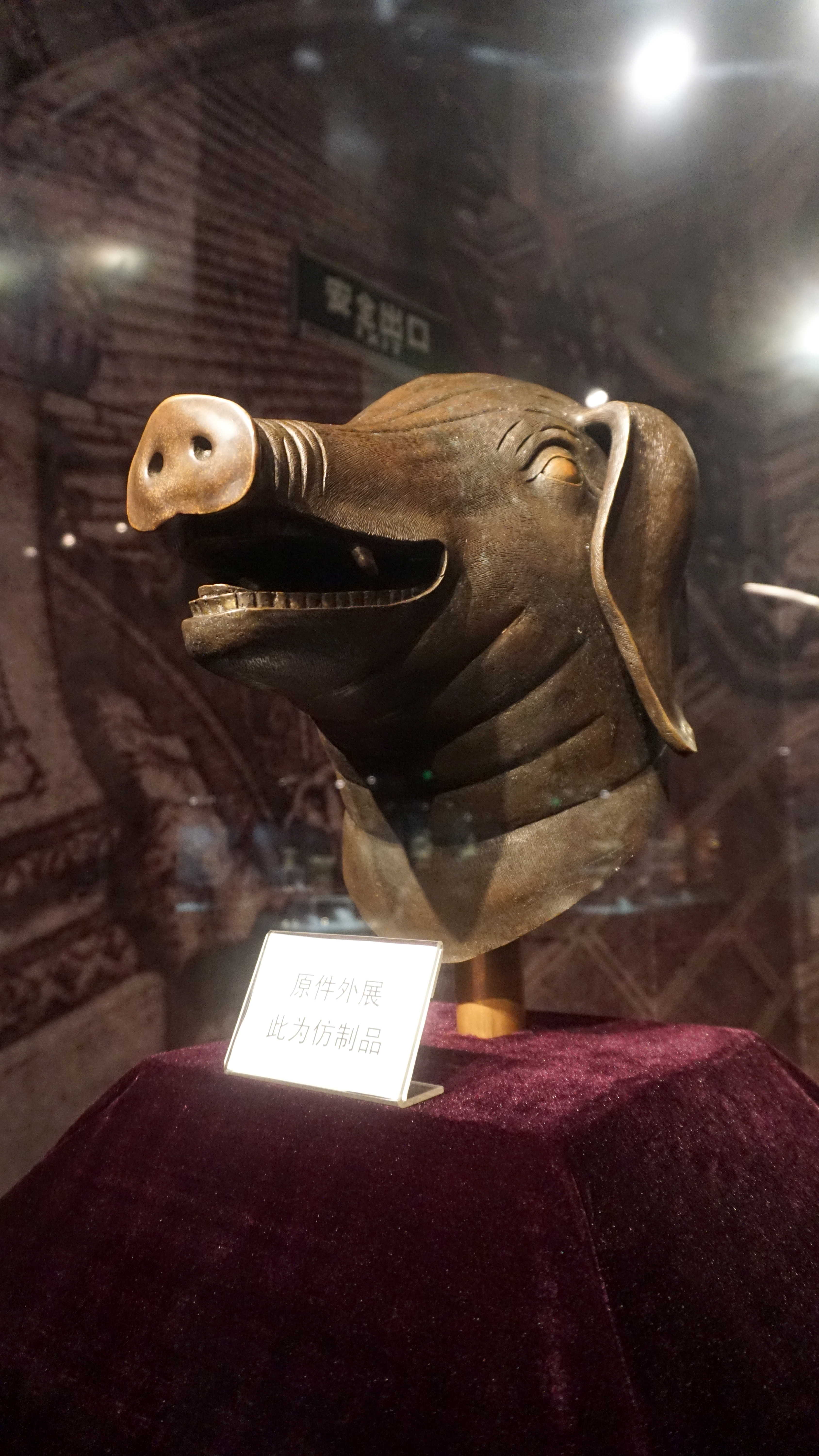 During the foreigner rampage, the palace was looted and treasures were sent back to Europe. These included bronze heads from a clock fountain. The sculptures were the heads of each animal from the Chinese zodiac. Throughout the day, each head would spit water for two-hour increments, thus acting as a clock.
