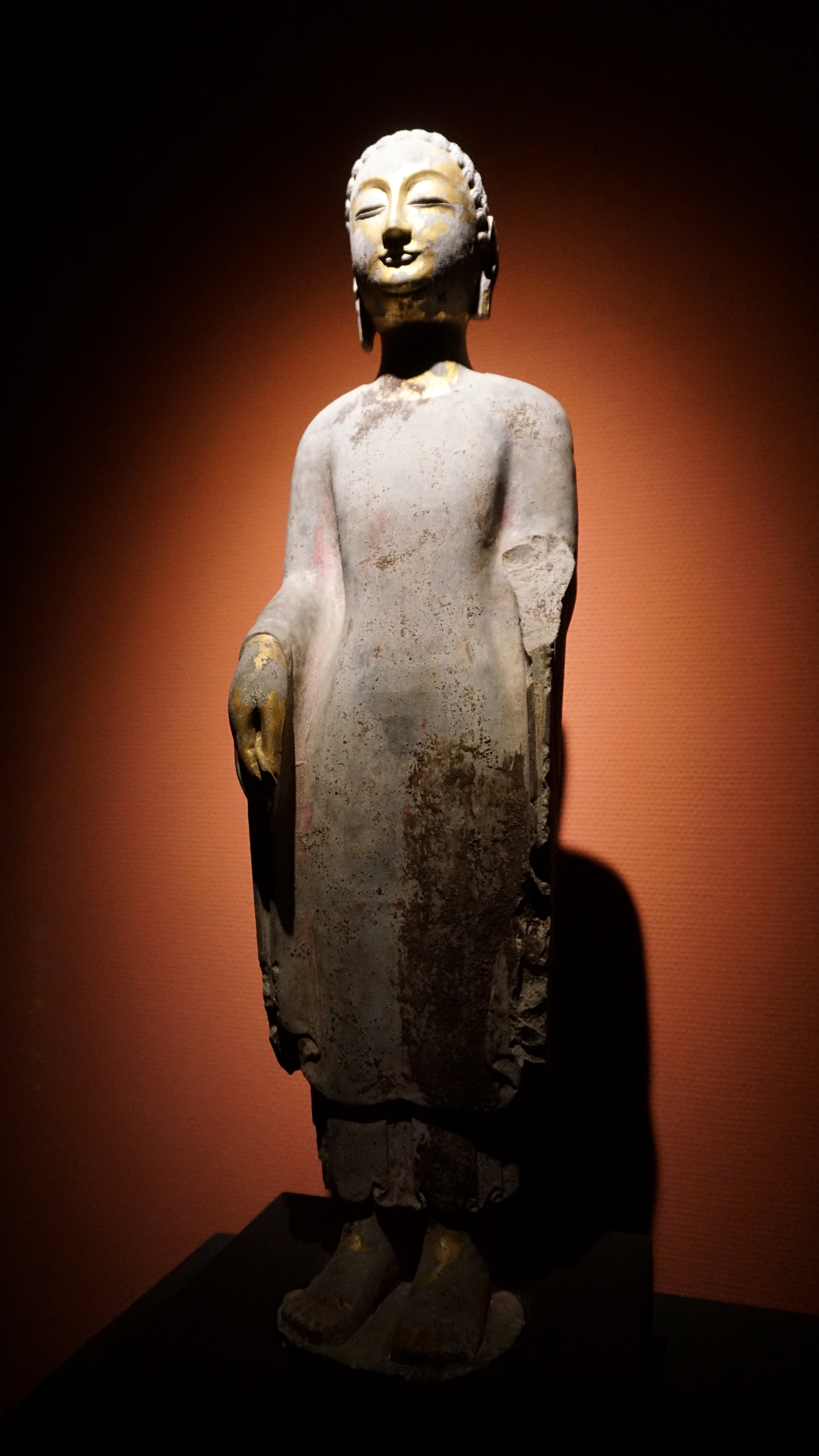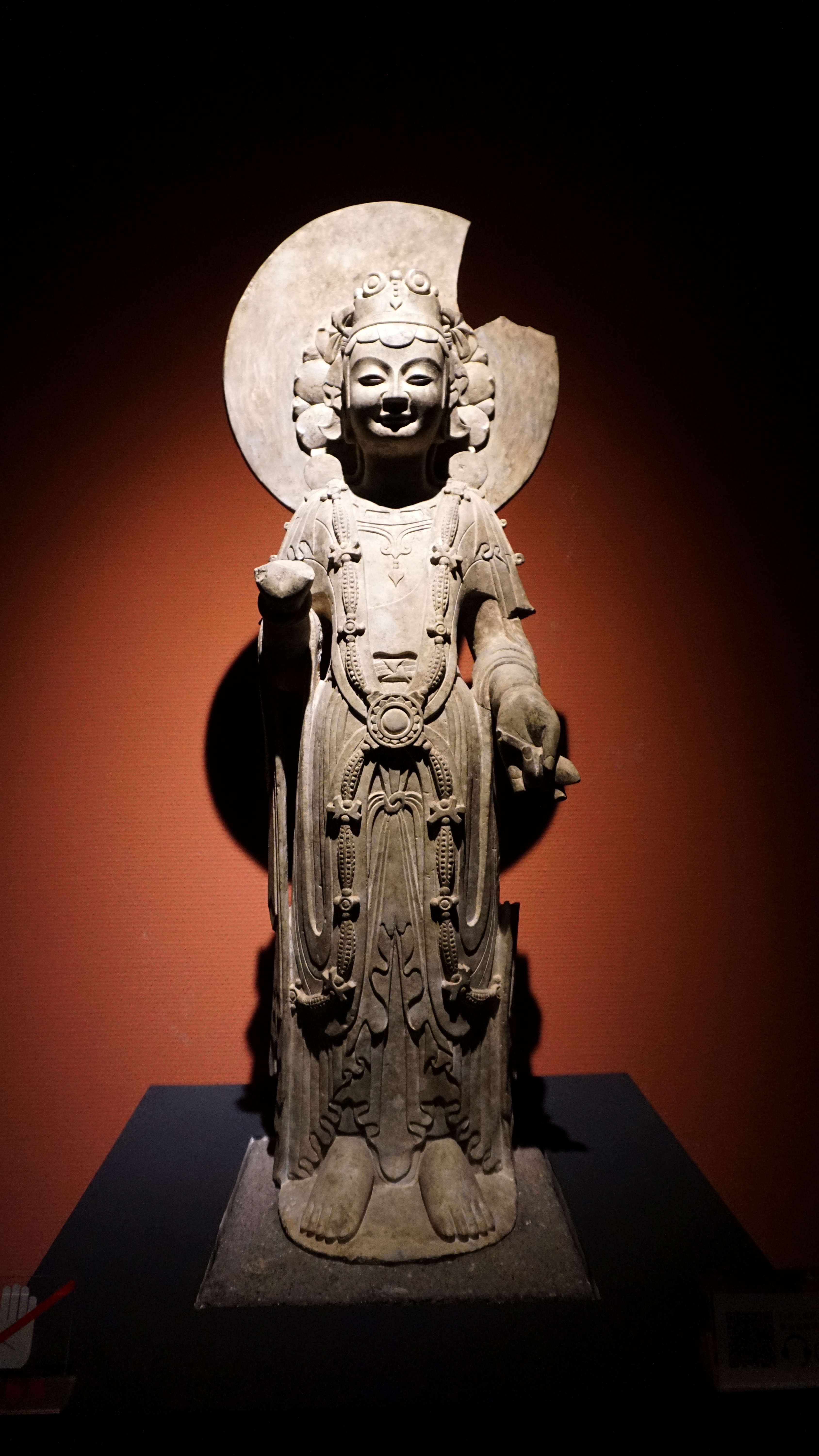 Another small gallery off the main bronze space, showcases religious art. The small space houses mostly stone sculptures from Buddhist sites across China. Having been to the major Buddhist grottoes in China, I assume that the pieces were rescued or repatriated as well since all of these sites have had things taken from them over time, both by foreign parties and during the Cultural Revolution.