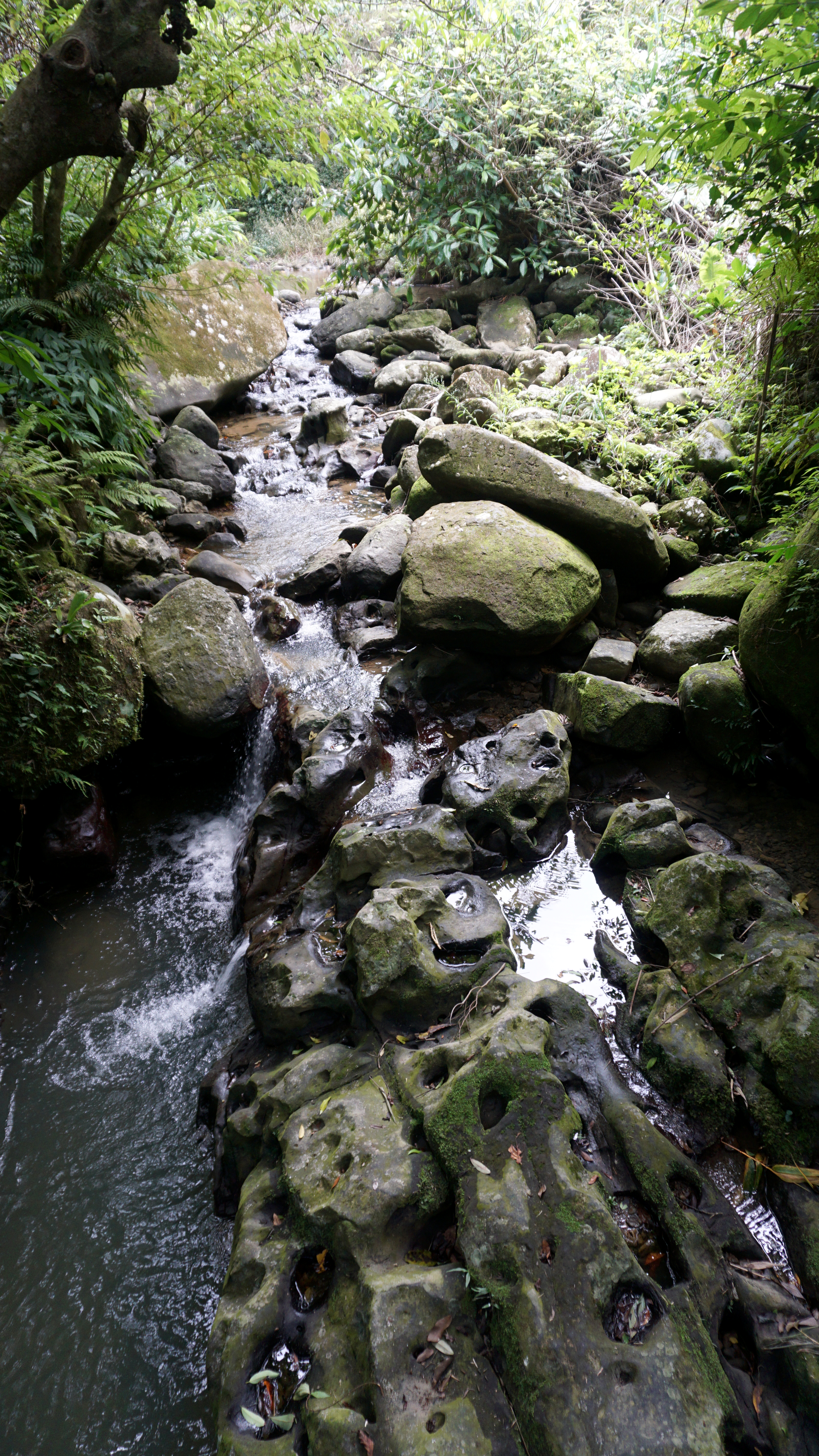 I made my way down the hill to the “potholes,” a rock formation in the streambed of the valley. They are interesting to look at, but not necessarily a final destination. Instead of hiking back up the way I came, I thought it would be just as much effort to climb up the other side and go straight to the temple I was headed for.