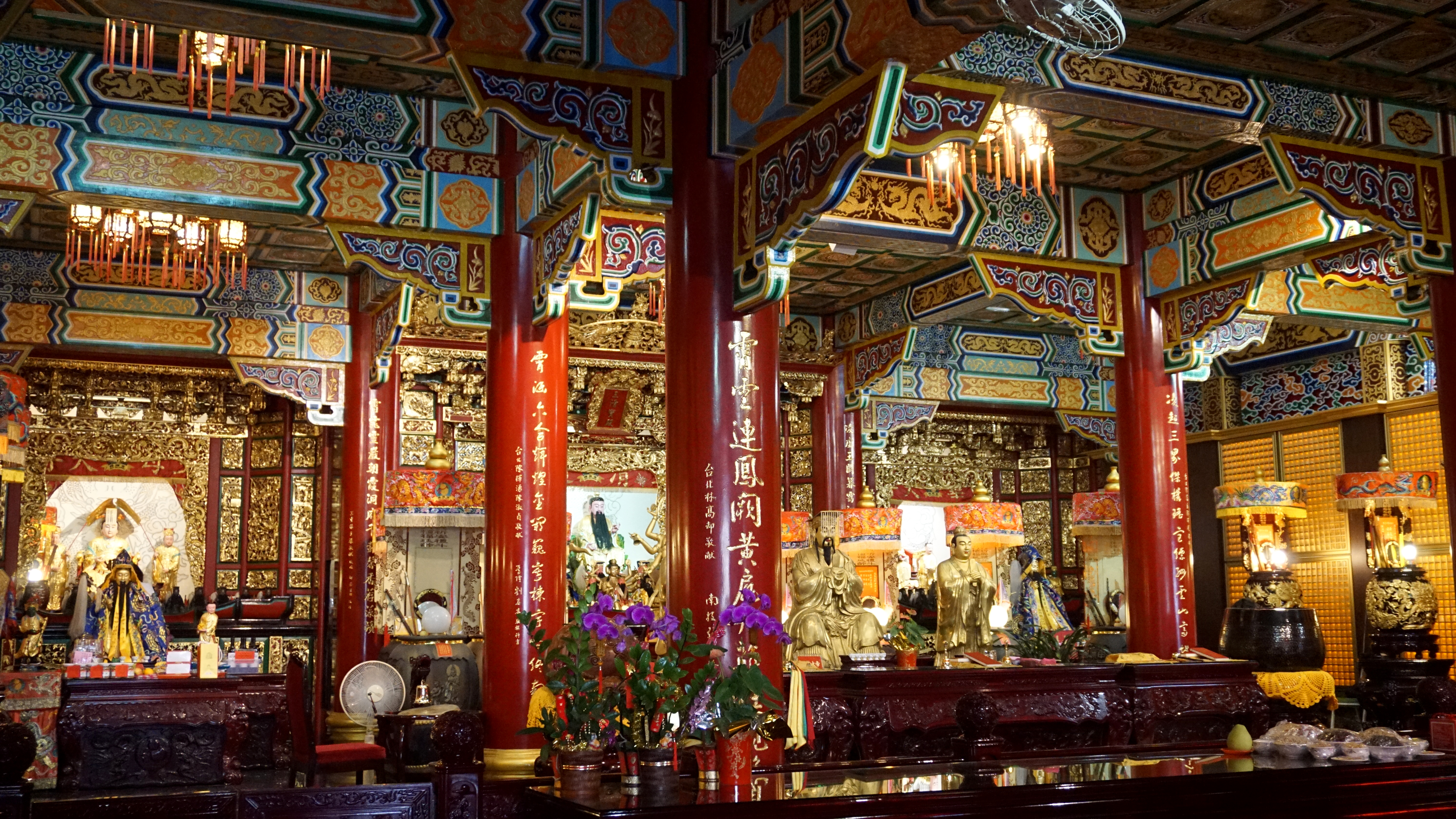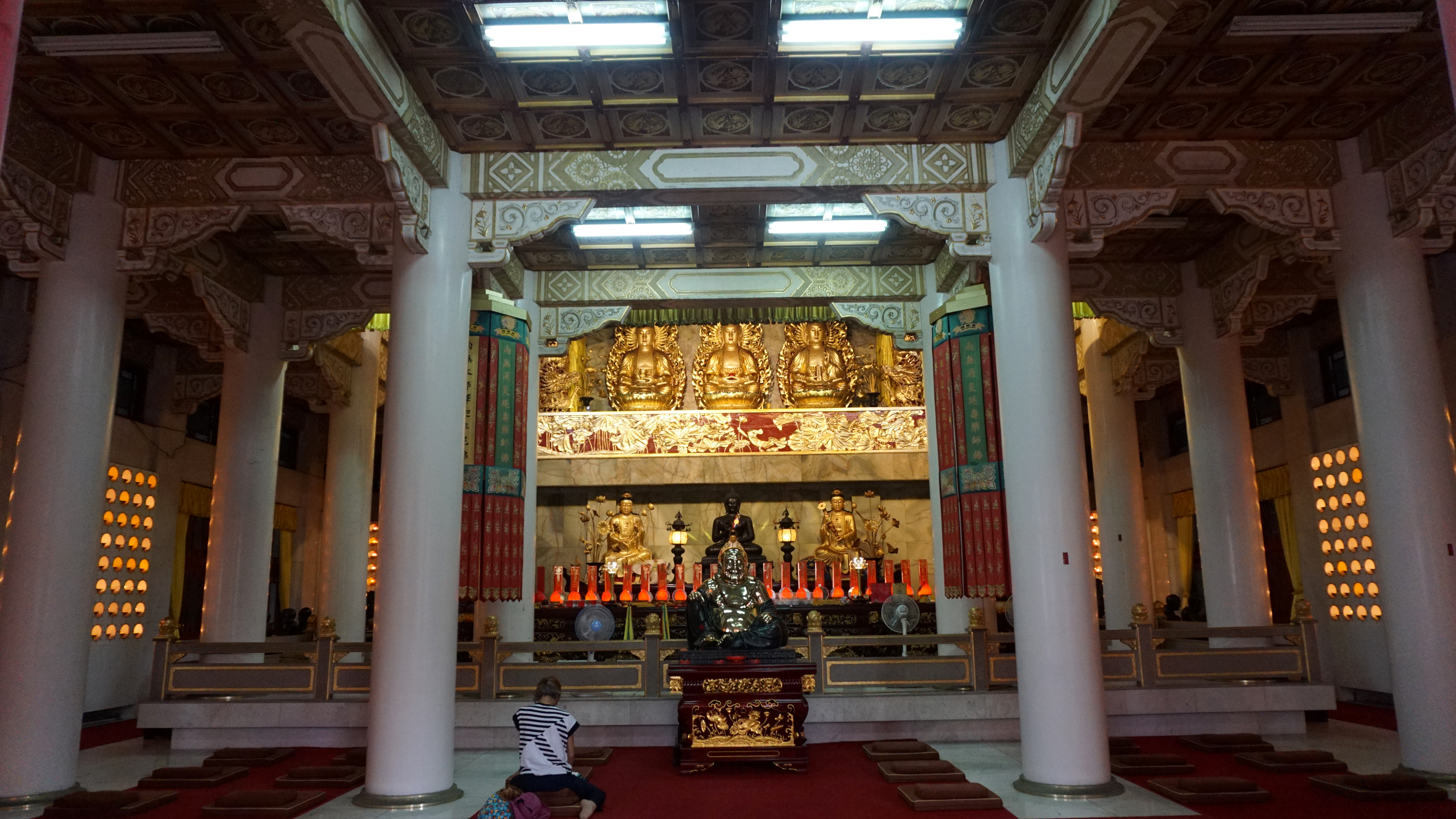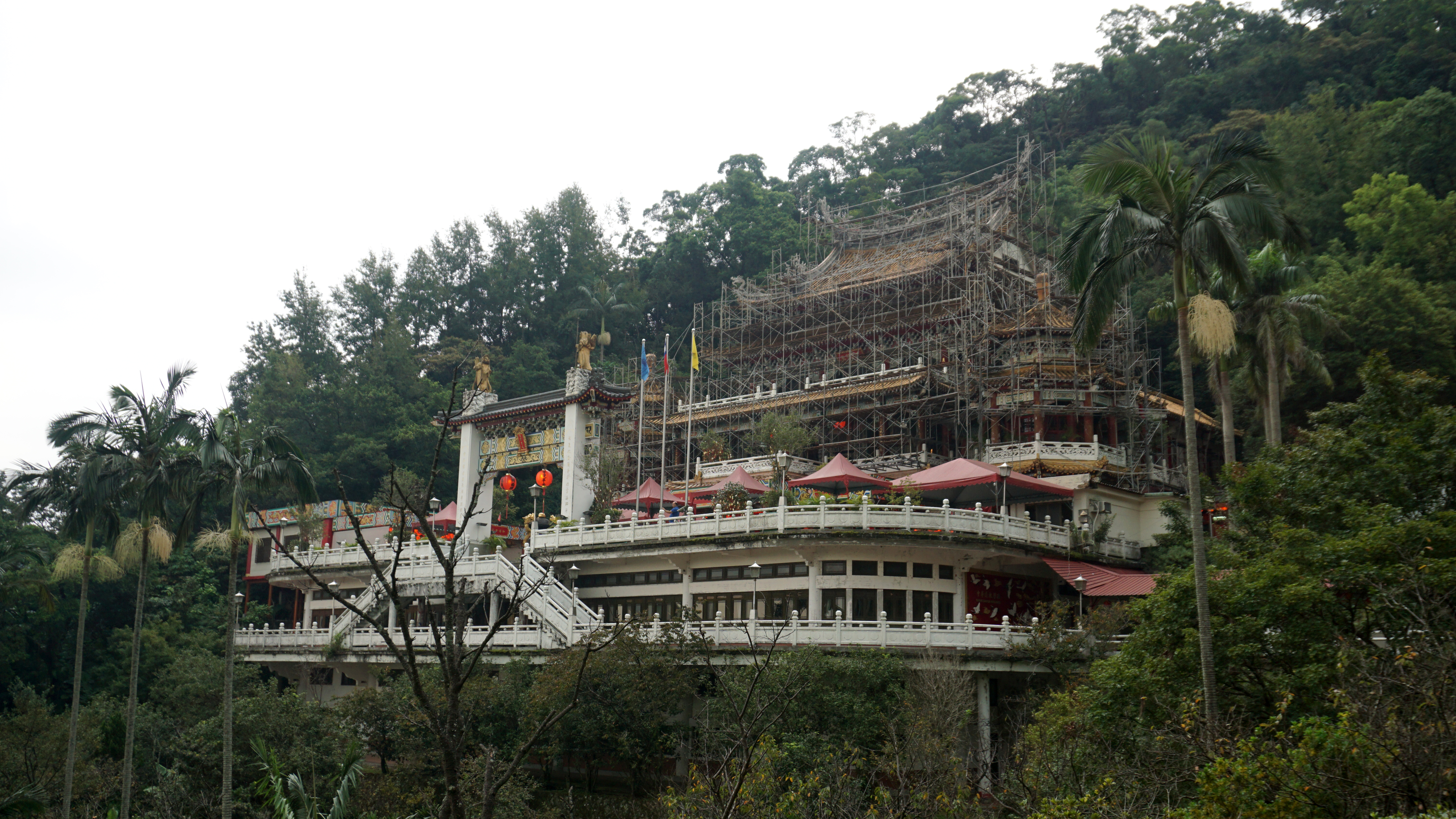 The main temple is an ornate structure that looks like it grows out of the hillside. My visit coincided with scaffolding, but that’s ok. It was still beautiful. The detail and craftsmanship is still visible inside and out. The Buddhist temple, which is around the corner and down a little bit, looks very impressive on the side of the hill. However, when you get a little closer you see it isn’t complete. The inside is still lovely.
