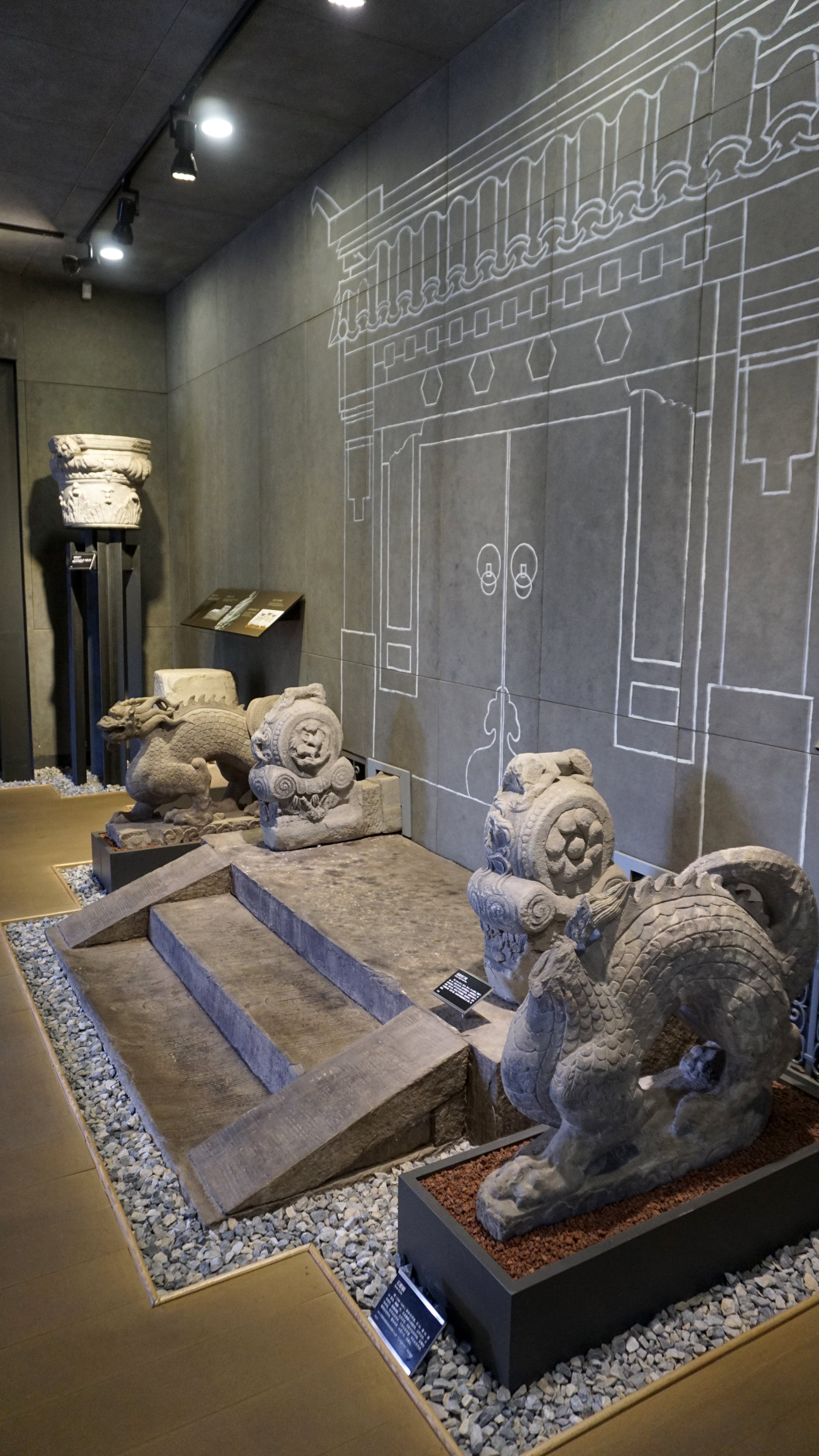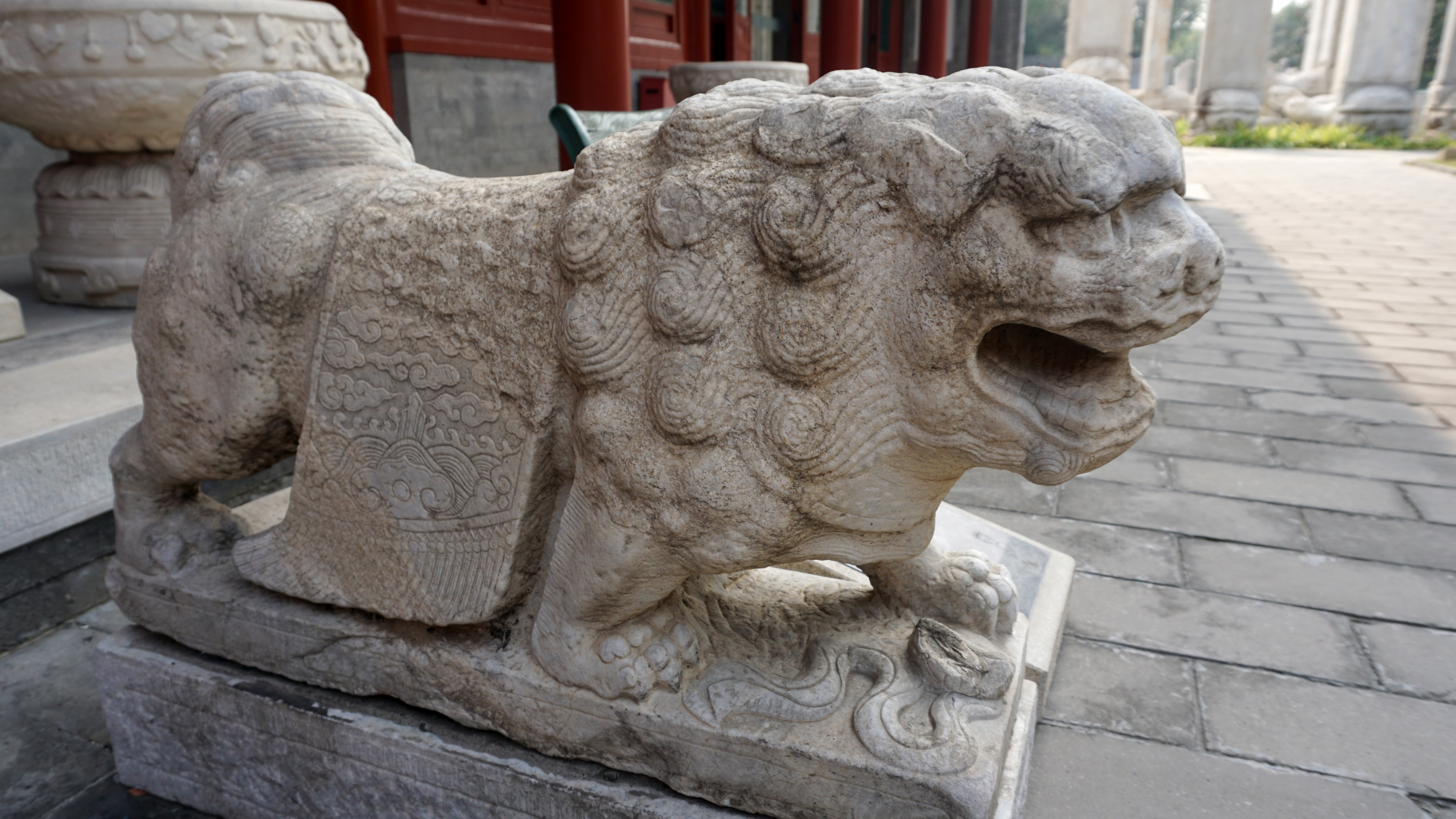 In the rear hall of the temple complex, there are two exhibition spaces. One focuses on calligraphy in the carved stone art. The other on decorative elements from Beijing’s architecture in carved stone. Both are fascinating, but I’m sure you can guess my favorite of the two was the architectural elements. The collections in both spaces are comprehensive but not overwhelming due to space constraints.