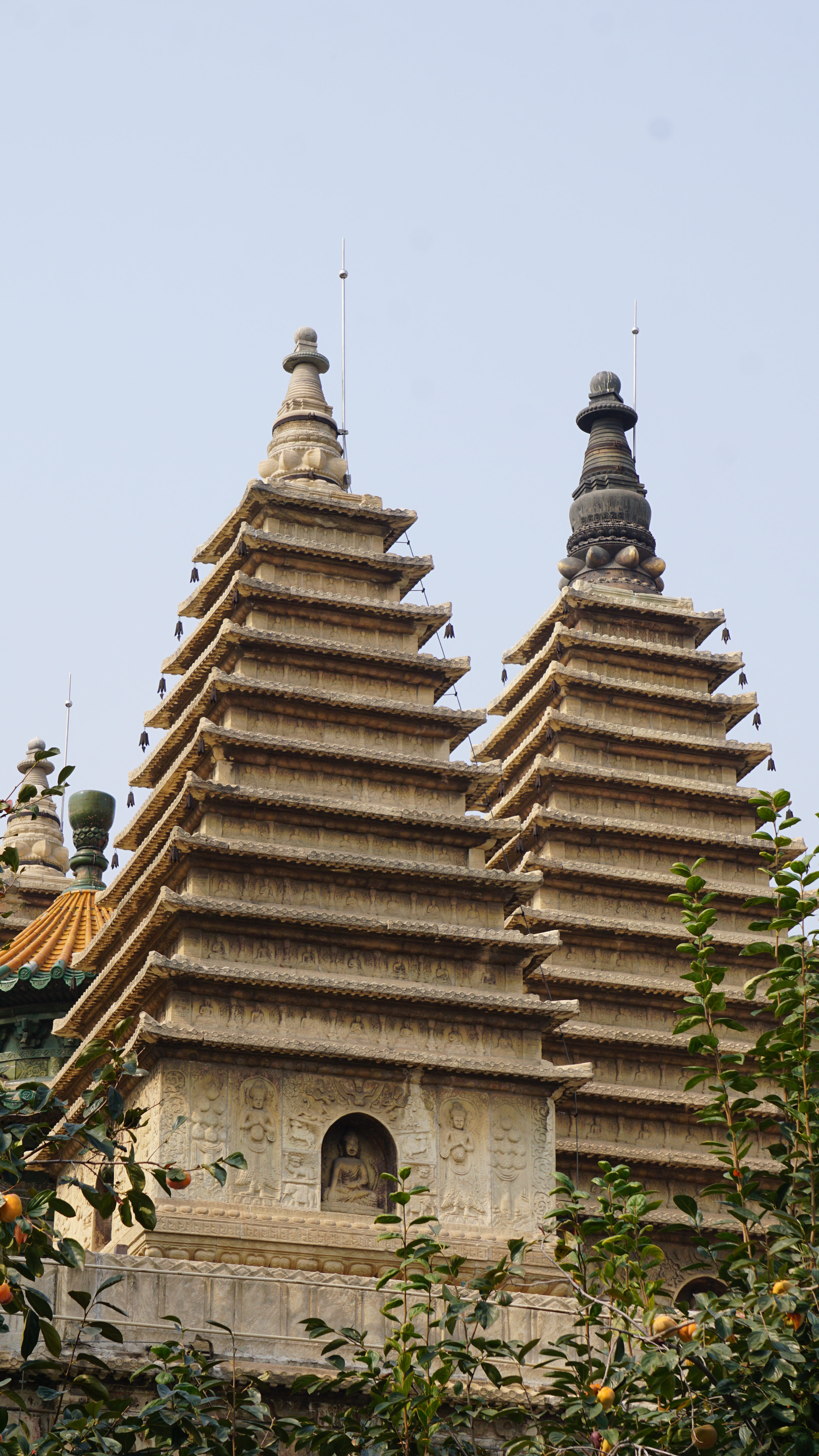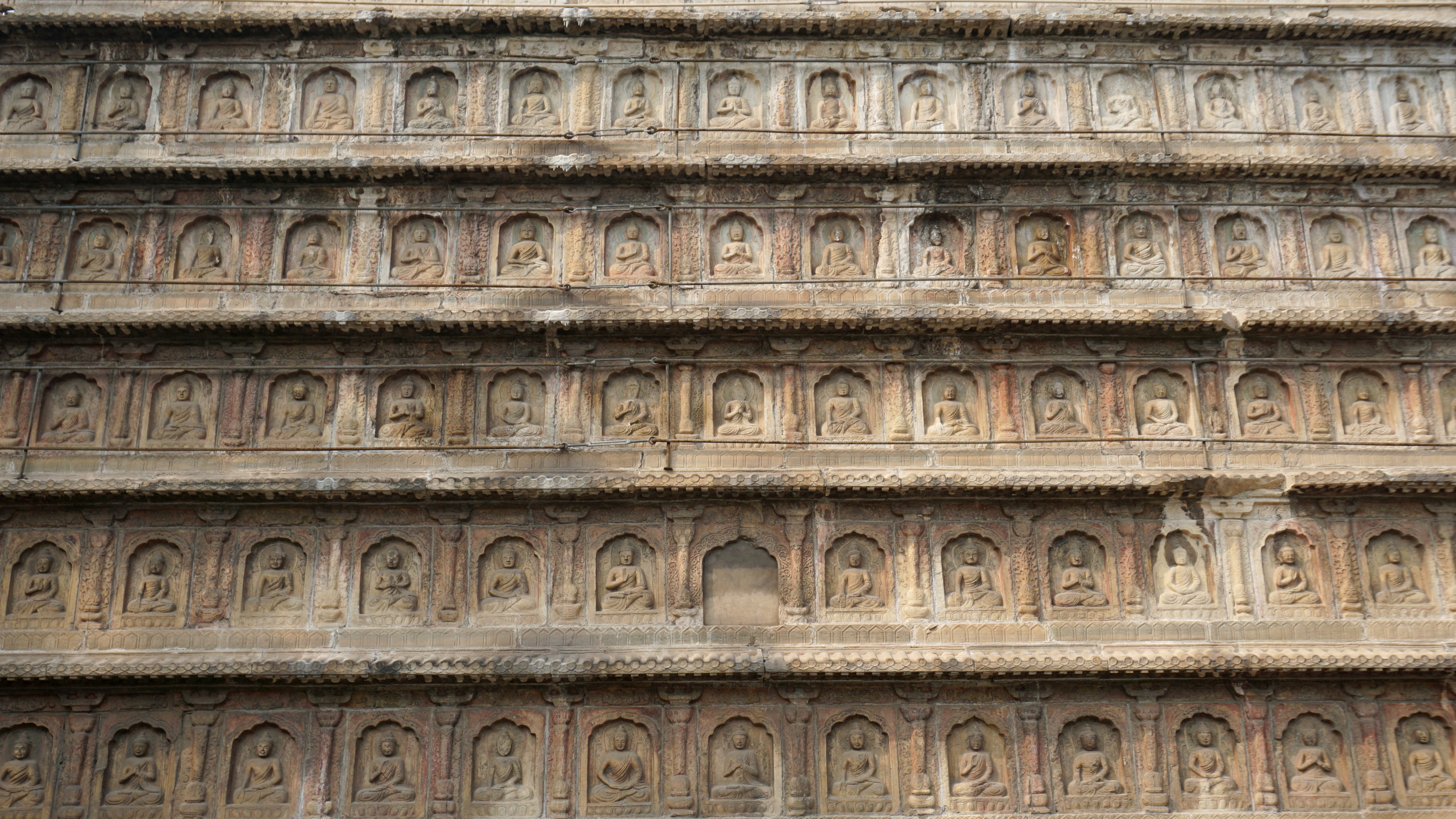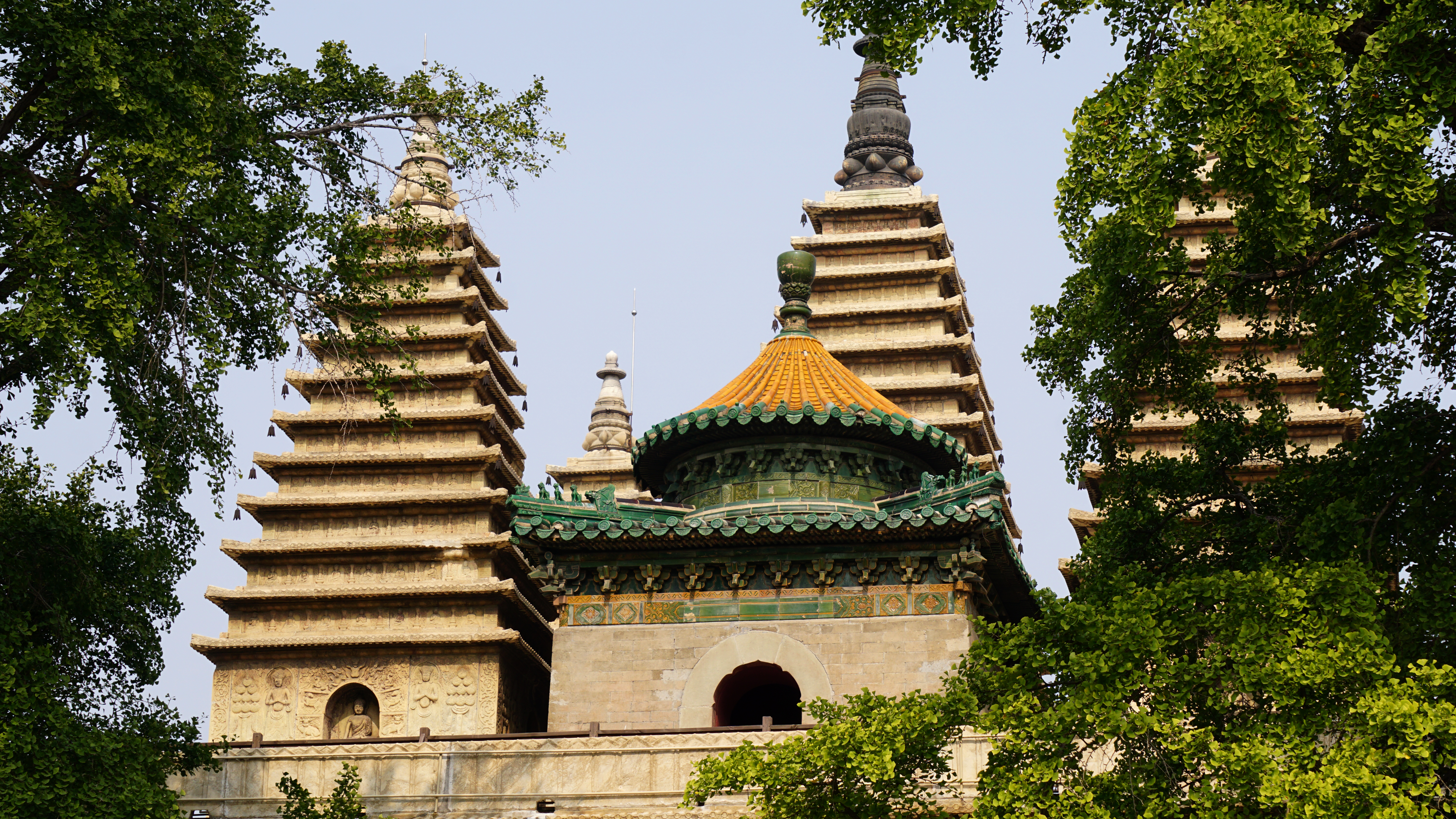 Rows of lovely stone friezes wrap around the square base of the central pagoda. Five pyramid-shaped towers crown the top. Hence the temple’s nickname, five tower temple or Wutasi. This design is said to be Indian in origin, but no one really knows where the design of this particular temple came from. The towers on top are also finely decorated with carvings. Some of the most exquisite are not visible to guests as they are on top on or around these five pyramids. One of them is said to contain relics from Buddha.