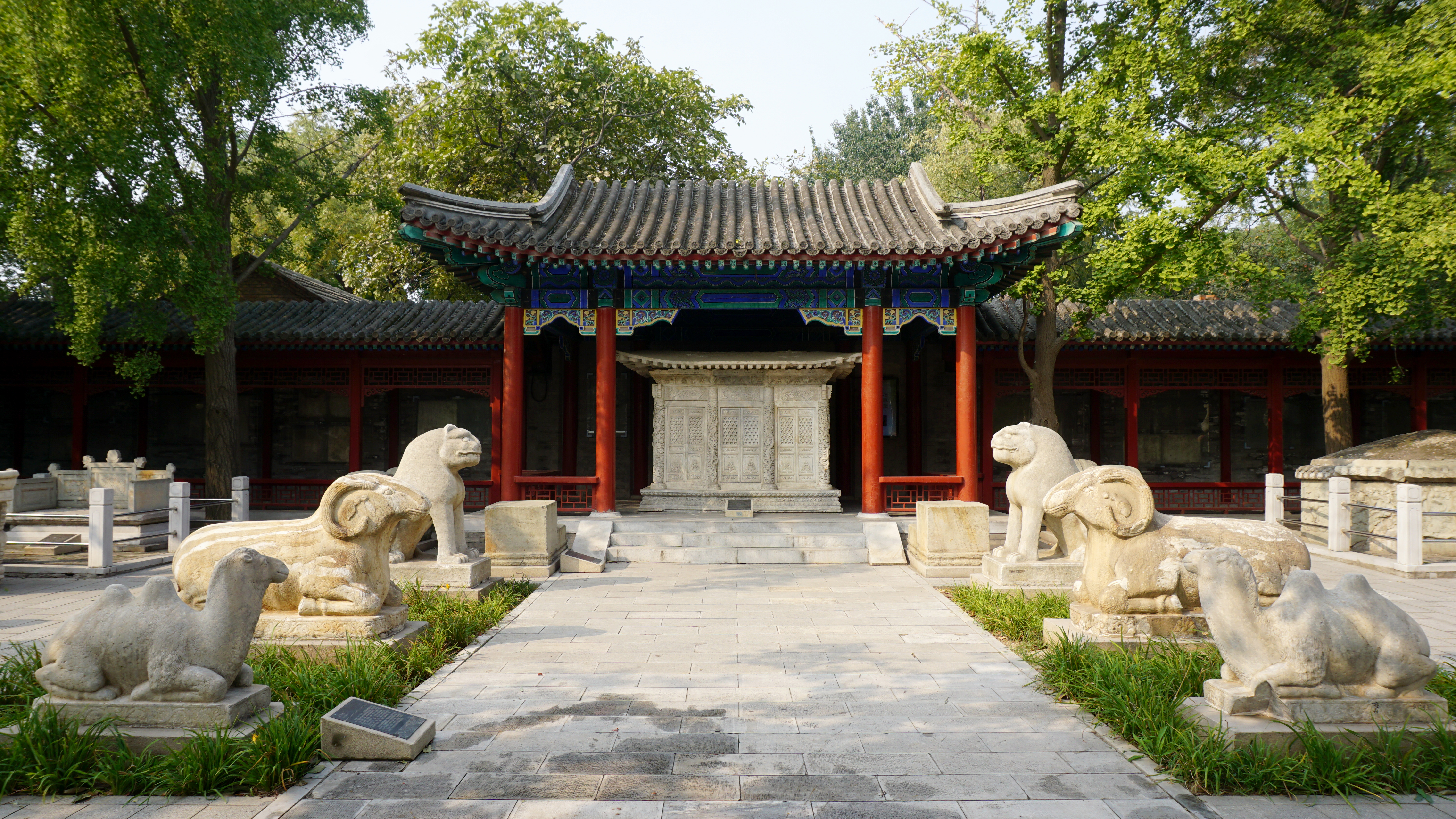 The rest of the outdoor spaces at the temple I will call gardens. These are full of the larger carved stone artwork including bixis and more. One area contains funerary monuments. These are reminiscent of the larger sculptures on the spirit walk of the Ming Tombs. Another section contains a collection of tombstones of Christian priests who worked in China from the 18th century onward. It is fascinating to see the mixture of Chinese motifs with Christian symbols and Latin writing.