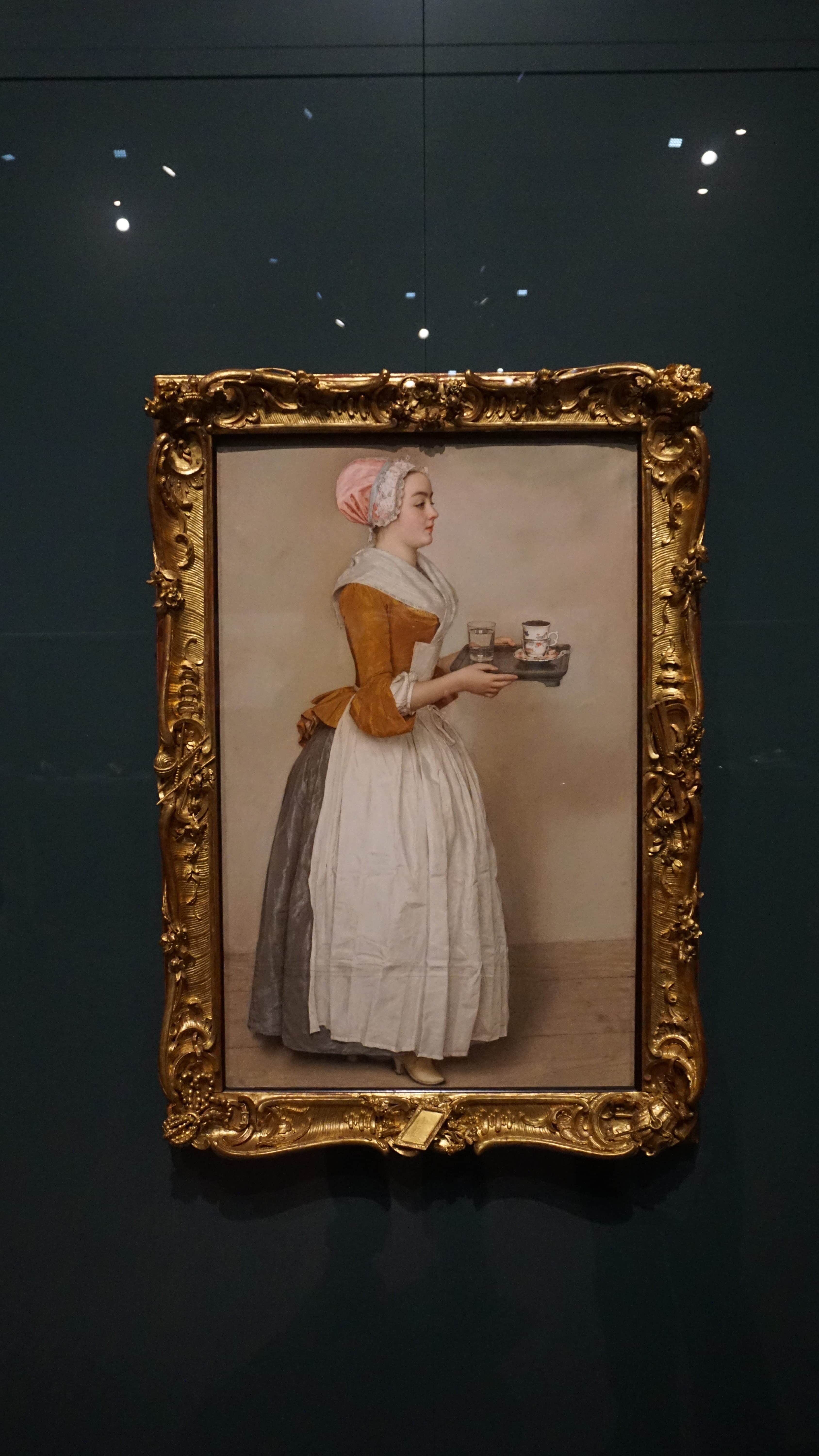 The Semper Gallery’s collection of paintings and sculpture may not be as large as some museum collections, but it showcases just as many famed artists and their works. At the time of my visit, a special temporary exhibition highlighted a fabulous painting of a girl serving hot chocolate. The painting inspired so many that an entire exhibit showcases other works reflecting the original. The original painting really stands out in its attention to detail in the smallest things. The artist beautifully shows his skill in her wrinkled dress and the silver filigree on her serving tray magnified by the water glass.
