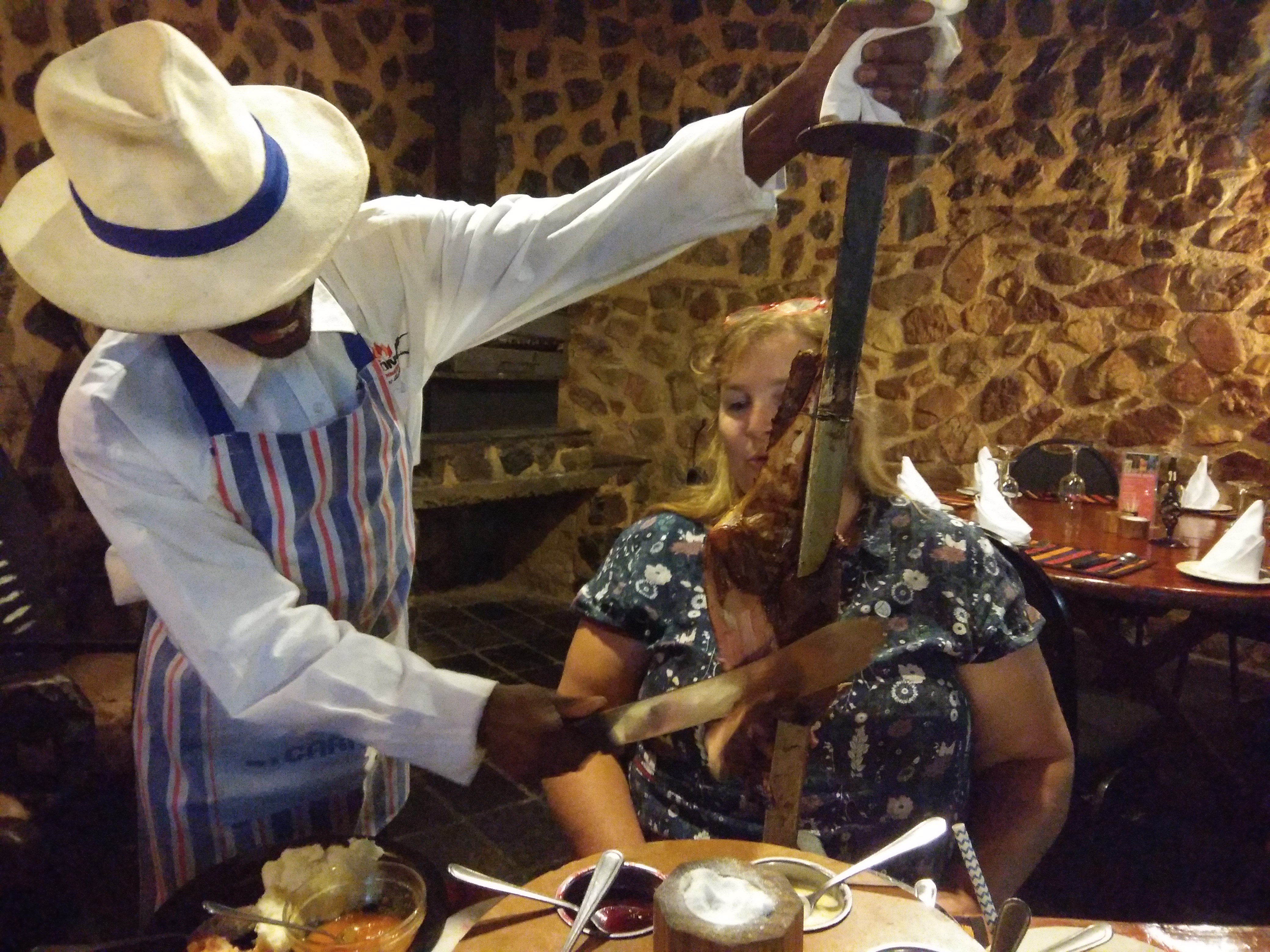 One item on my itinerary from before I bought a ticket was to try as many game meats as I could. My friends treated me to such an experience at Carnivore Restaurant, near the lion park outside of Johannesburg. That night the menu included crocodile, zebra, kudu, impala, and the staples of beef, pork, and chicken. My favorites were kudu and zebra. The crocodile meat balls were good, but I didn’t like the texture of just grilled crocodile. Impala was also sumptuous. I ate kudu a few other times on this trip. Each time was delightful.