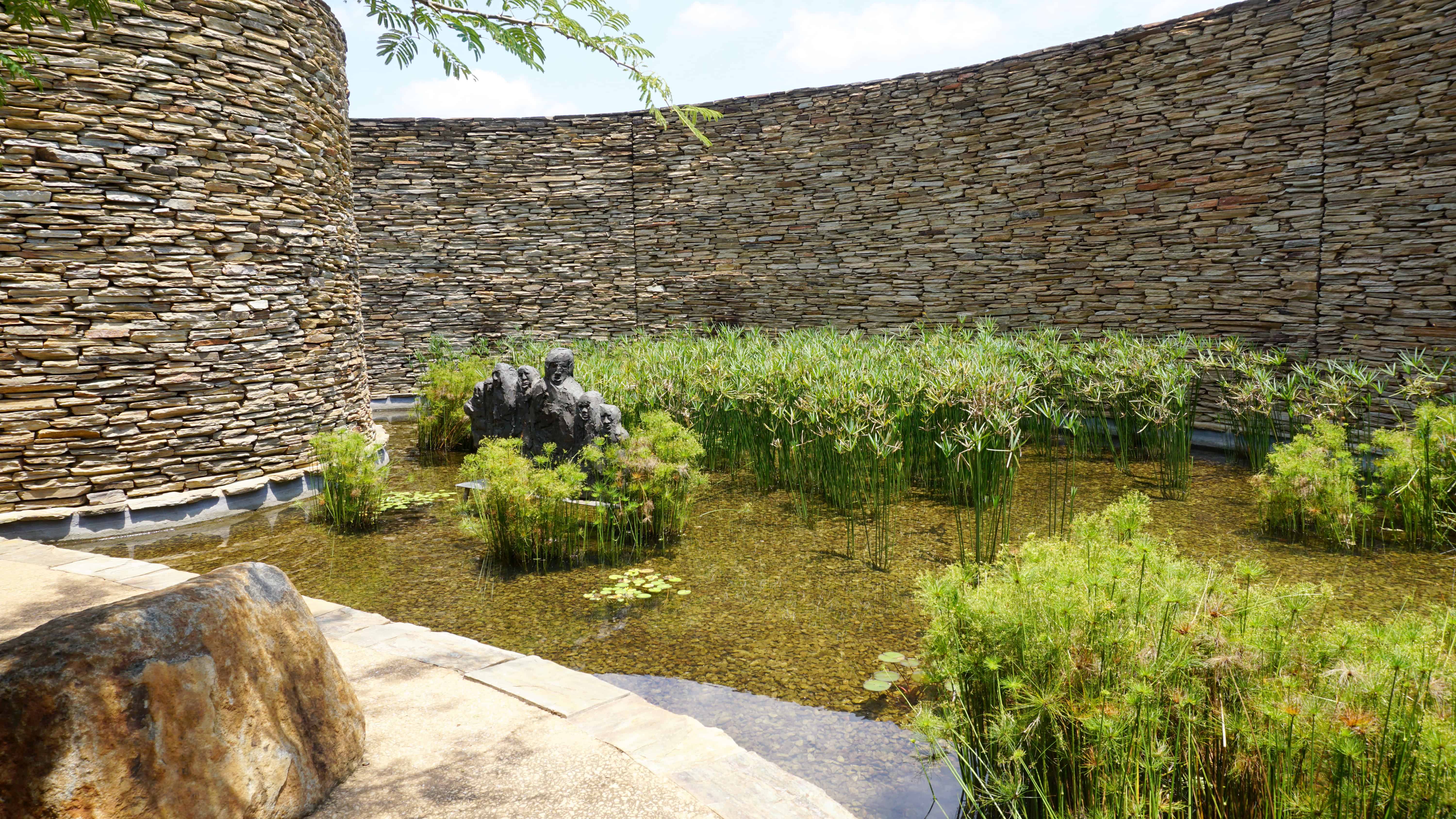 At the top of the hill, a series of memorials graces Freedom Park. I did not take the guided tour of the museum because of the time I arrived. However, I did partake of a guided tour of the garden. It was worth it. Our great guide personally connected us to the stories of the park. We took in the eternal flame in the meditation space and rode a little golf cart around the property. All over the garden space are little symbolic spaces. Isivivane, a symbolic African meeting space, was particularly special, as was the hidden pool.