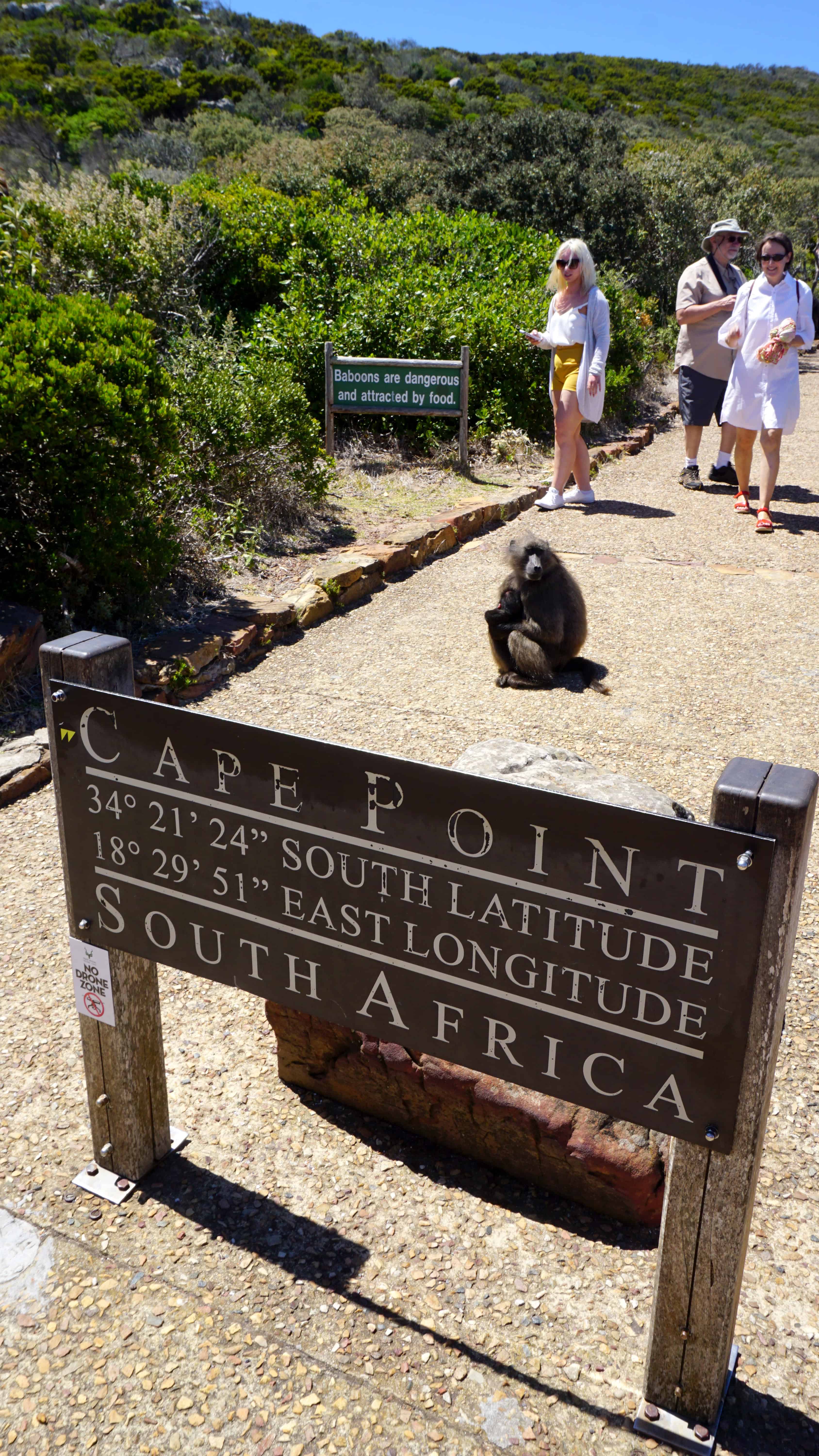 From the Cape Point parking lot, we took the trail that connects to the Cape of Good Hope. This provides for even more spectacular vistas and wildlife sightings including colorful basking lizards. The Cape of Good Hope is the most southwestern point of the African continent. Out on the rocks, in the splashing waves, seals clambered up from the sea. The history surrounding these places is quite interesting with the Portuguese first naming them on maps but not settling there. Out in the distance, you can even see shipwrecks and, if you’re lucky, whales.