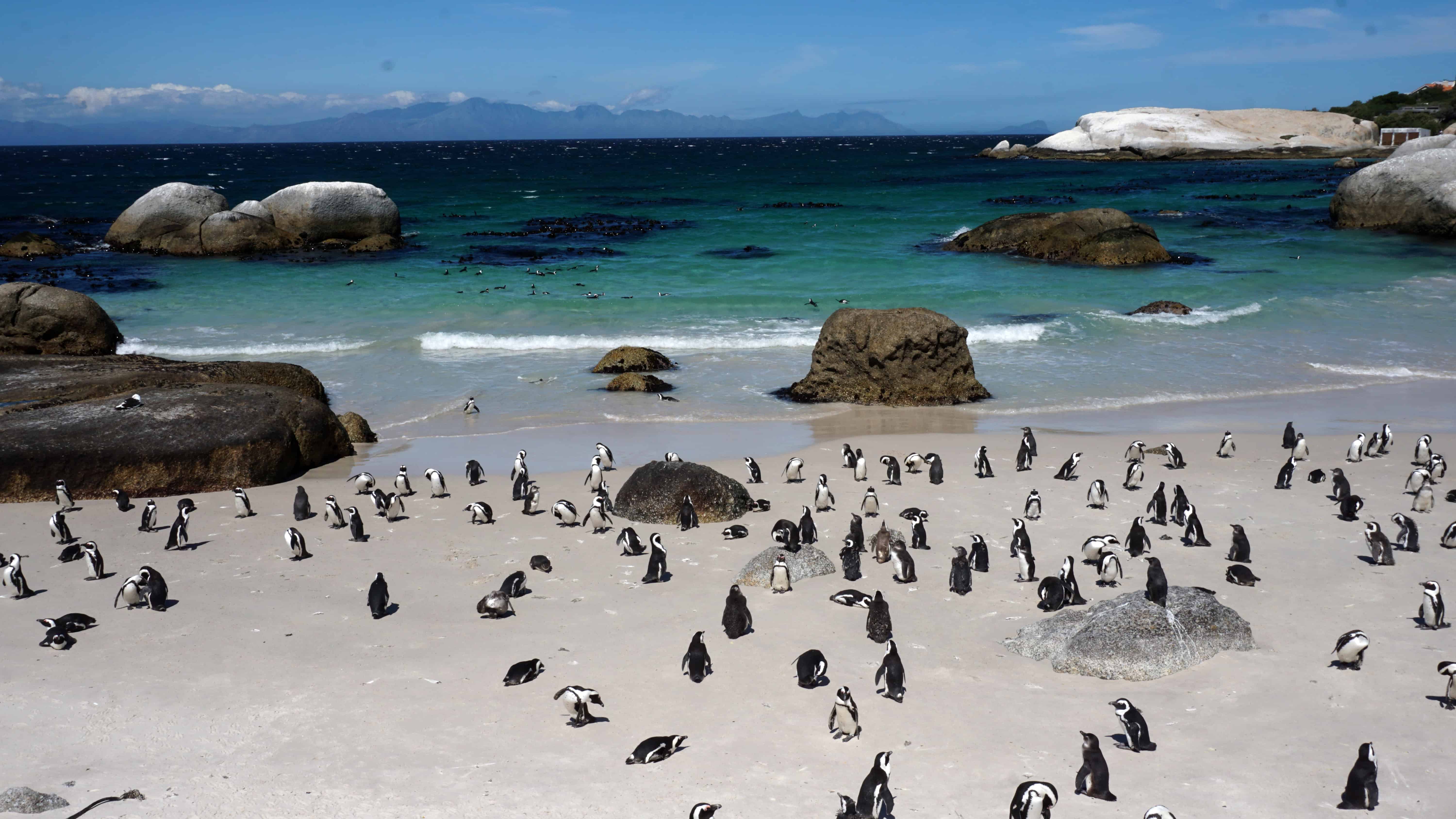 From Cape Point National Park, our bus took us to Boulders Beach. This protected beach is a nesting ground for the endangered African penguin. A fee applies for entrance to the main nesting site where raised boardwalks keep onlookers from tramping on the nests and getting in the way of the cute flightless birds.