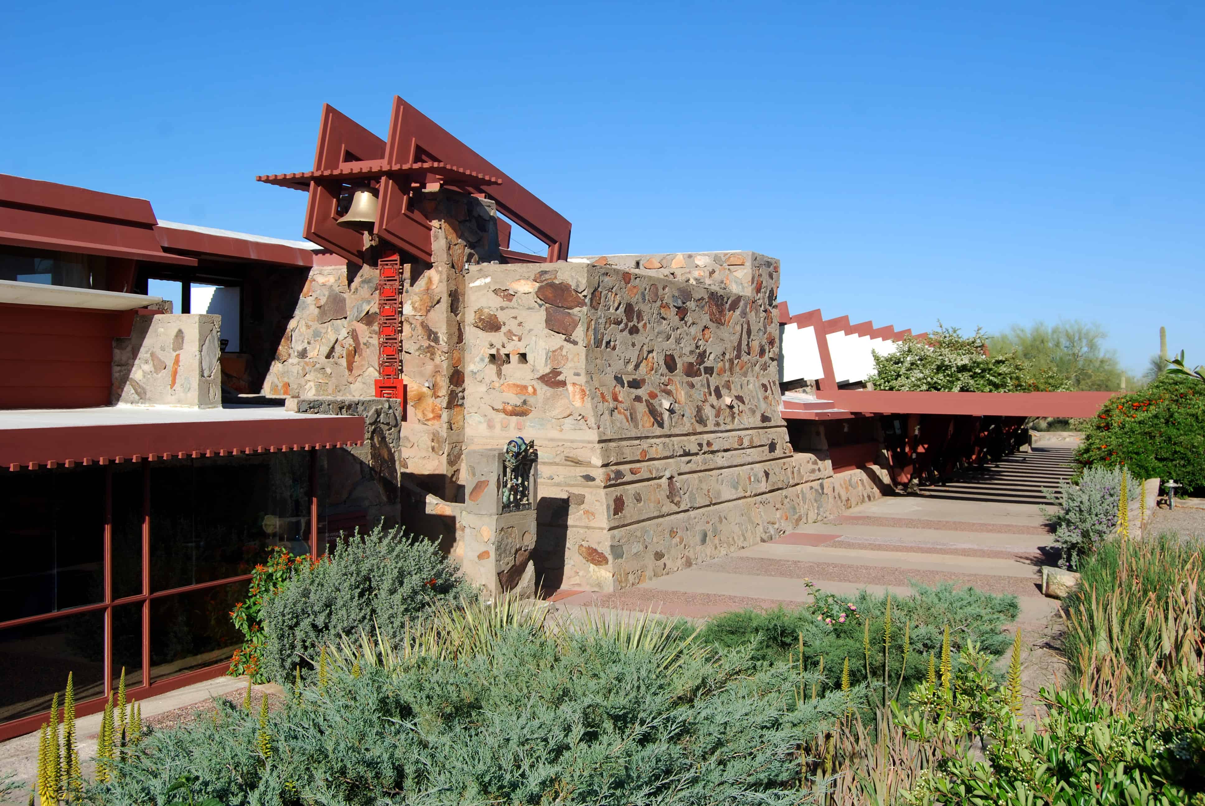 Today, twenty four of his buildings are designated as National Historic Landmarks, the highest designation for historic places in the United States, and ten of them have been nominated for inclusion on the UNESCO World Heritage list, the highest distinction for historical, cultural and natural wonders around the world. I had the great privilege of sharing one of these masterpieces for one and a half years as a tour guide at his desert home and studio, Taliesin West in Scottsdale, Arizona. It is a magnificent melding of desert and architecture. As you’ll see on my bucket list, just as visiting all of the LDS temples in the world, is to visit all of Wright’s buildings. These pictures are some of the beautiful works of art I’ve had the opportunity to visit or the outstanding homes I’ve driven by. See which Wright sites I’ve visited on my places page.