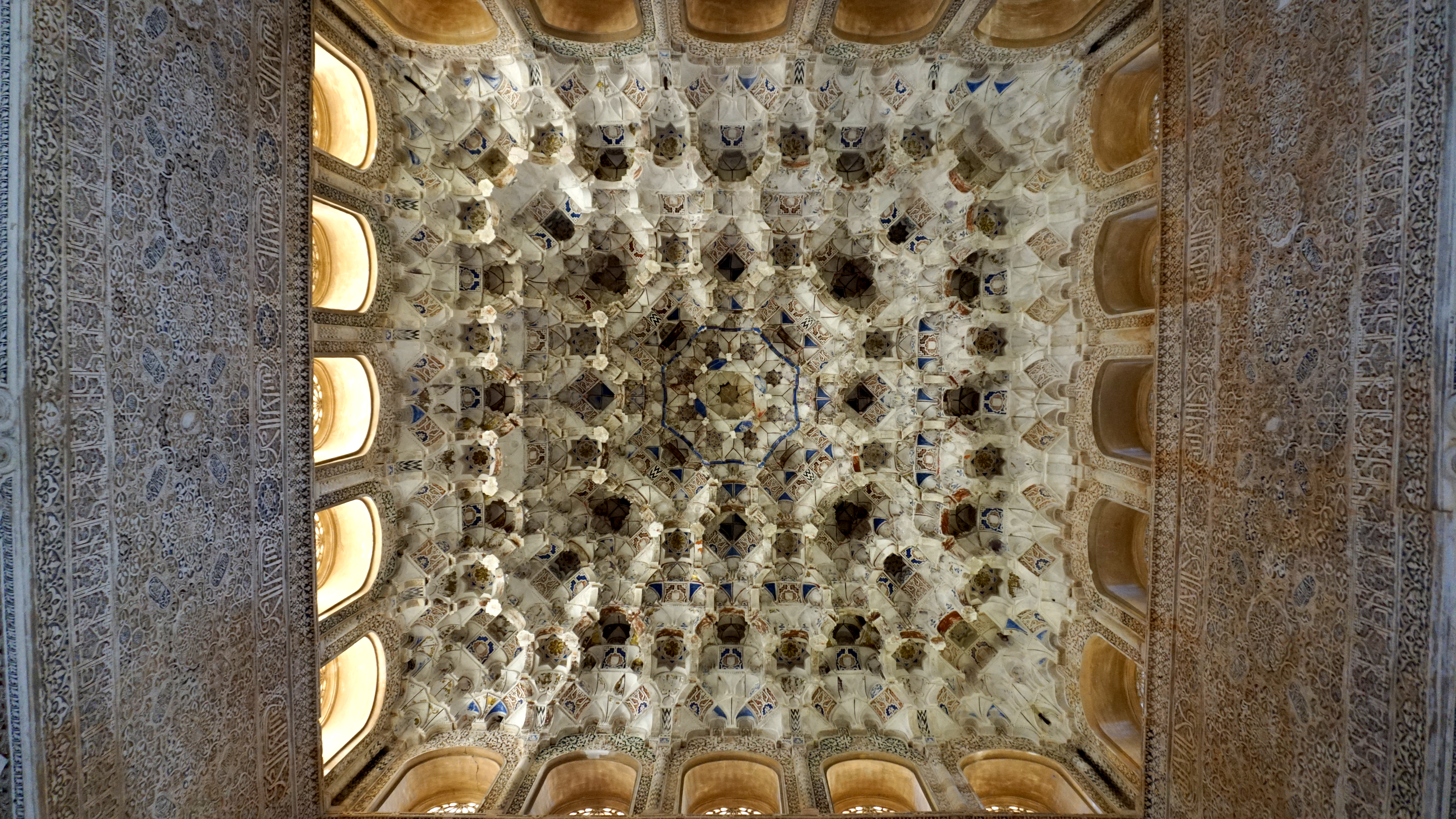 The Alhambra in Granada, Spain is a masterpiece of Moorish or Islamic architecture. Although various destruction and alterations have come since sultans and emirs lived there, the details miraculously remained preserved in the Nasrid Palace. I made this gallery to share more pictures than would be wise in a post. You can read about my adventures to the Alhambra, its buildings, and architecture here: Generalife Gardens and Nasrid Palace.